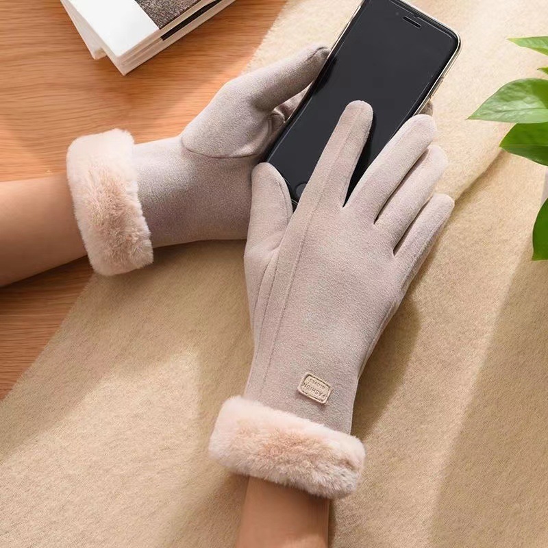 星罗手套女冬保暖手套德绒触屏开车防风加厚加绒骑行学生韩版可爱