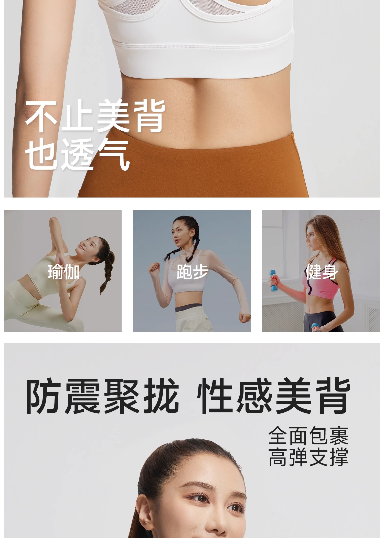 跃牌【瑜堂系列】新款后背交叉运动文胸纯色露背防震聚拢健身瑜伽内衣JYMN069