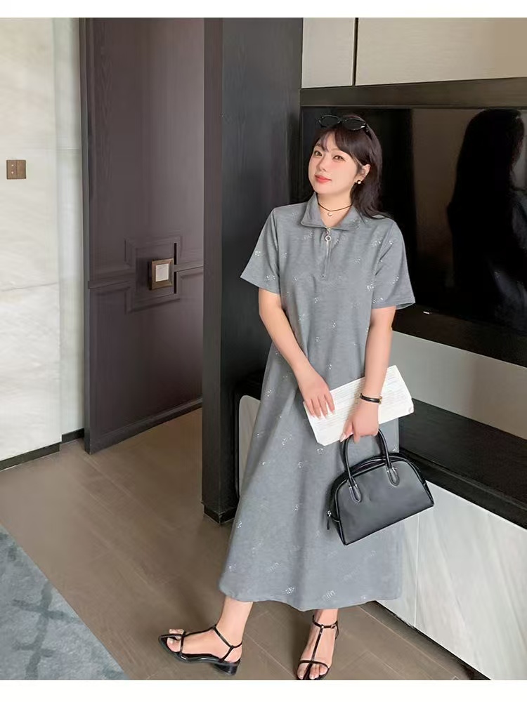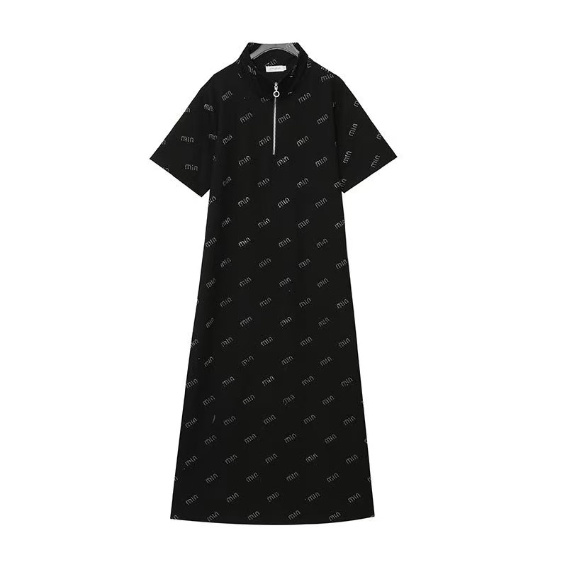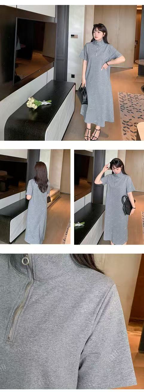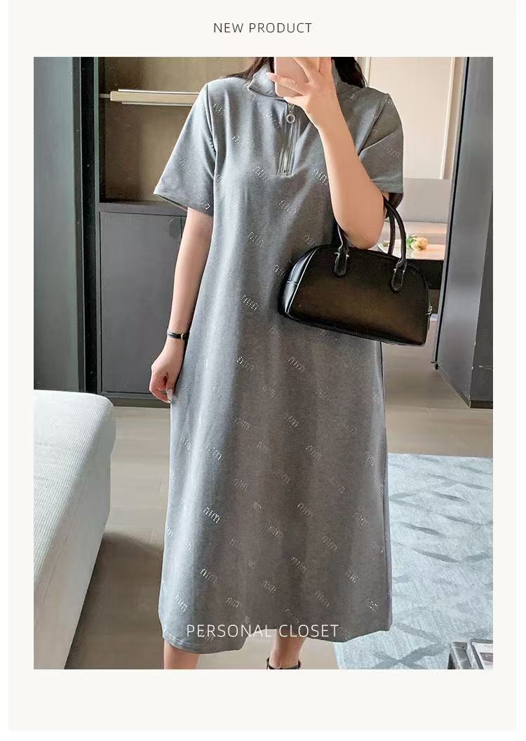 【诗铭洛可】W1186立领亮钻裙缪系穿搭长款POLO裙C6-2