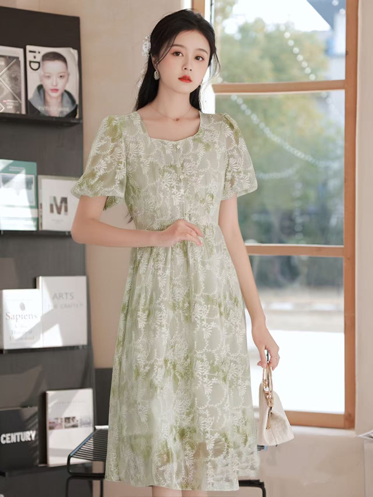 冰点价!仅限11.11!退货勿拍(不支持退)NO退 整件重工绣花{ 连衣裙系列 }法式优雅绣花方领刺绣连衣裙2267-喜出