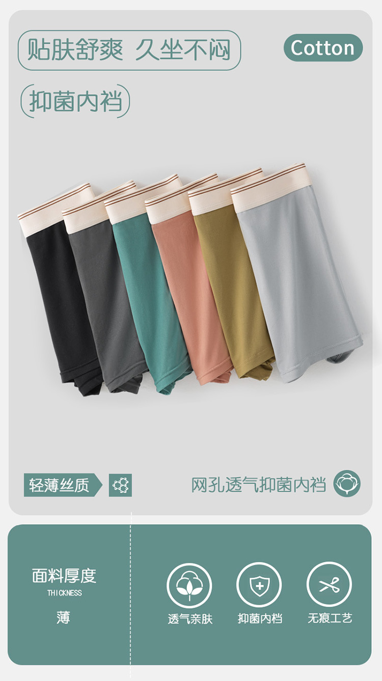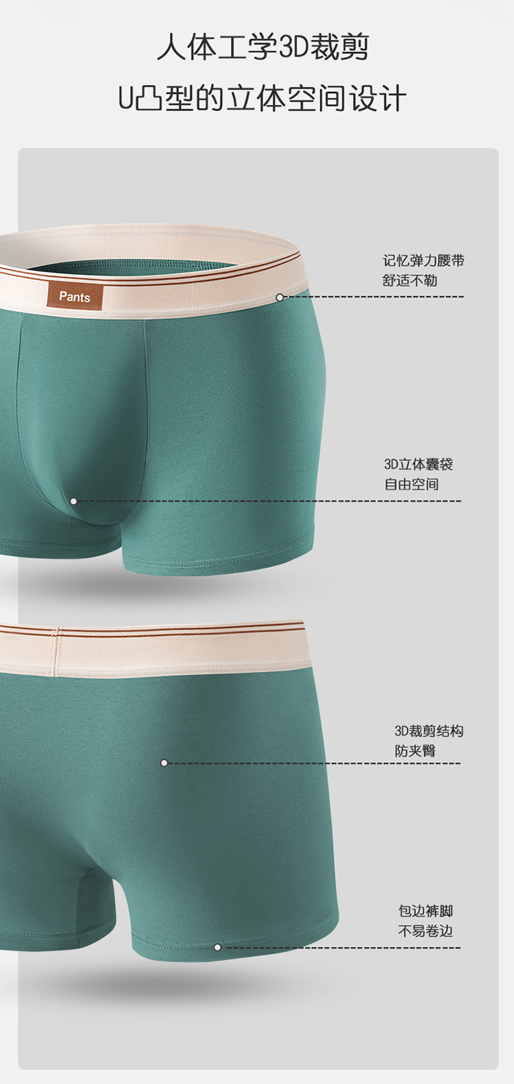 59元4条 | 撞色抑菌男士平角内裤 高弹透气 3D立体凸型囊袋 防夹臀不卷边男士内裤