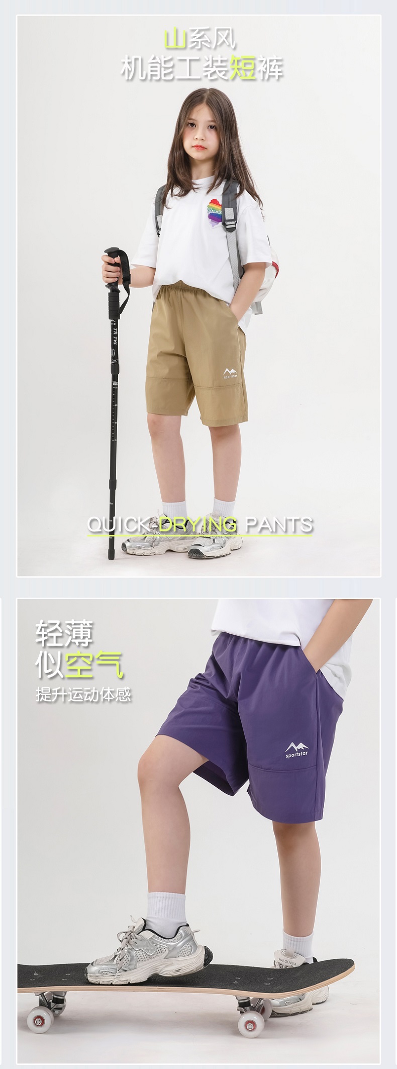 【吸湿速干,四面弹力】夏季山系短裤户外男童女童运动速干裤中大童薄款凉感短裤登山100%