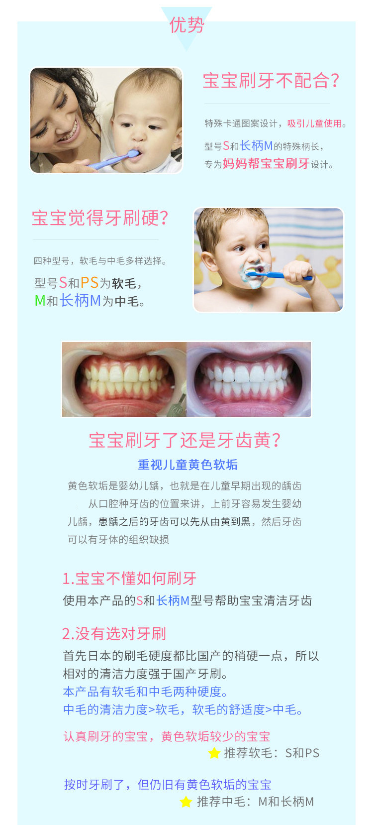 【品牌直发】包邮!日本进口oralcare 1-7岁小头儿童软毛中毛牙刷