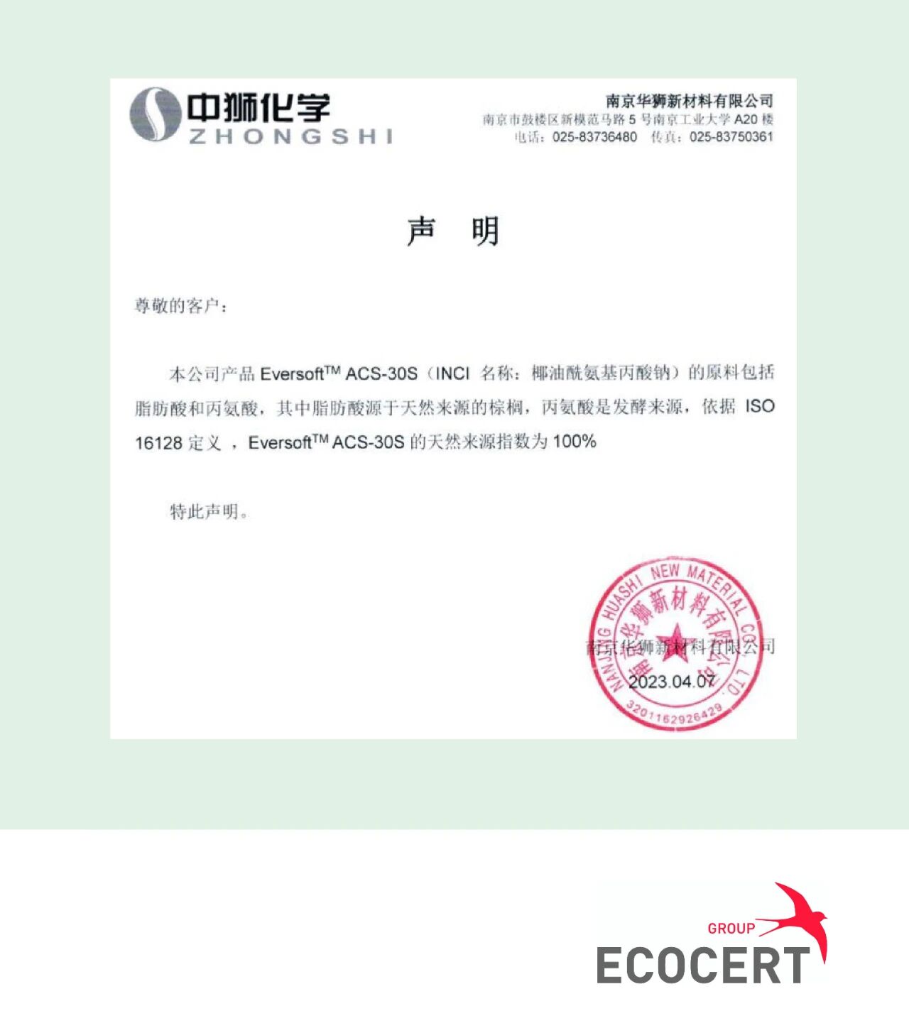 使用椰油酰氨基丙酸钠和月桂酰谷氨酸钠这两款起泡剂,是100%天然来源,且带有ECOCERT认证,十分温和。