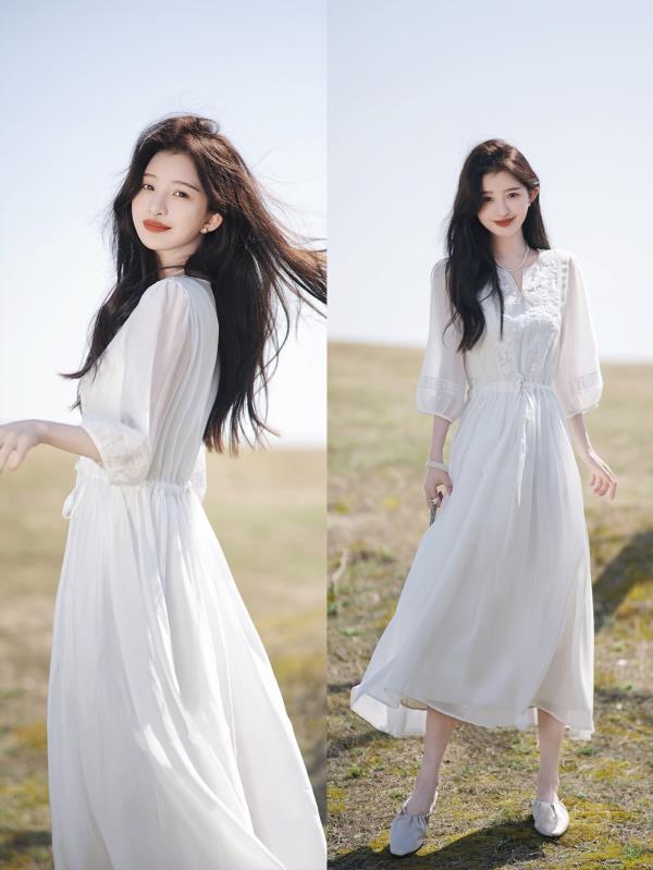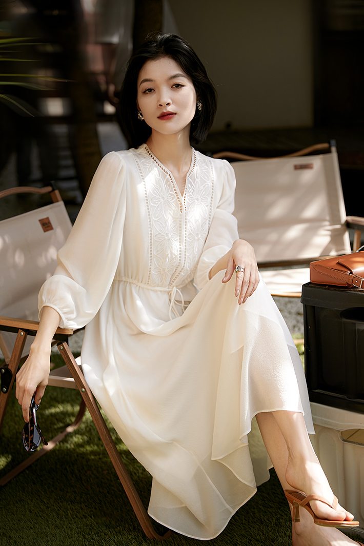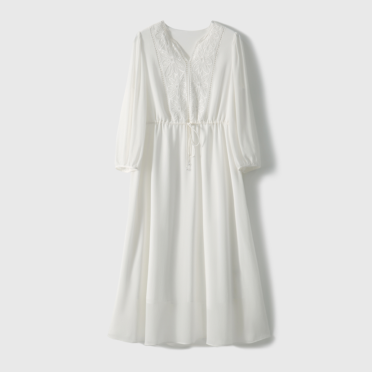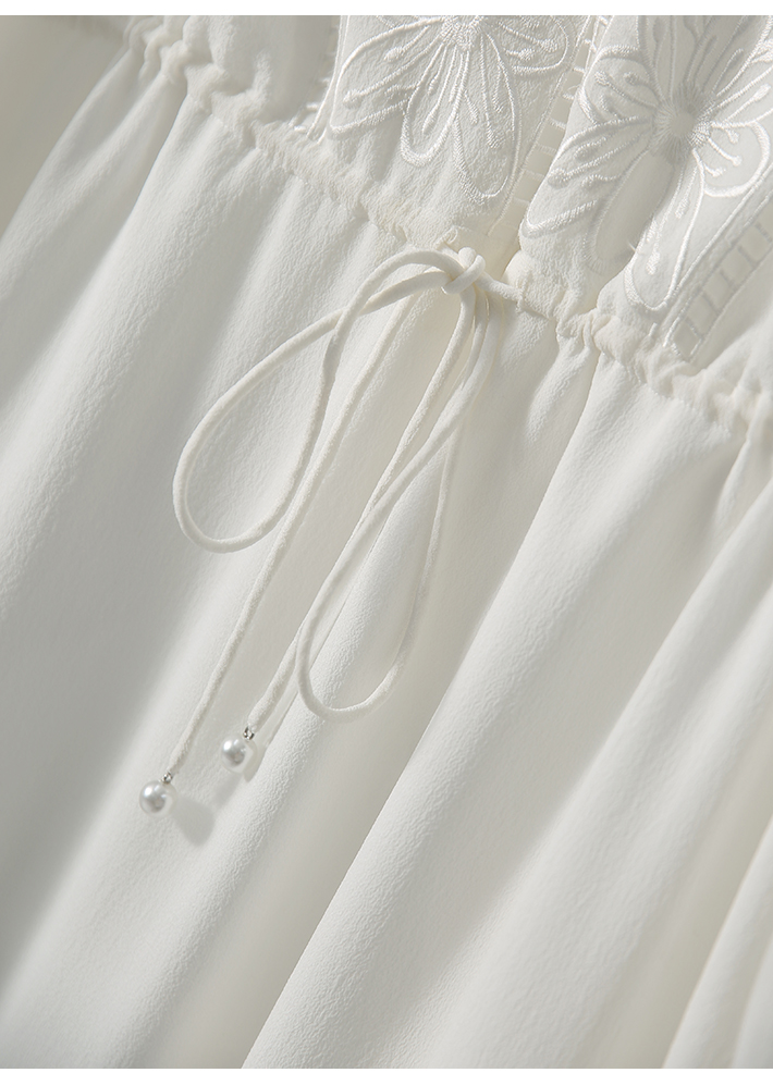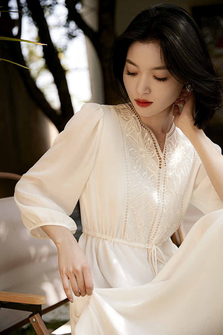 【轻奢】2024夏季 维多利亚仙女风刺绣裙 2款可选 天丝飘逸连衣裙 天丝刺绣小V领腰带连衣裙