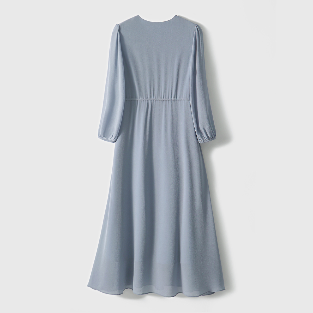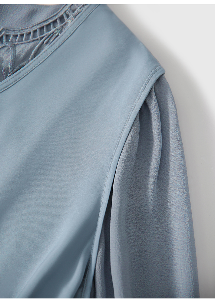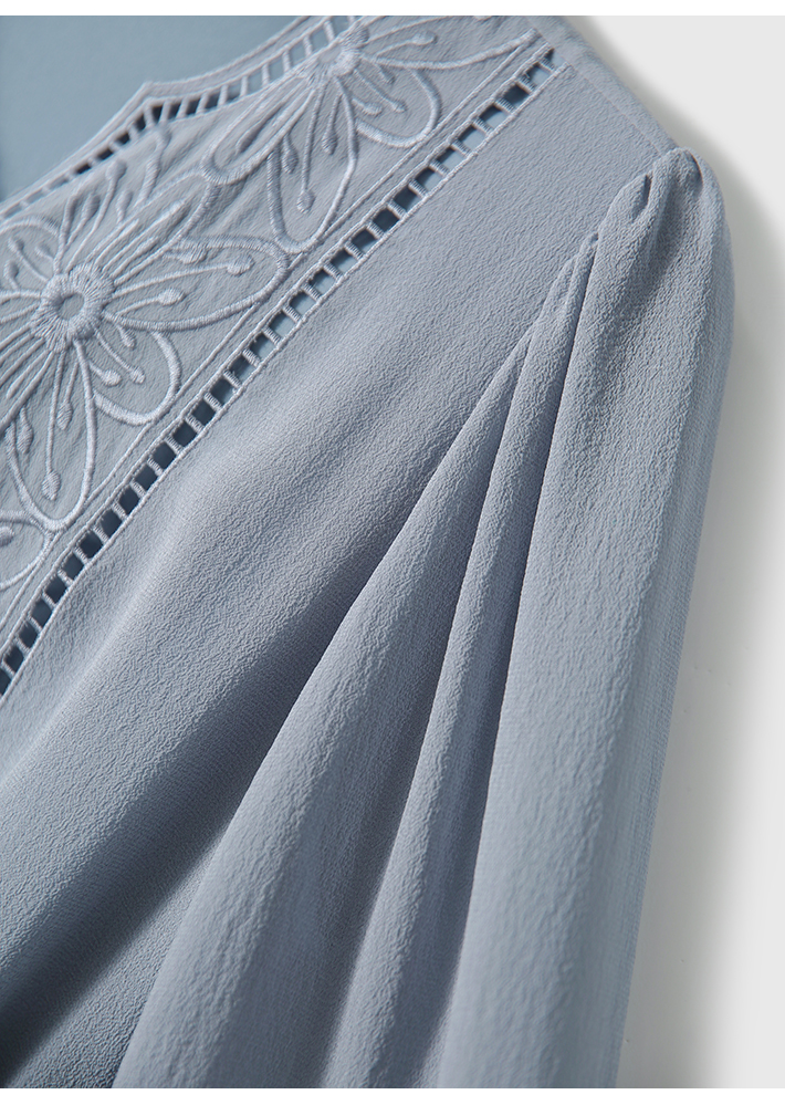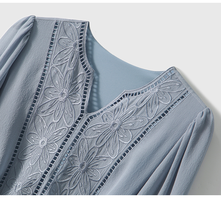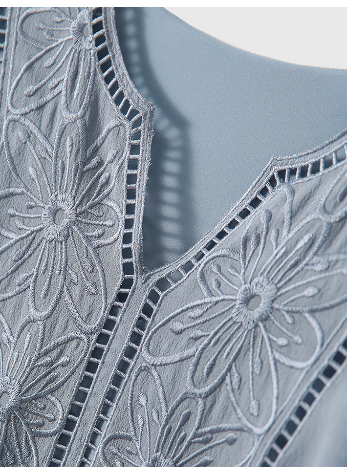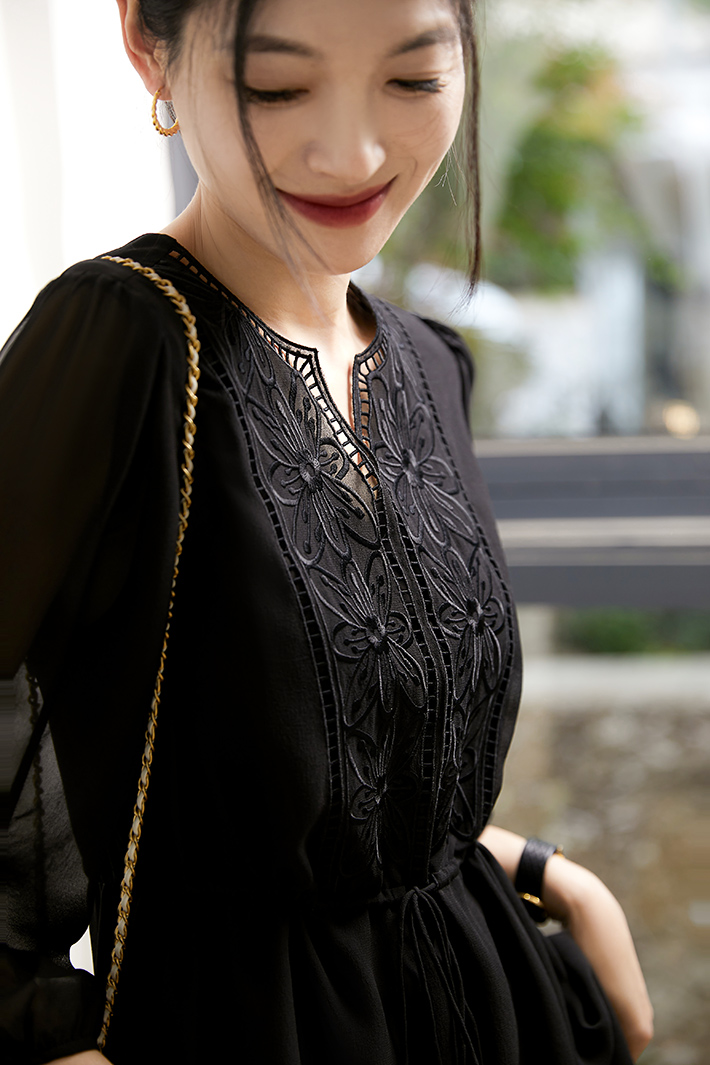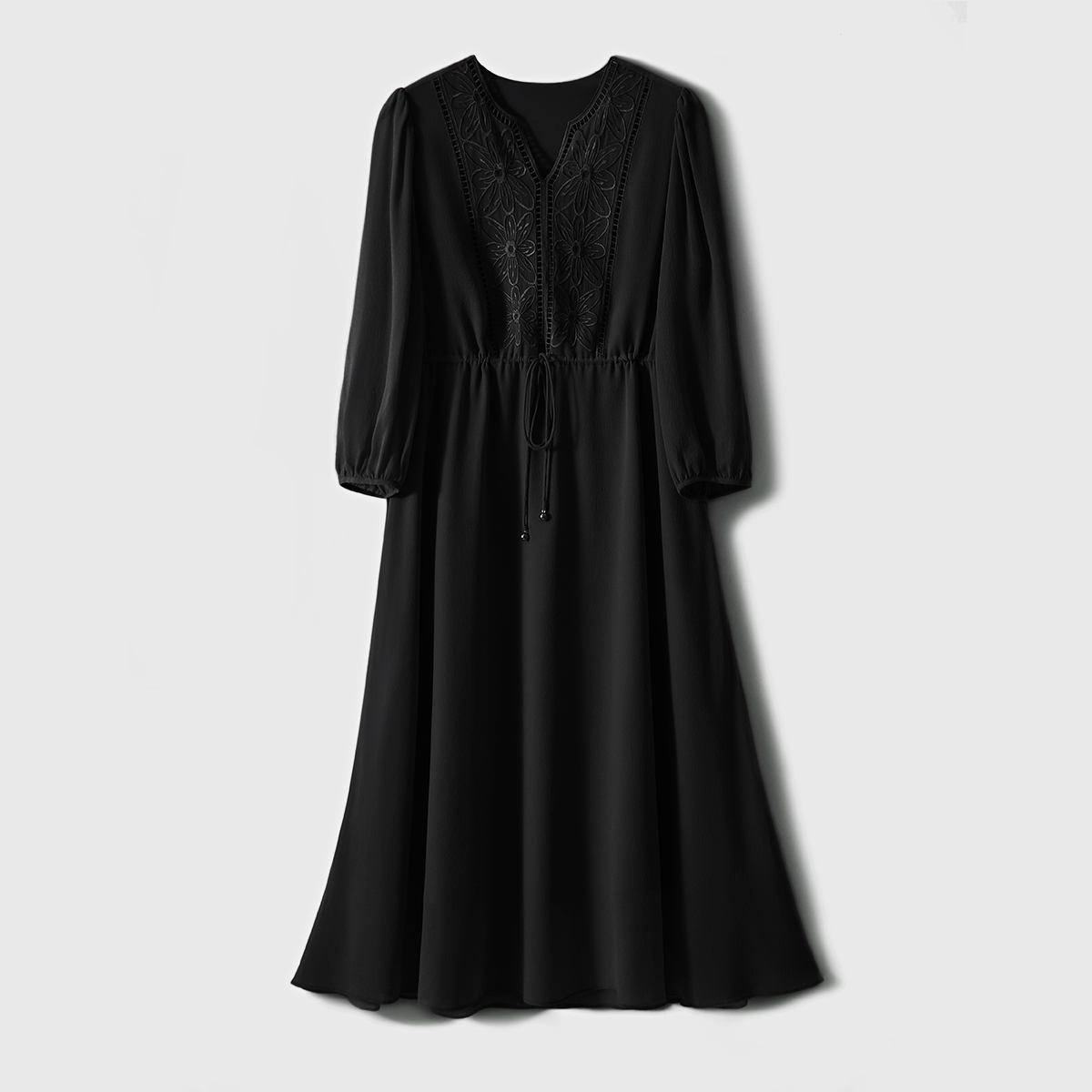 天丝刺绣小V领腰带连衣裙(两件套)2915