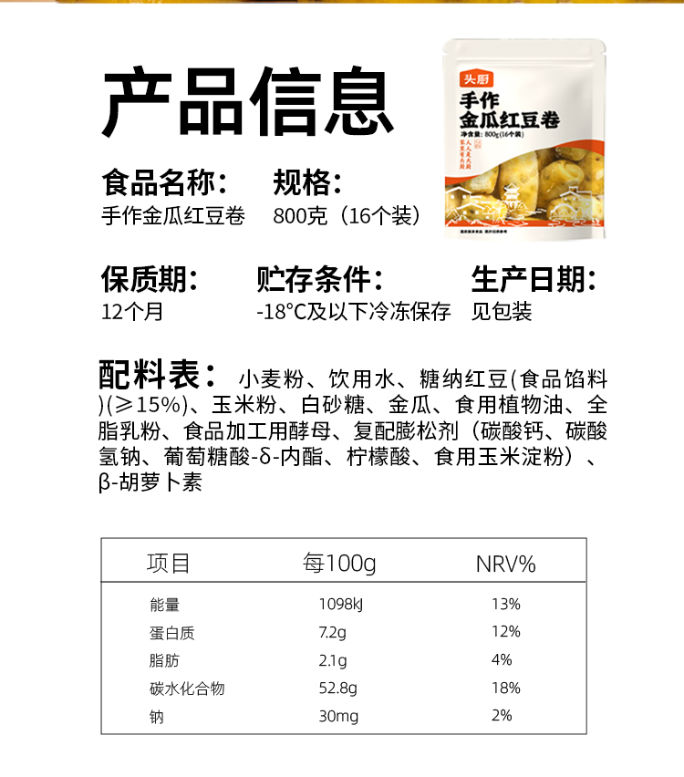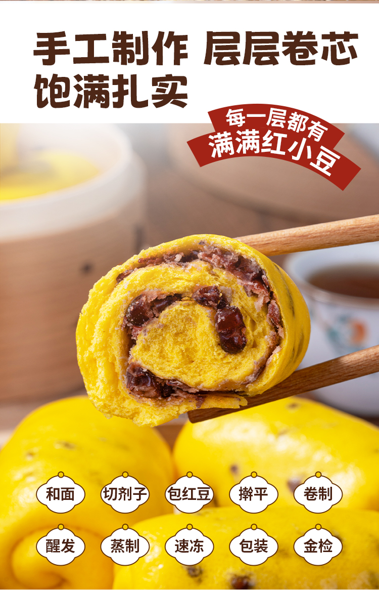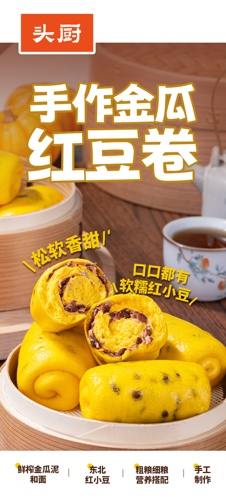 头厨手作金瓜红豆卷/1包(16个,共800g)生产日期:25年10月