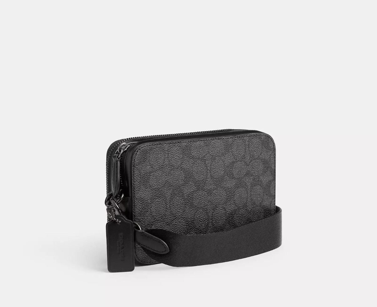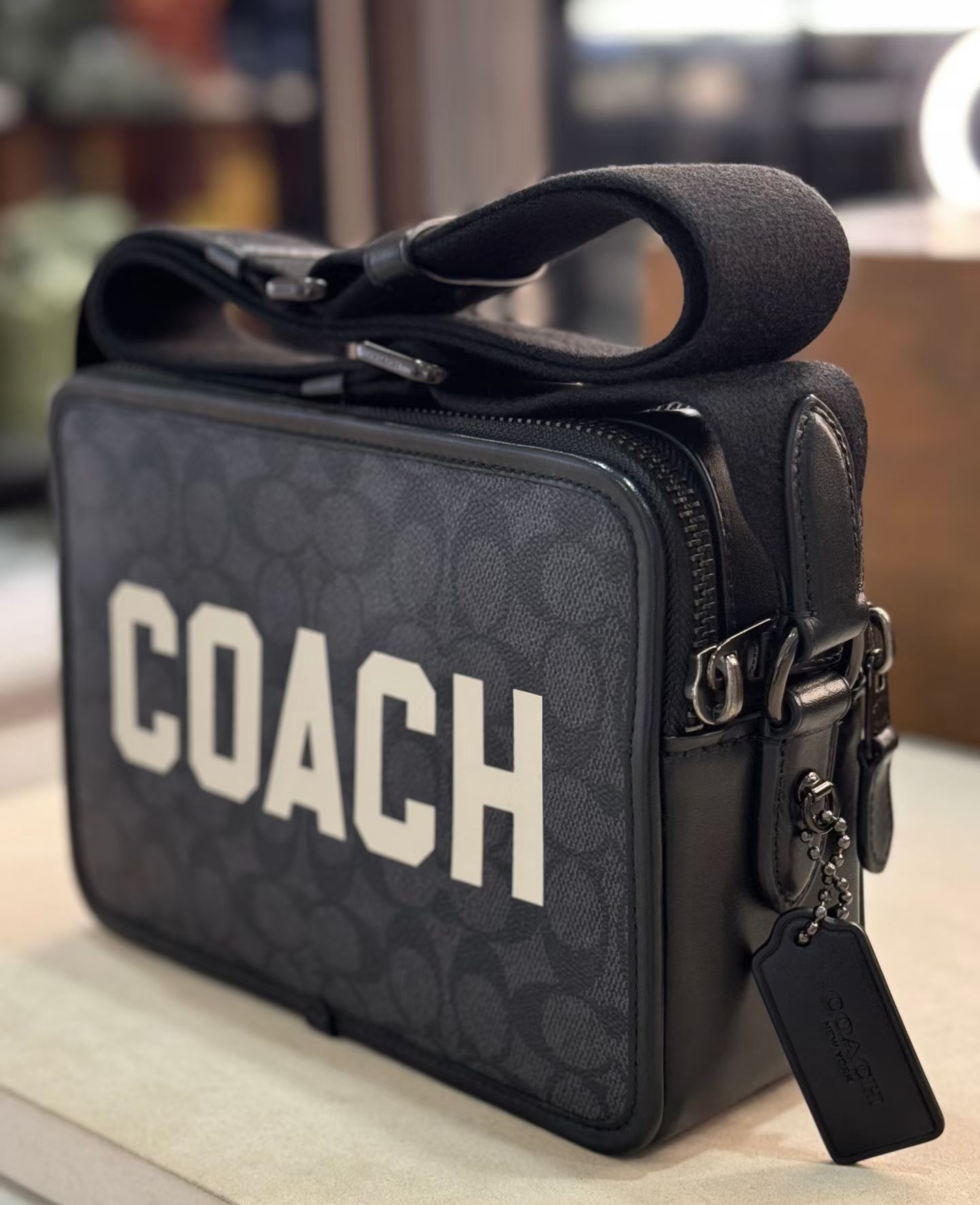 到手价1699元 Coach专柜精品 新款Charter系列黑灰老花白logo斜挎包 相机包 尺寸: 19*13*6cm 美国代购,无中文标签,介意慎拍