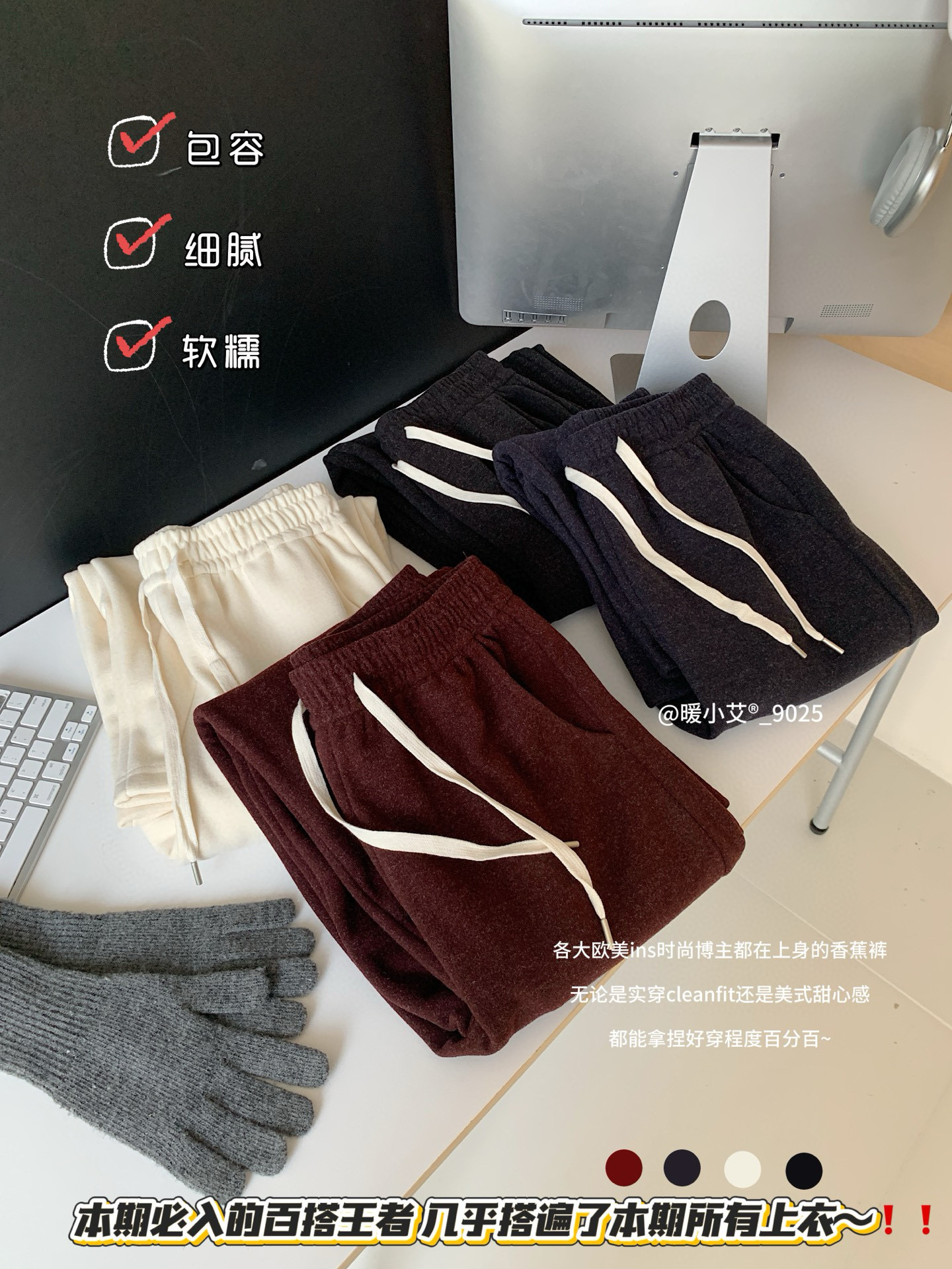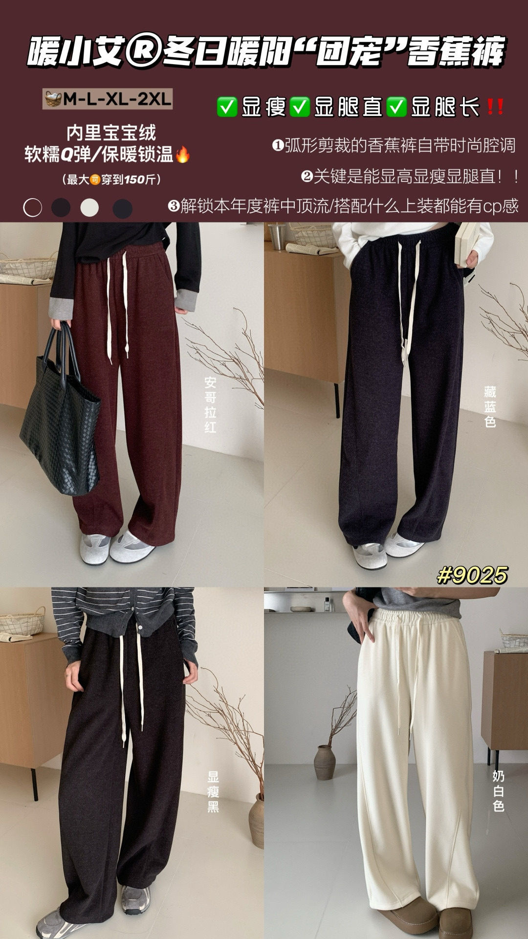 【复合面料宝宝细绒❗️柔软细腻慵懒感满满】暖小艾9025冬日暖阳团宠香蕉裤女百搭加绒加厚软糯垂感保暖休闲裤。ja