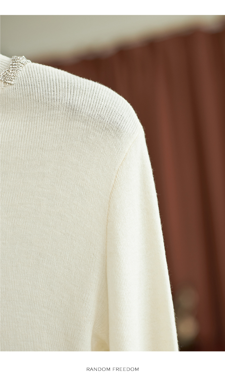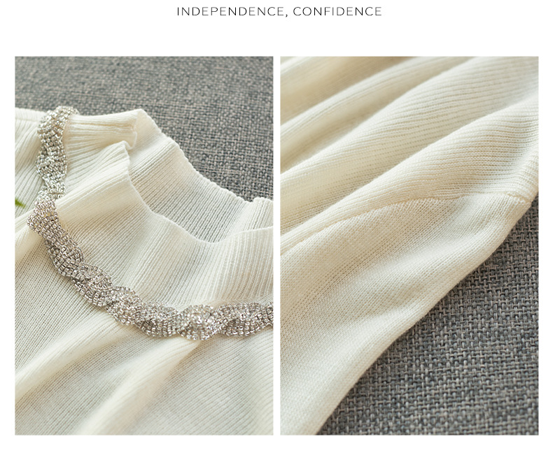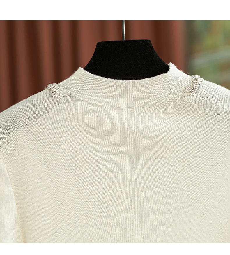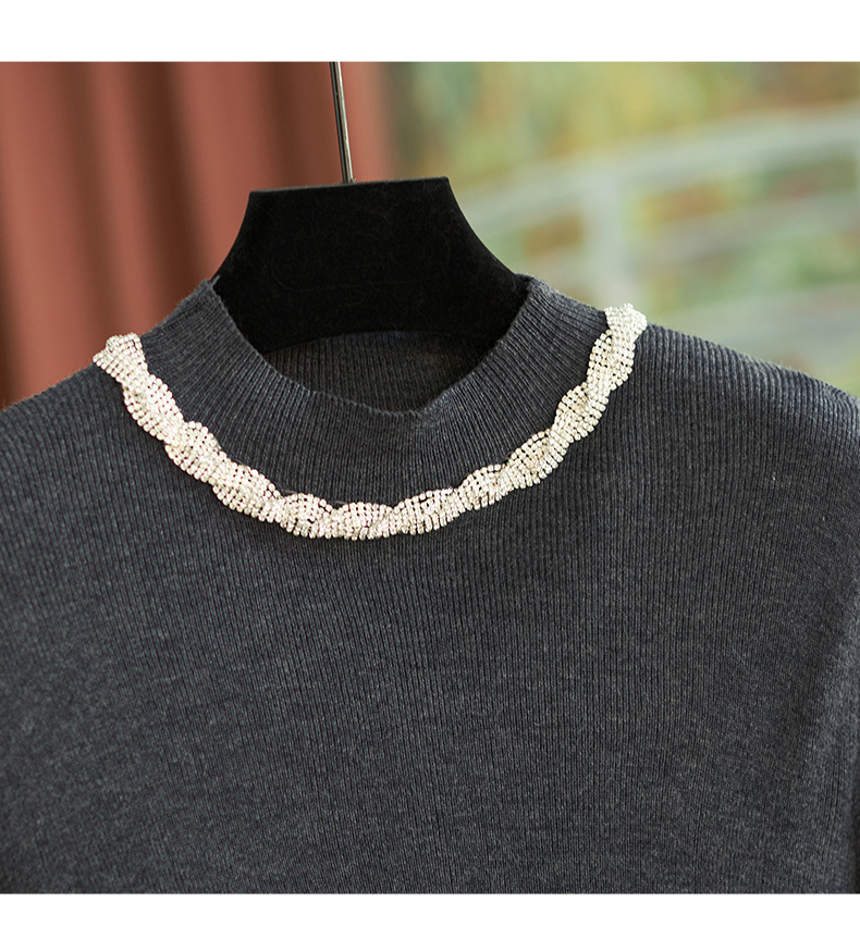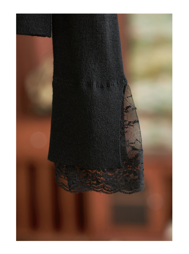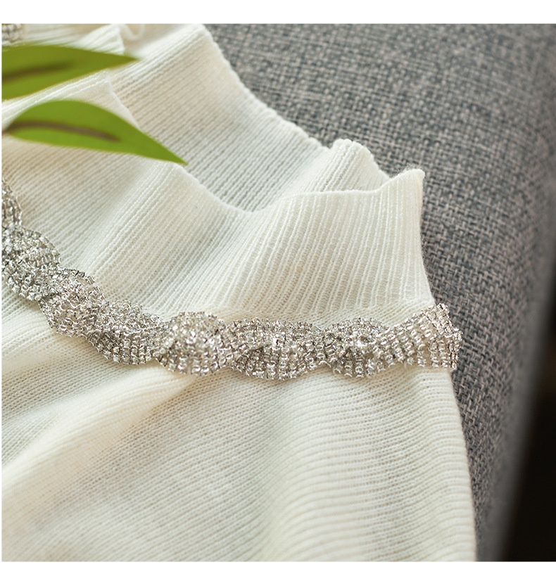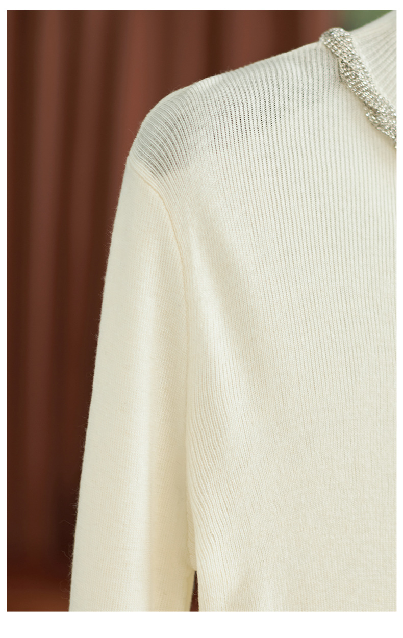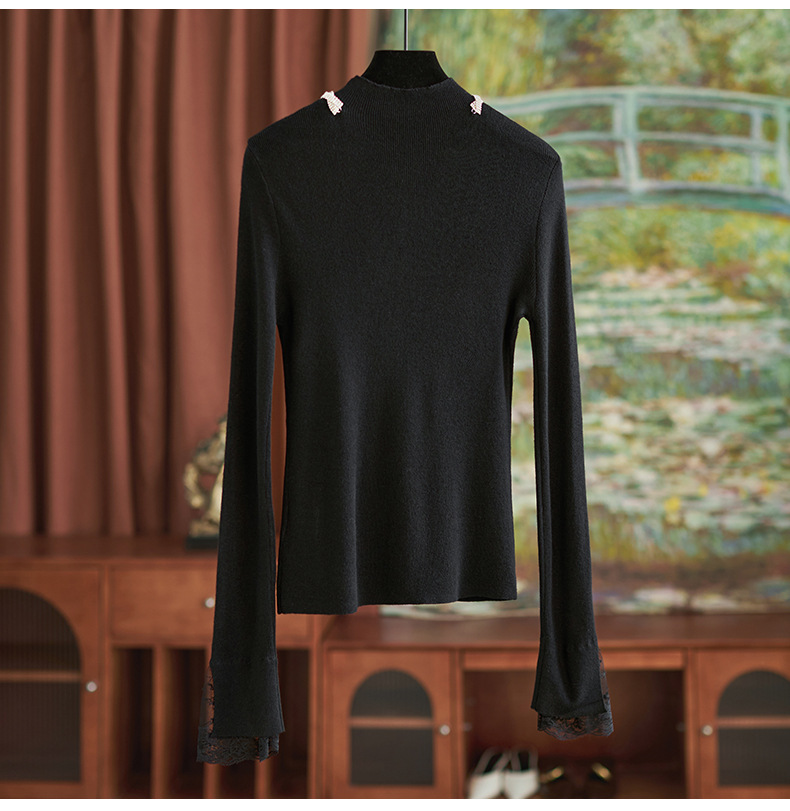【高货wl】全新升级【铂金会员211/天猫279/差价68】(03016) 洛诗琳秋冬轻奢精致半高领钻链蕾丝袖口拼接针织打底衫女