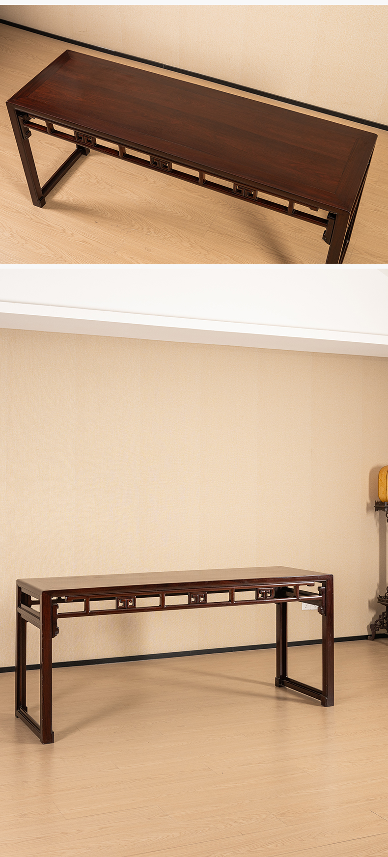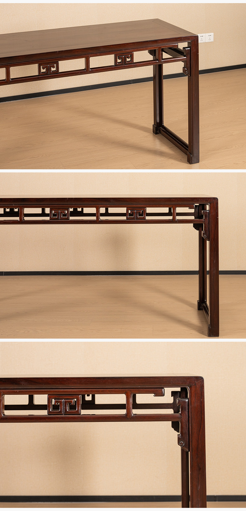 二十世纪 红木回纹四面平条桌