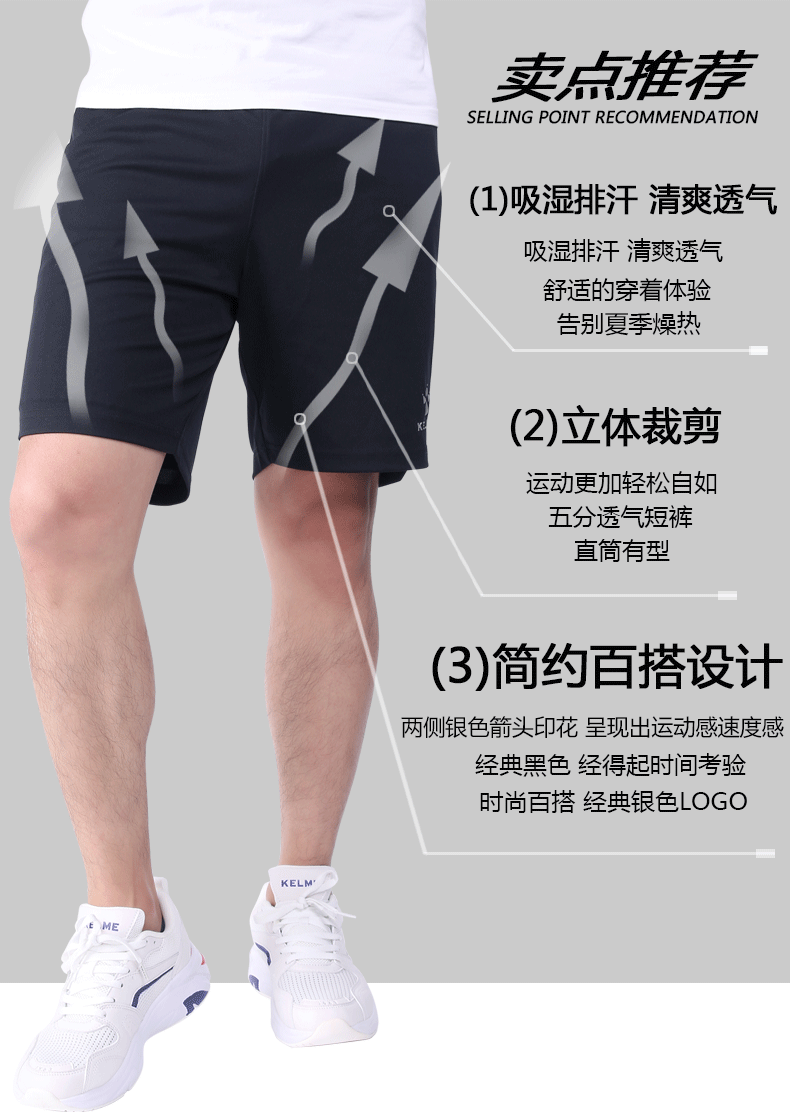 kelme卡尔美官方旗舰店运动短裤男夏薄款休闲跑步五分裤健身短裤