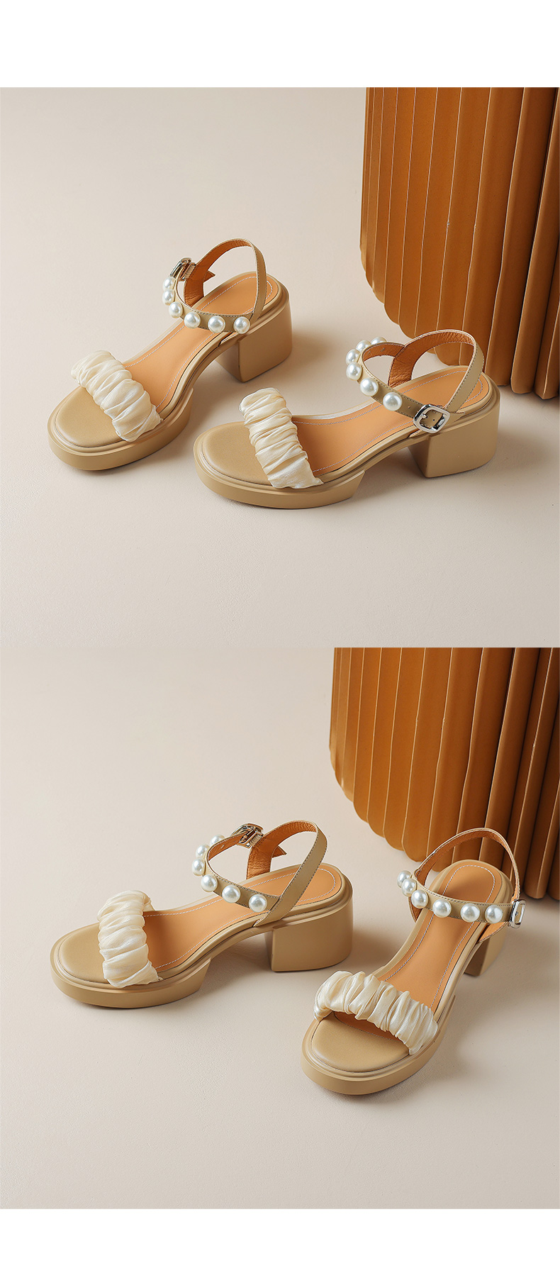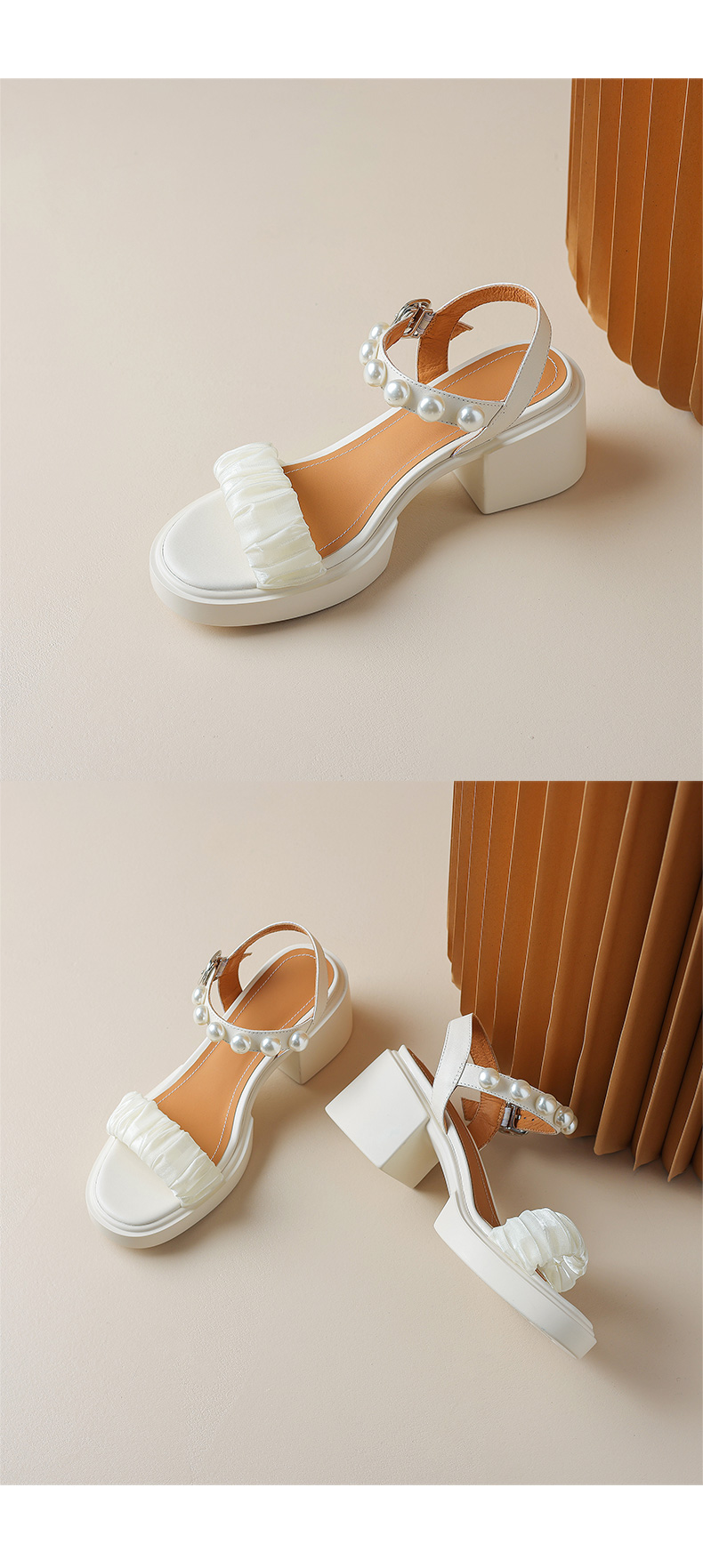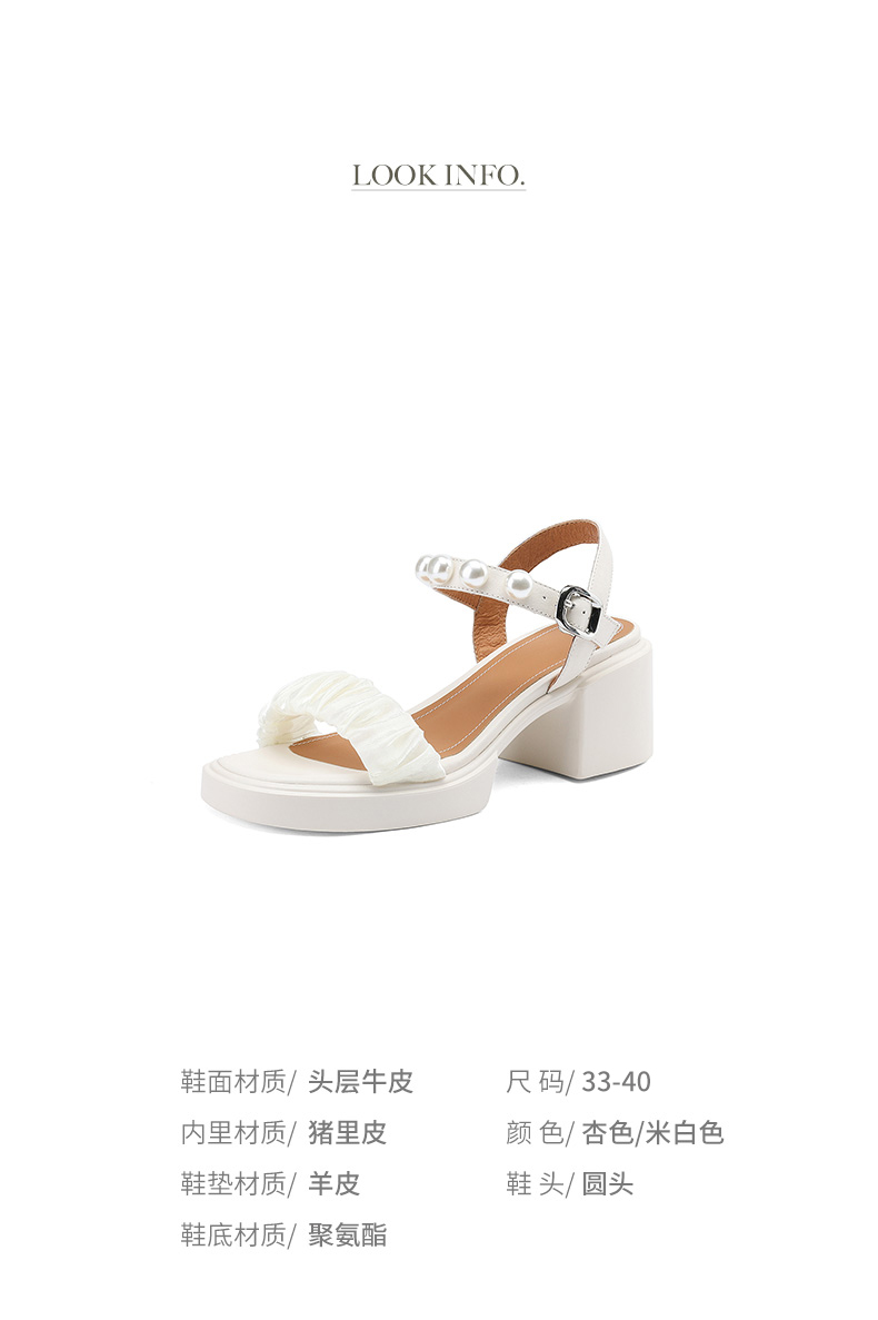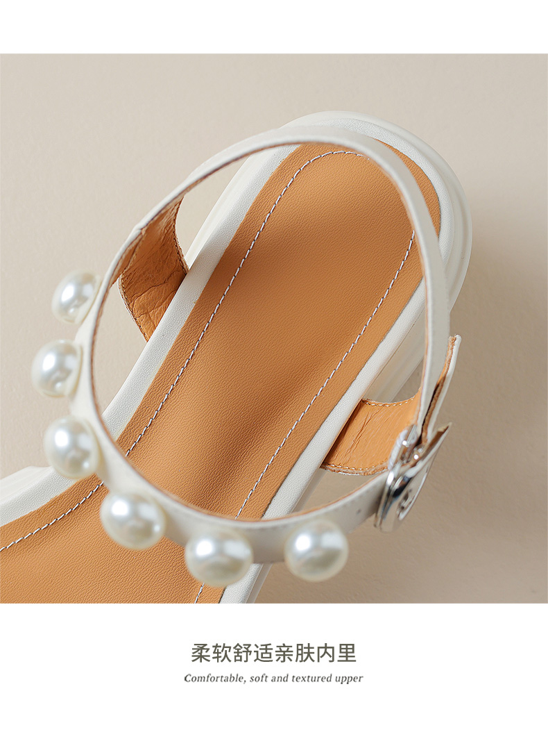 舒适百搭,轻里外全头层皮珍珠粗跟圆头露趾凉鞋ZYY-A439