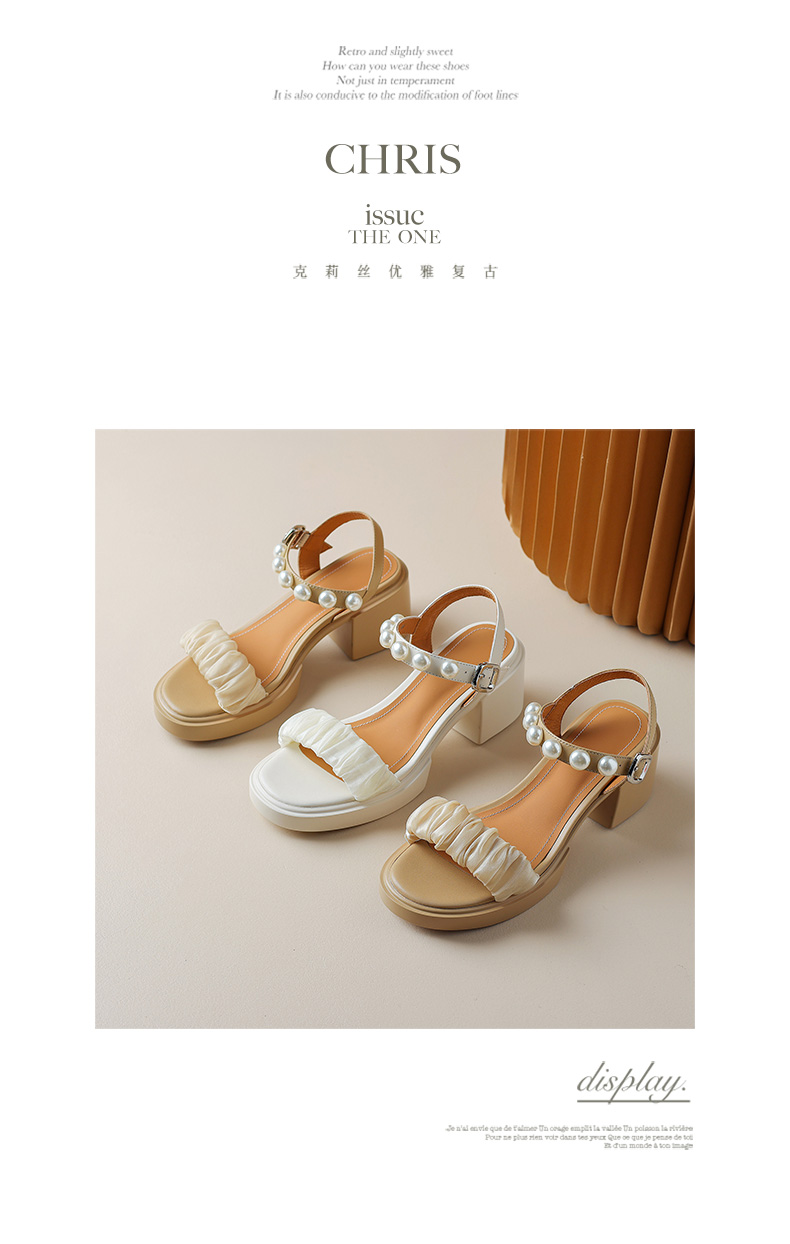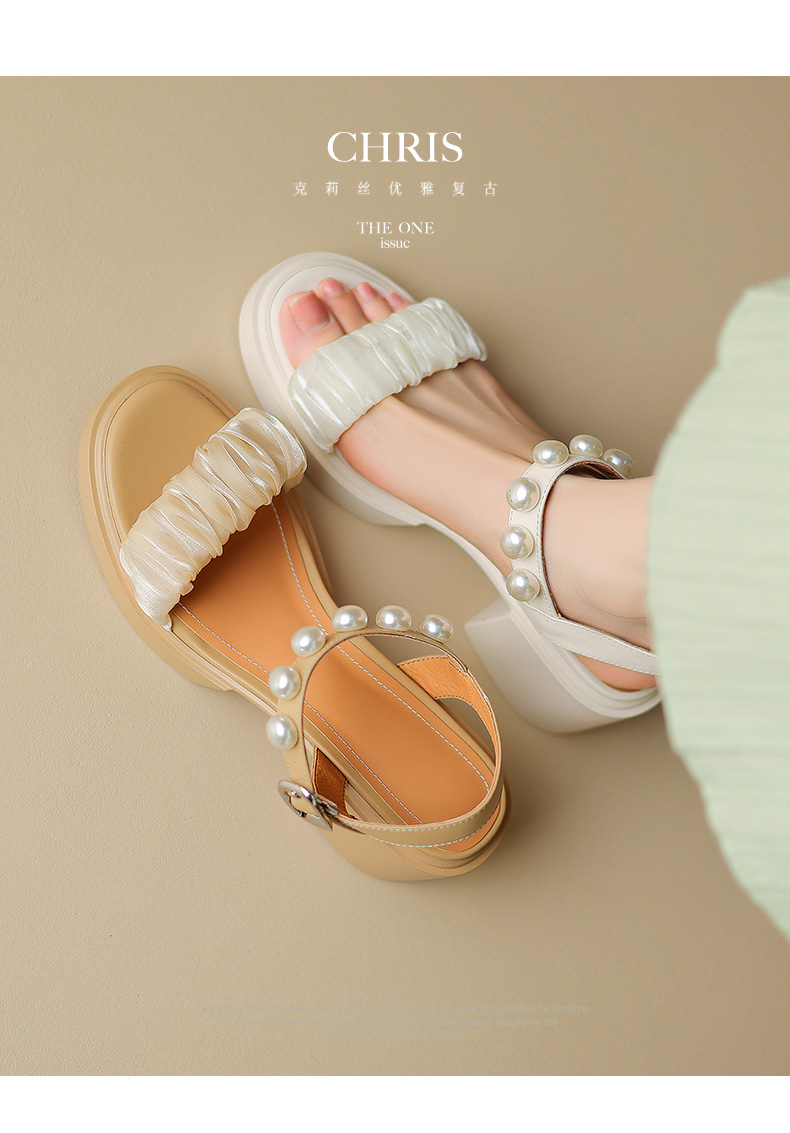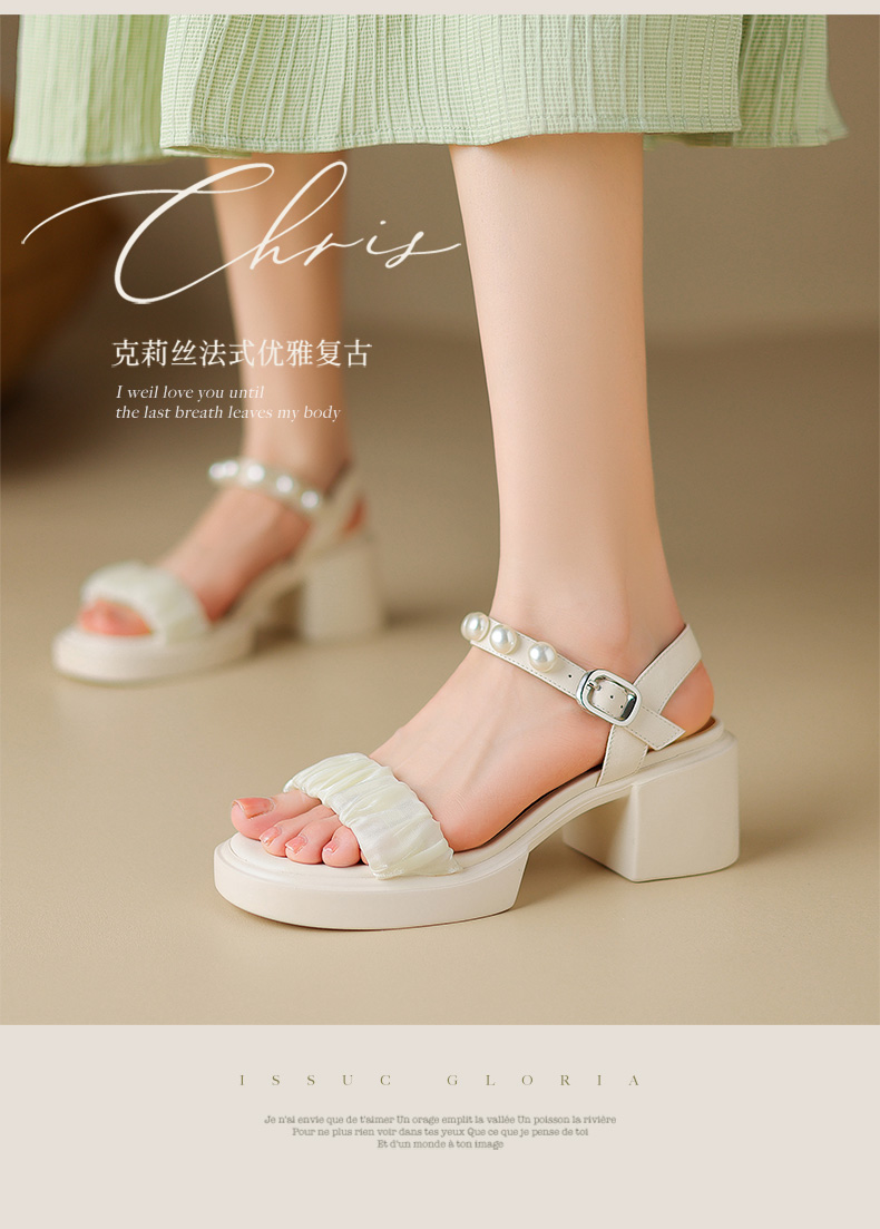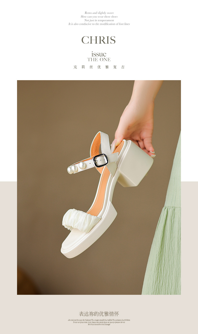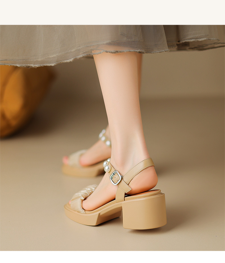 舒适百搭,轻里外全头层皮珍珠粗跟圆头露趾凉鞋ZYY-A439