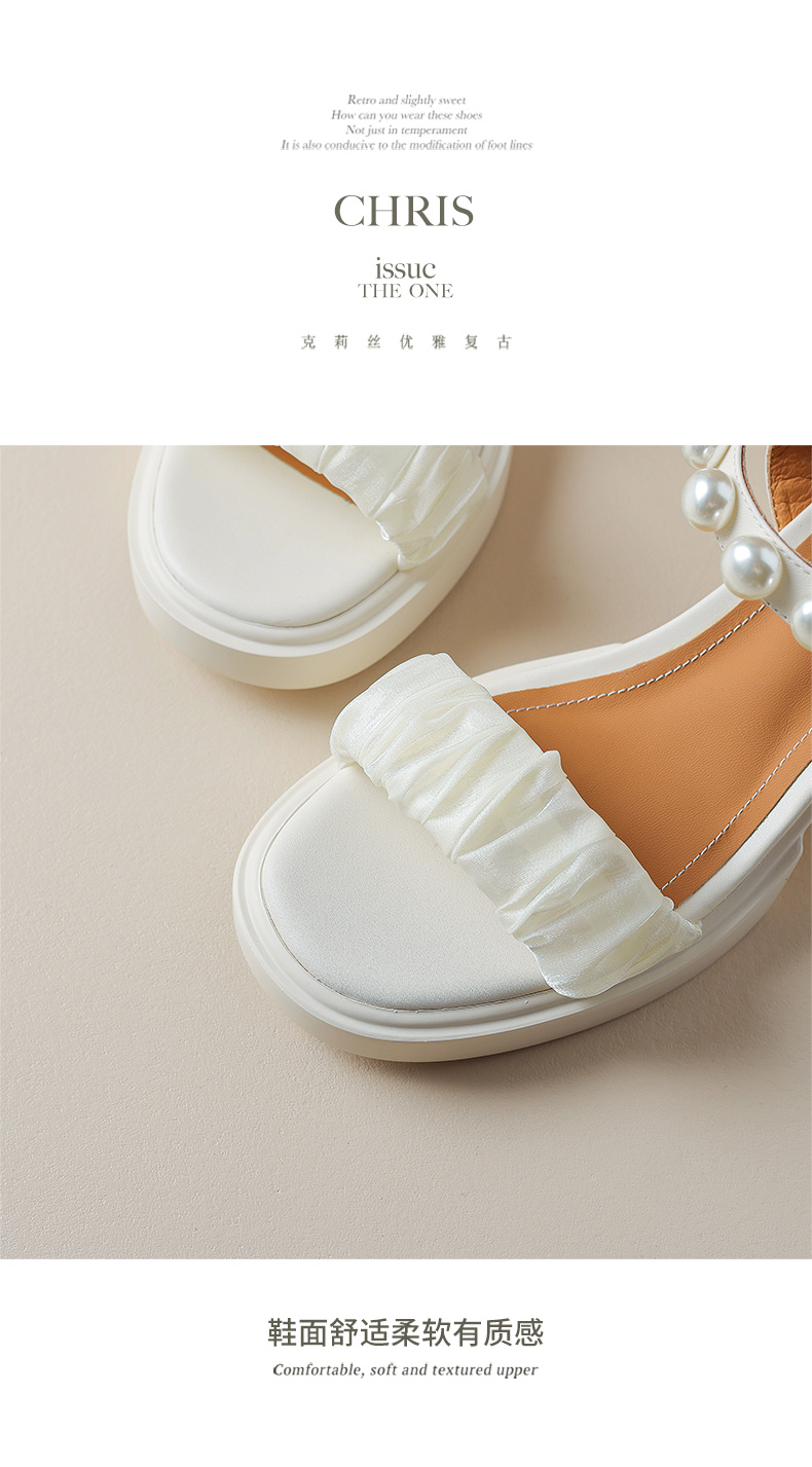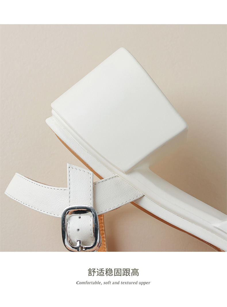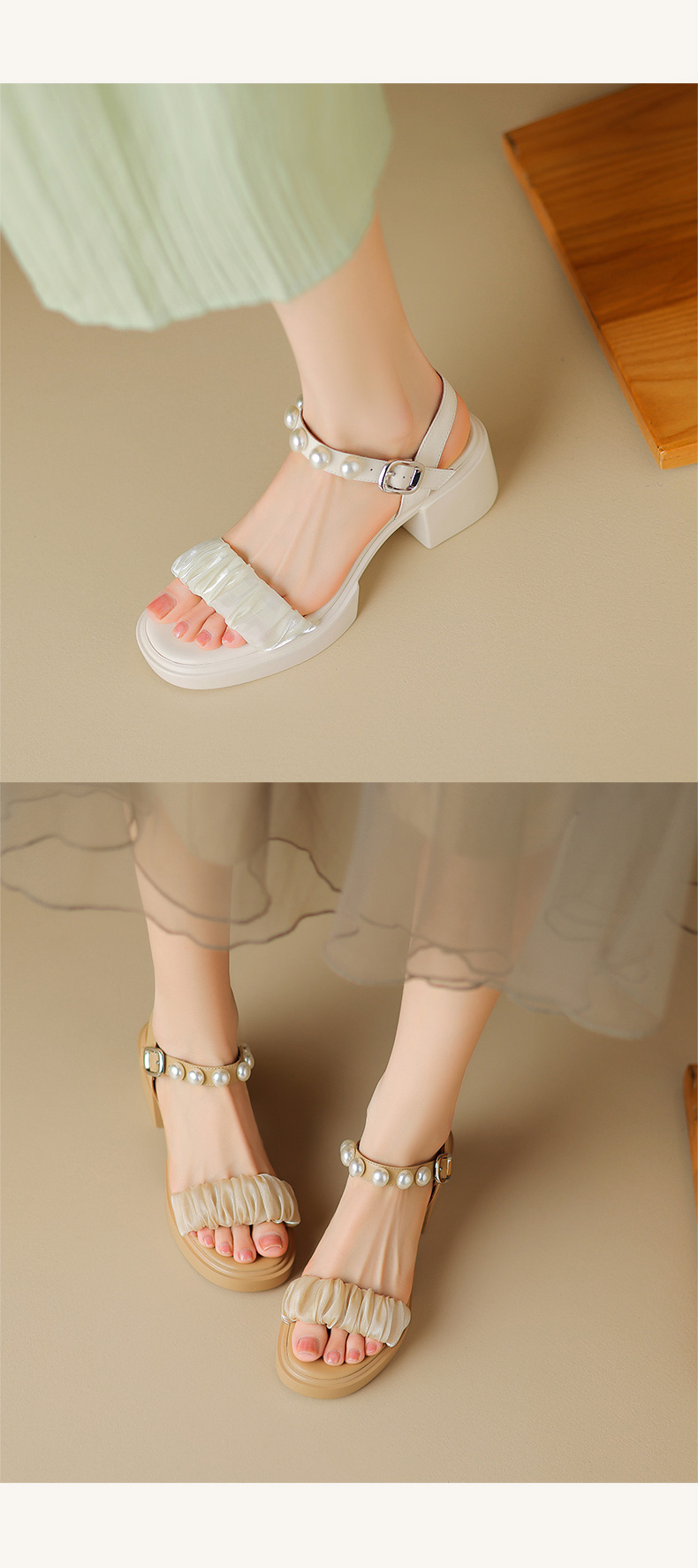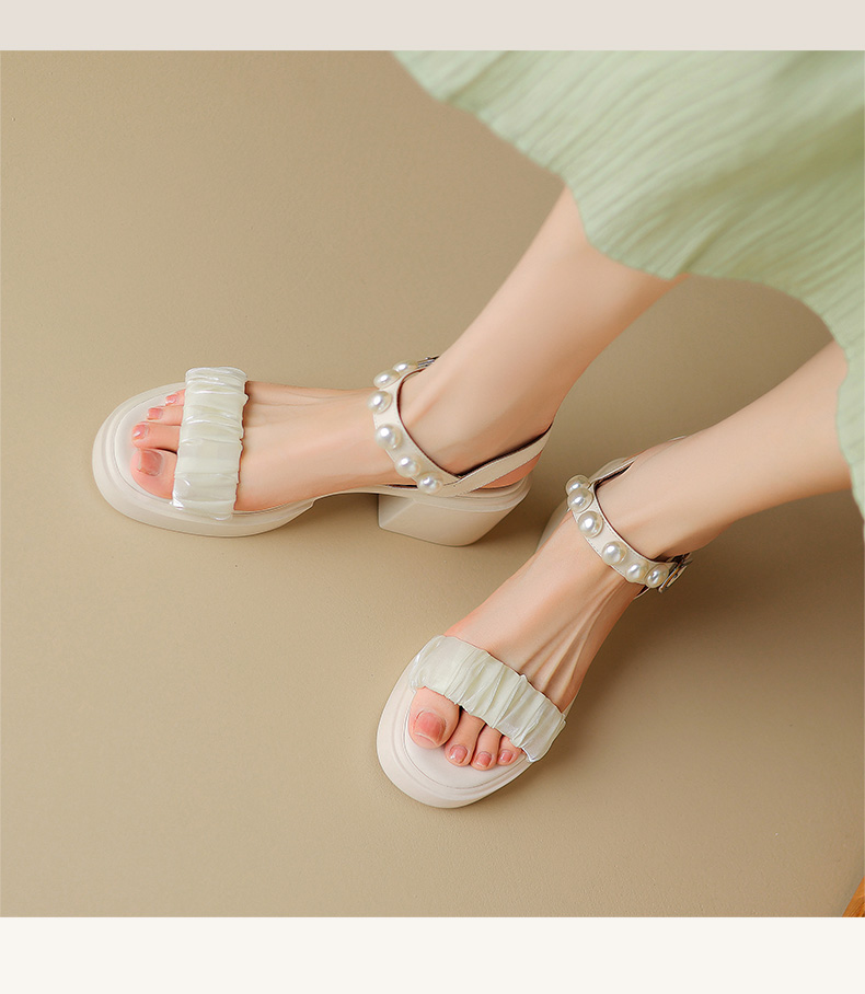 舒适百搭,轻里外全头层皮珍珠粗跟圆头露趾凉鞋ZYY-A439