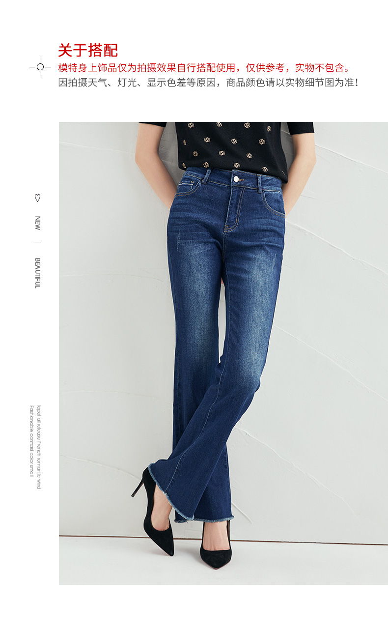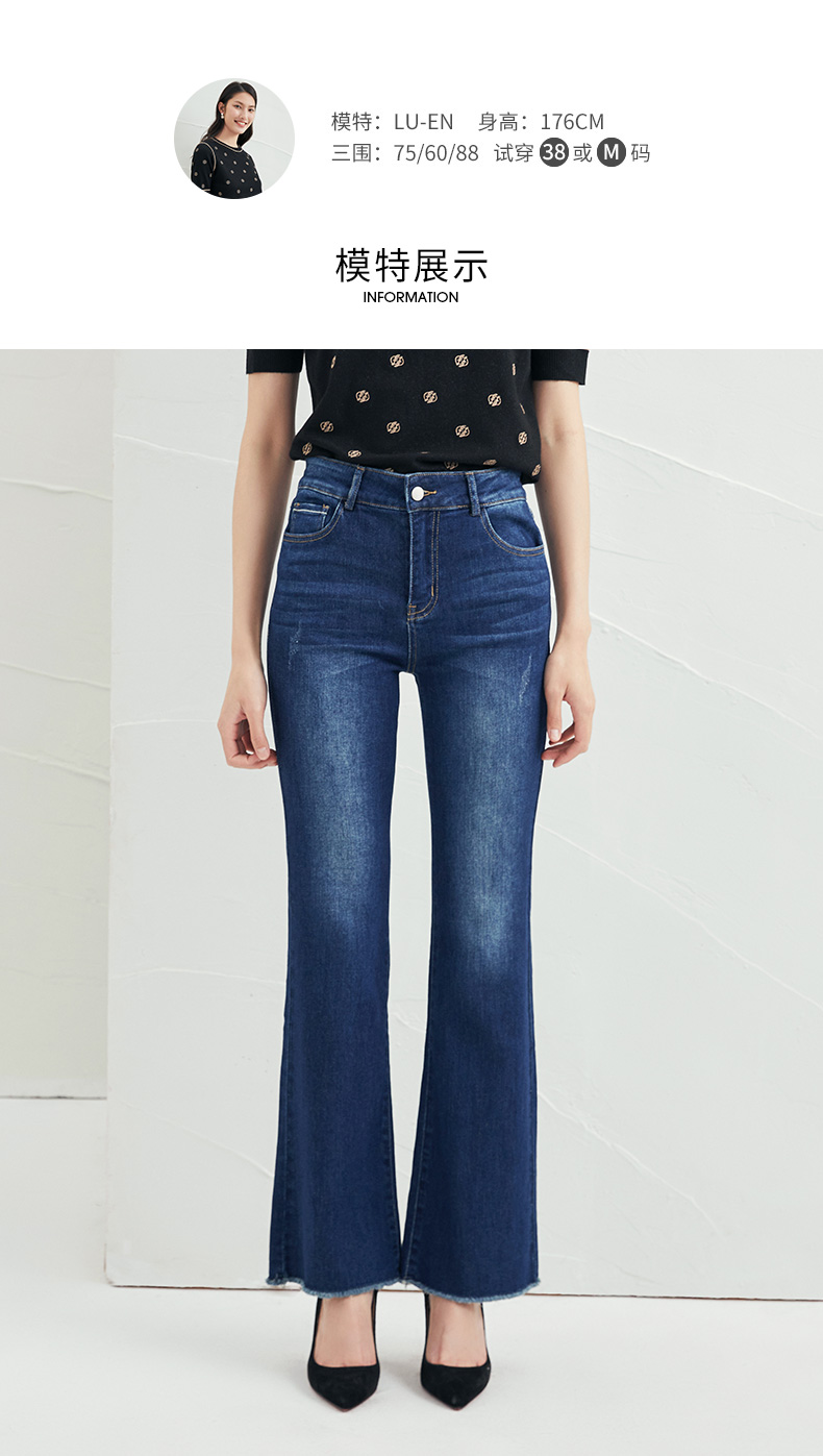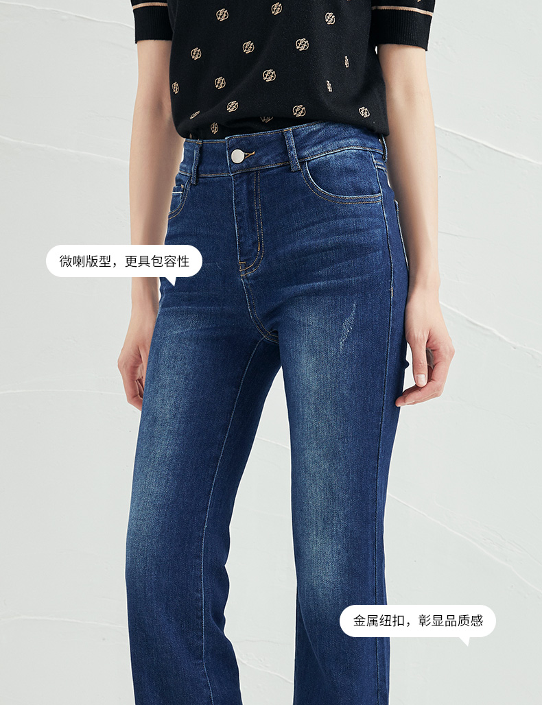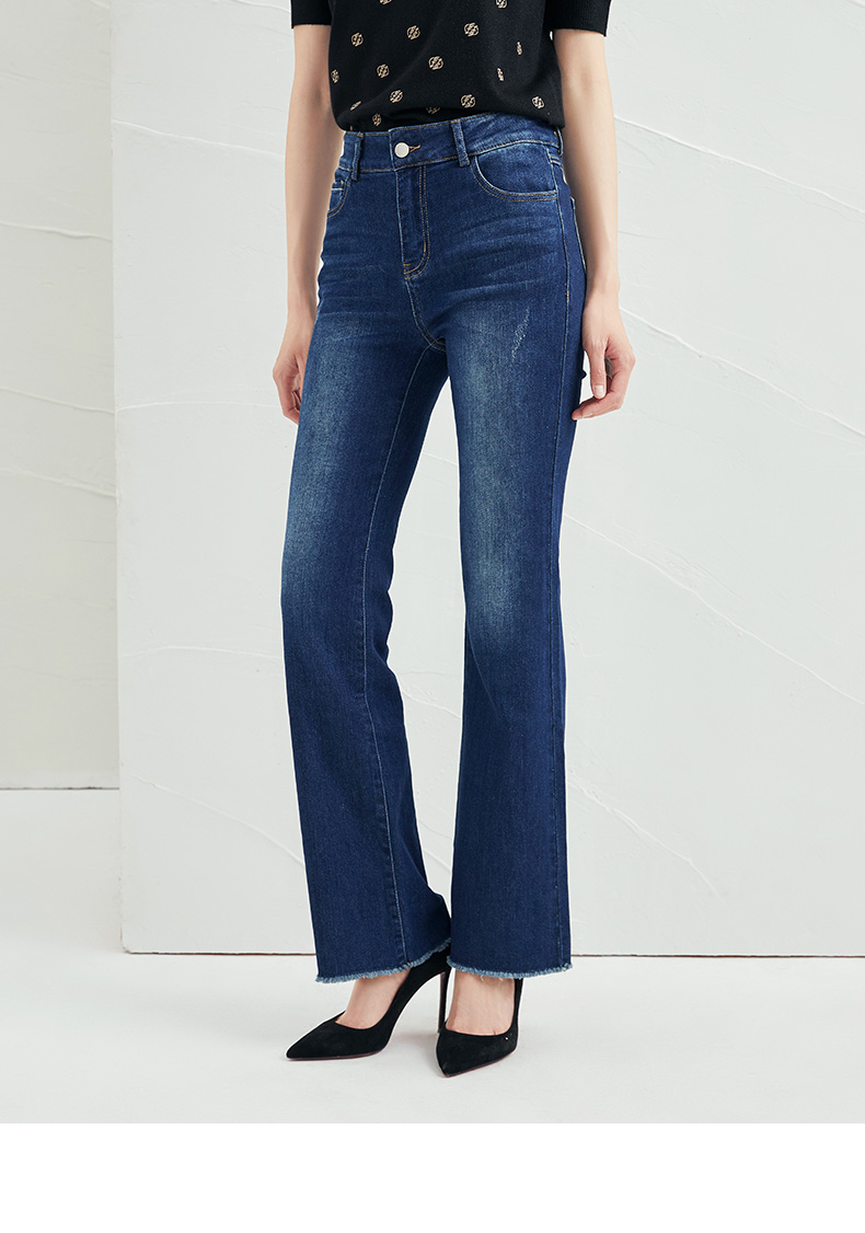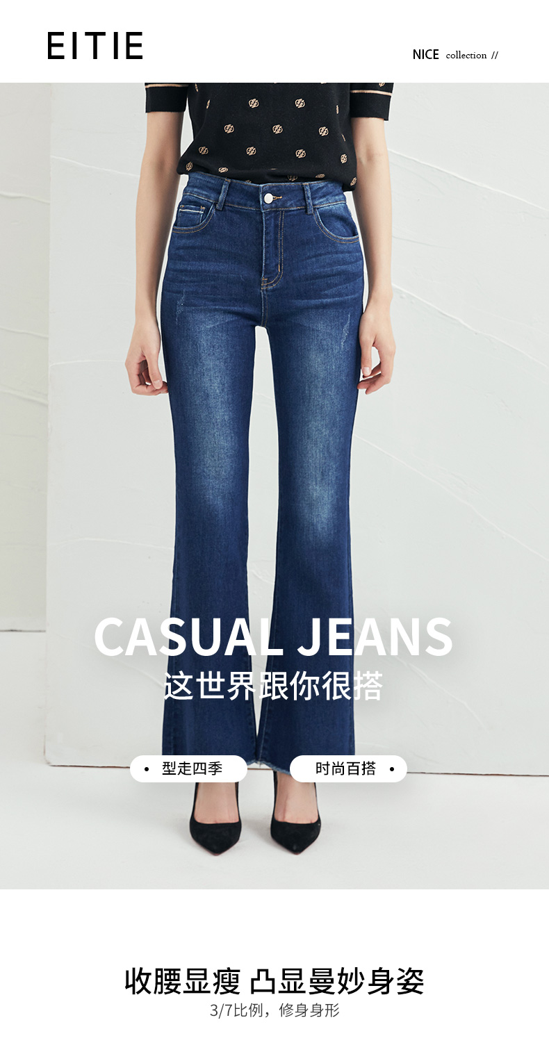 EITIE爱特爱春季新款高腰微喇显瘦OL通勤百搭干练纯色休闲裤A2305113