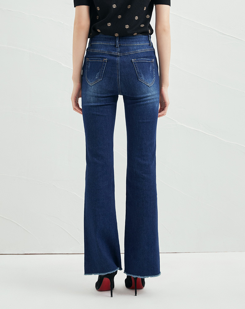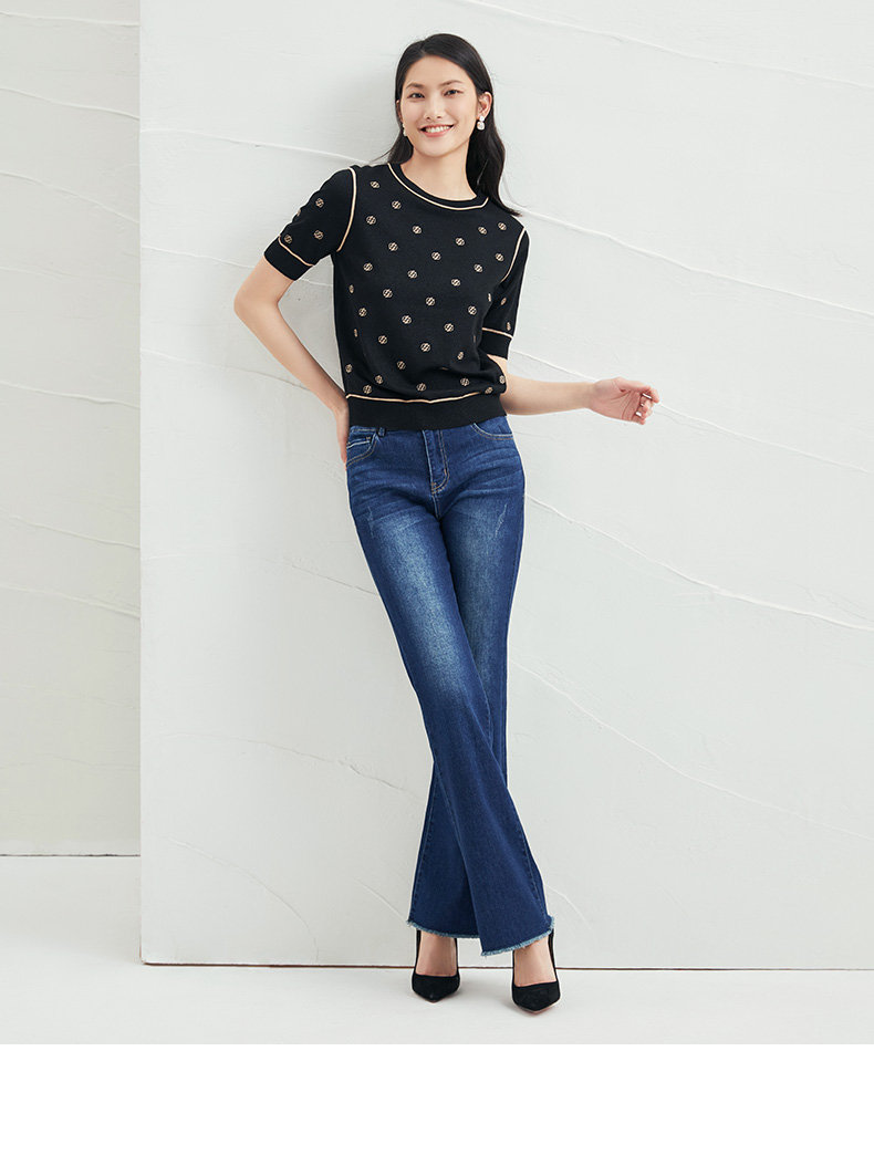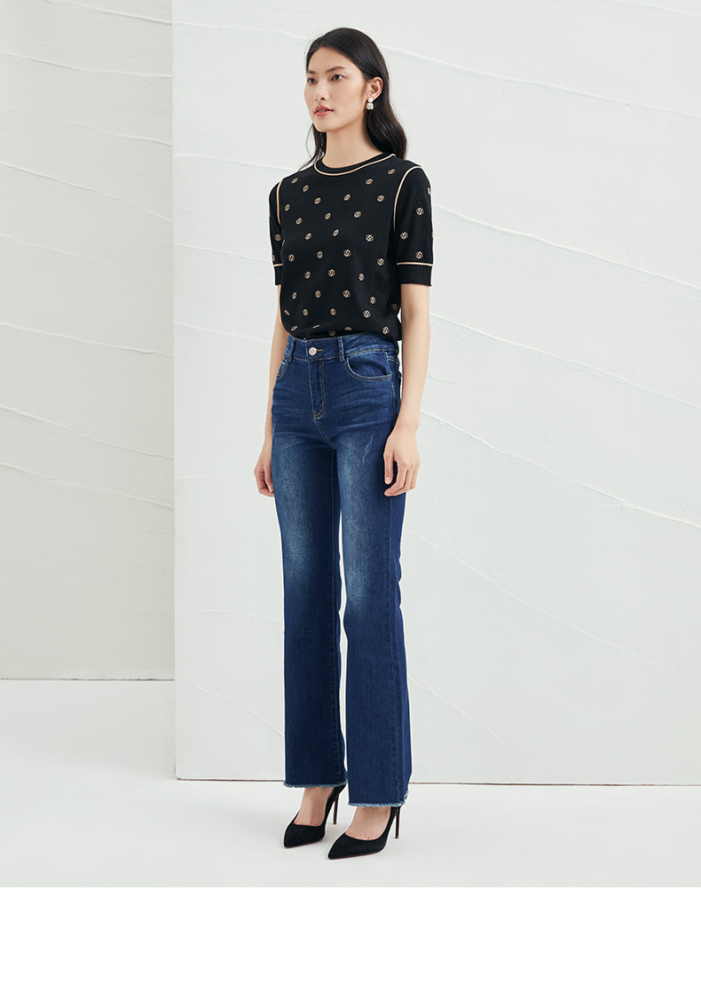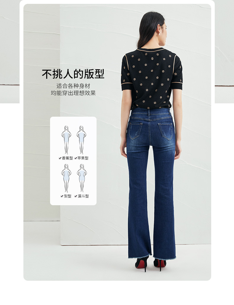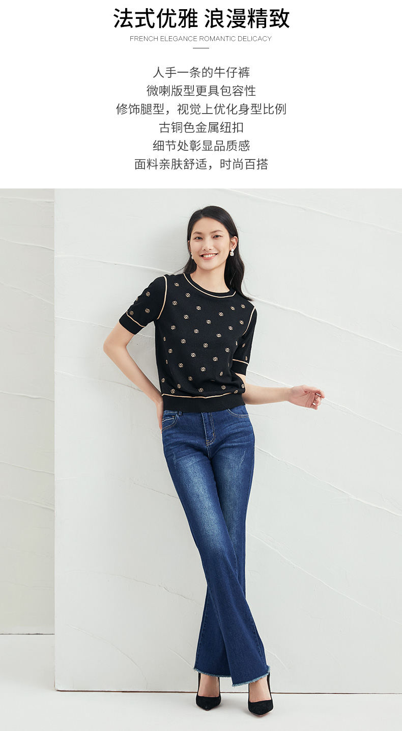 EITIE爱特爱春季新款高腰微喇显瘦OL通勤百搭干练纯色休闲裤A2305113