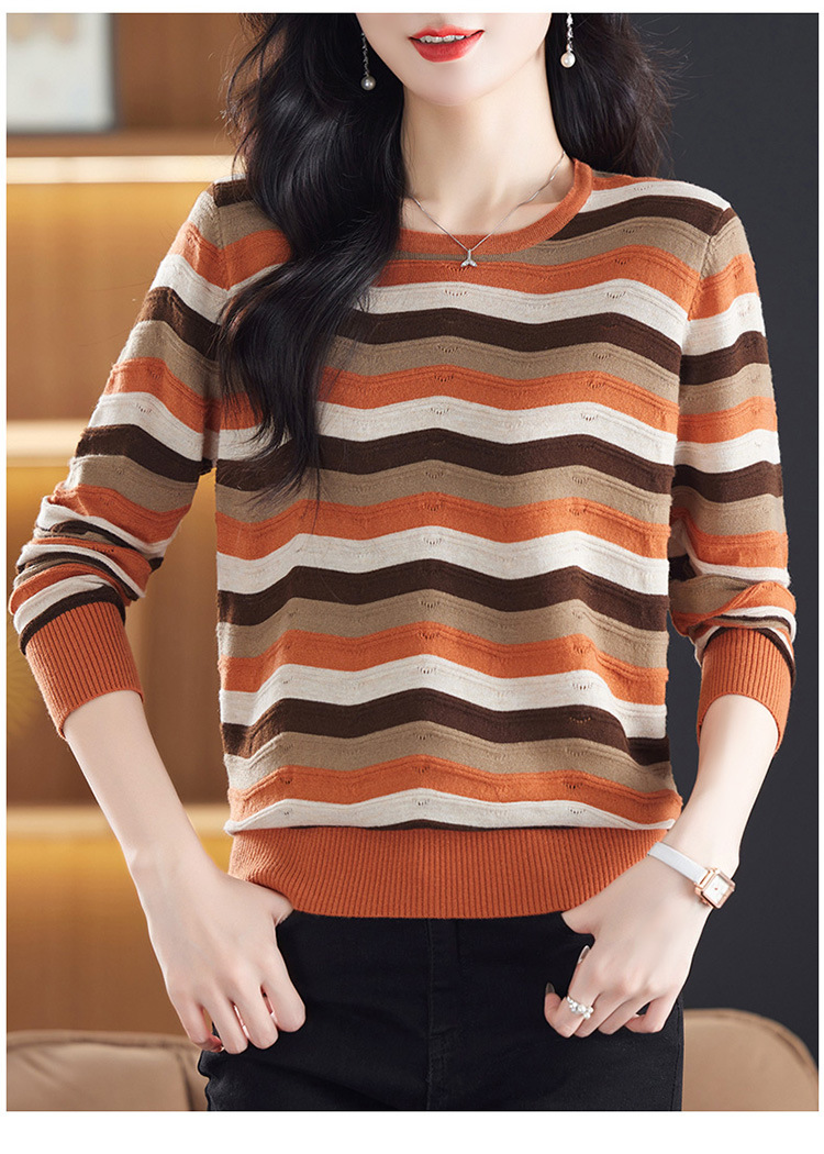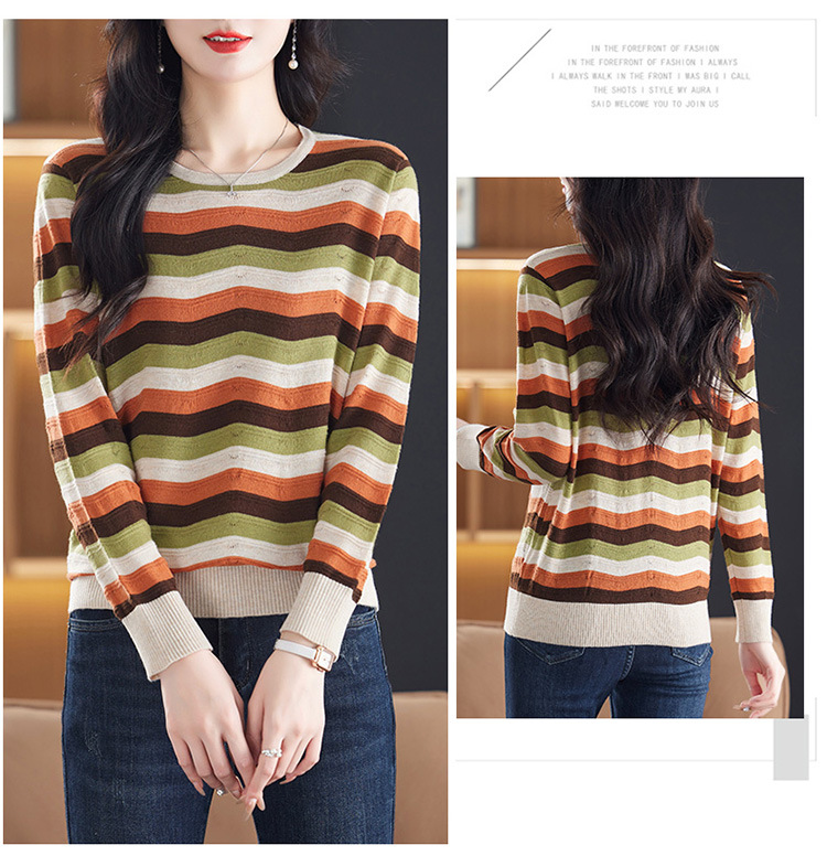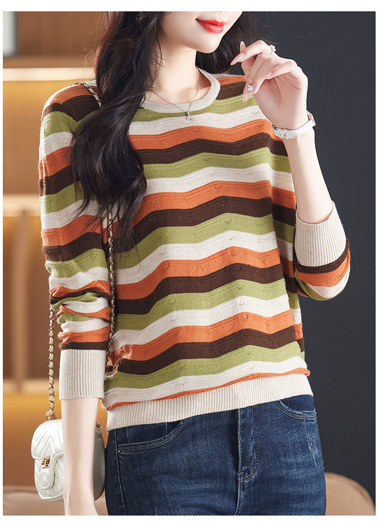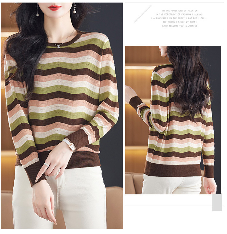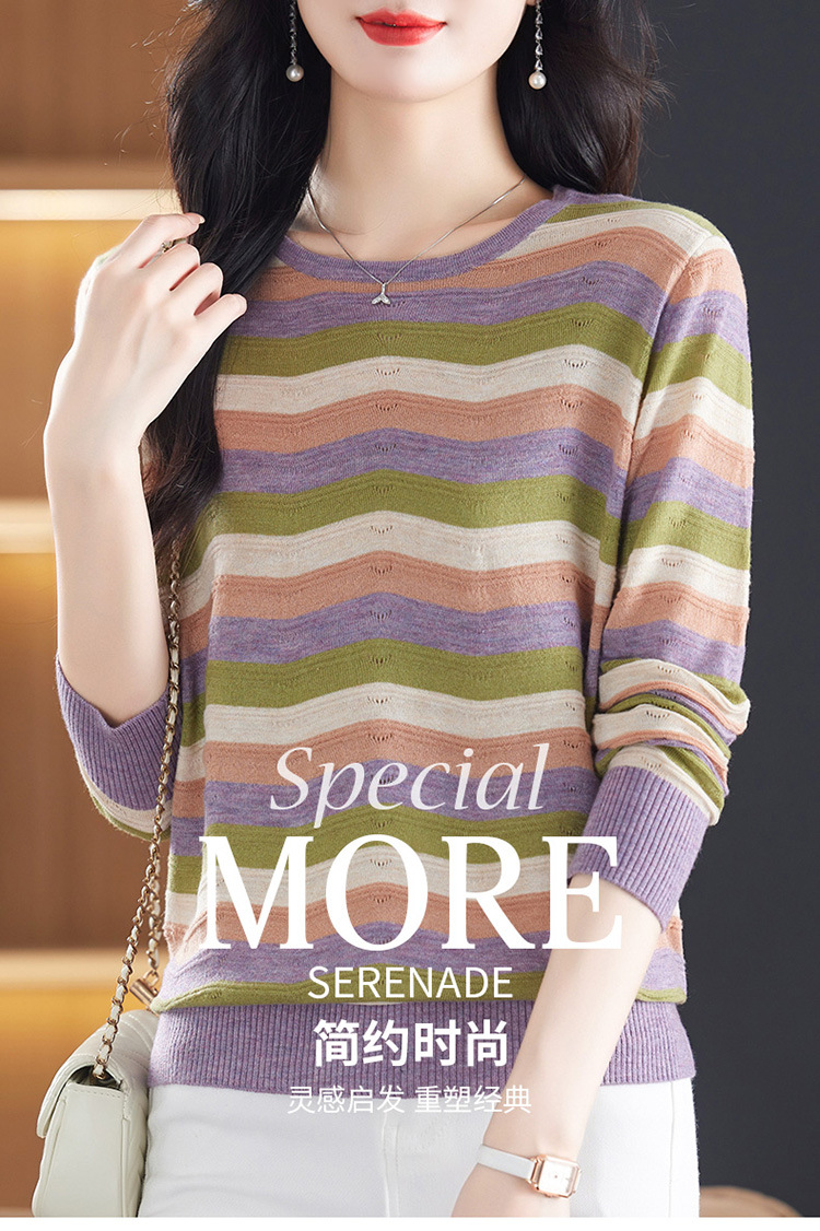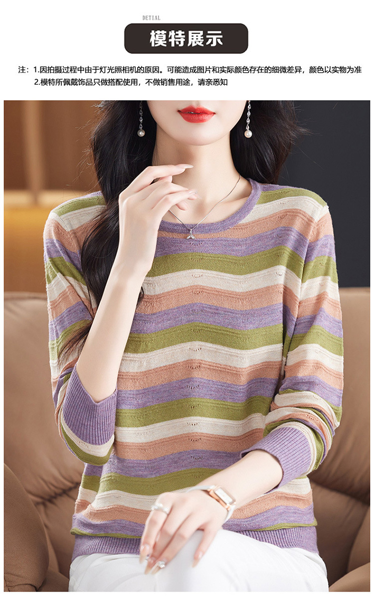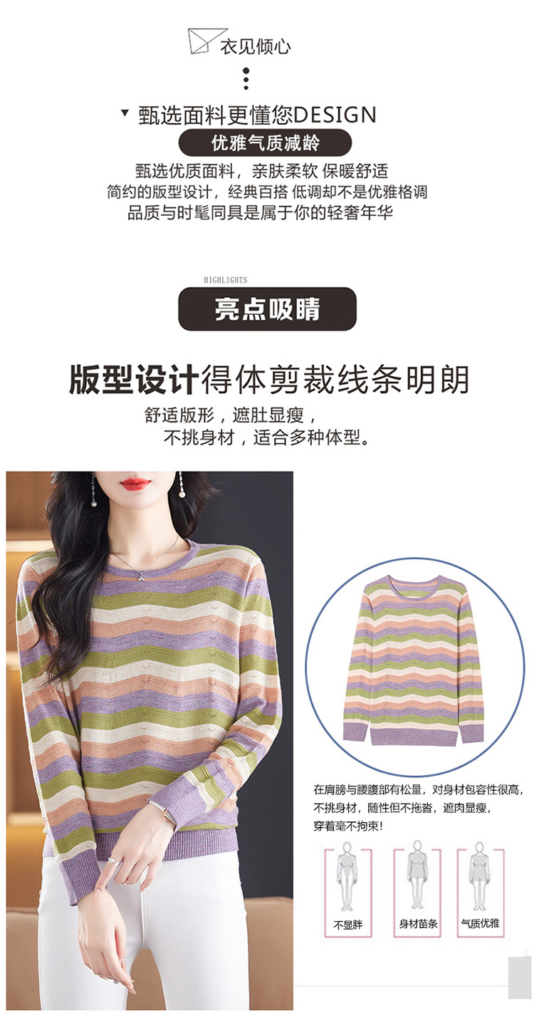 条纹长袖上衣,宽松针织打底小衫薄款CC-13-6301