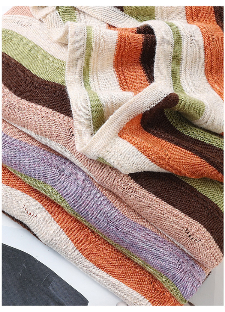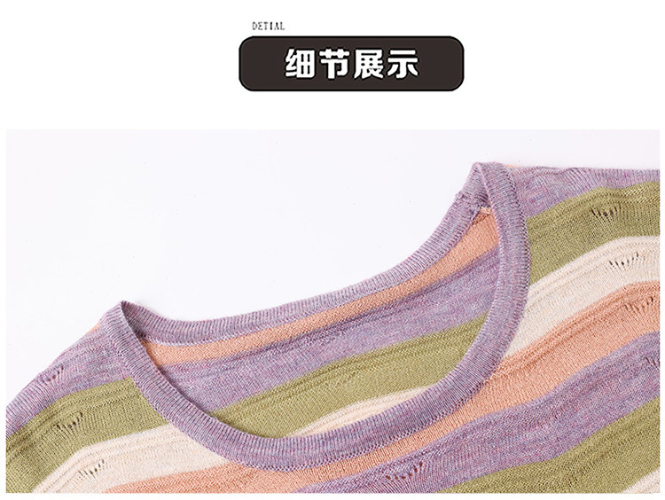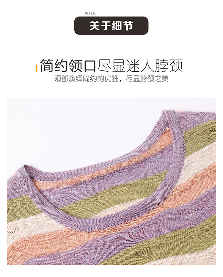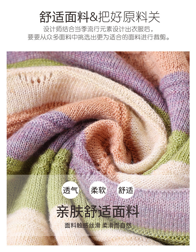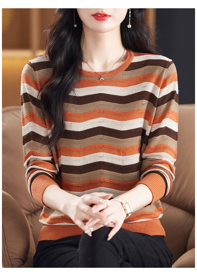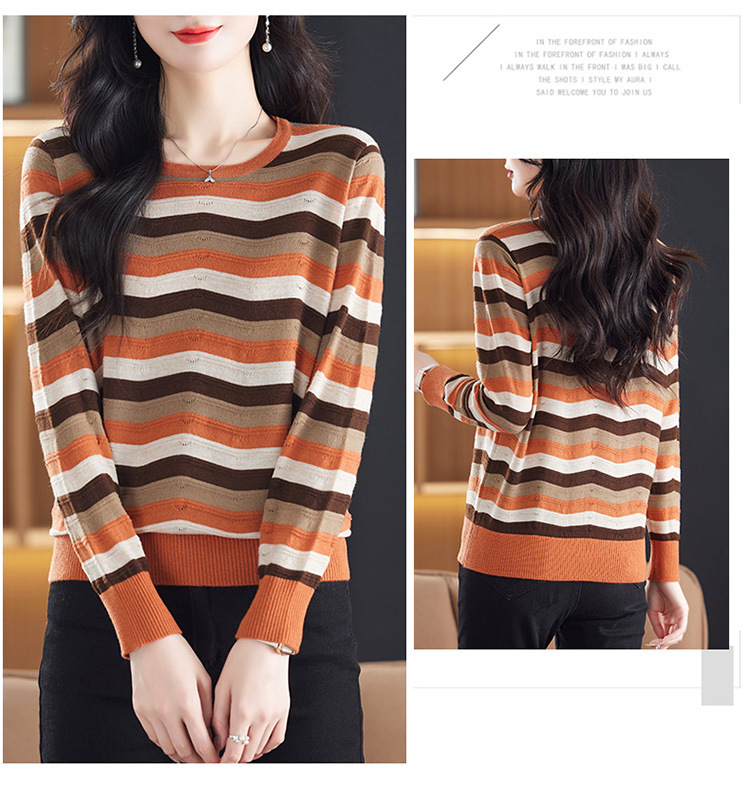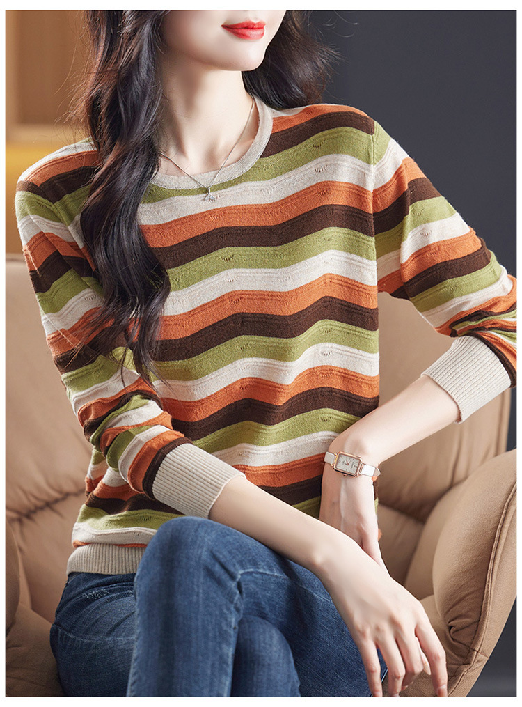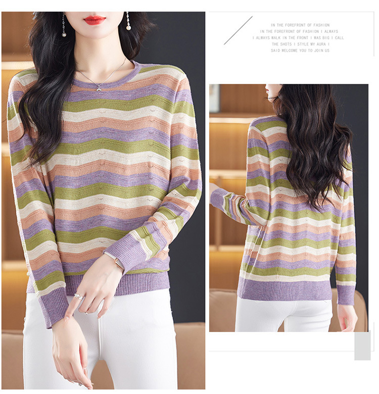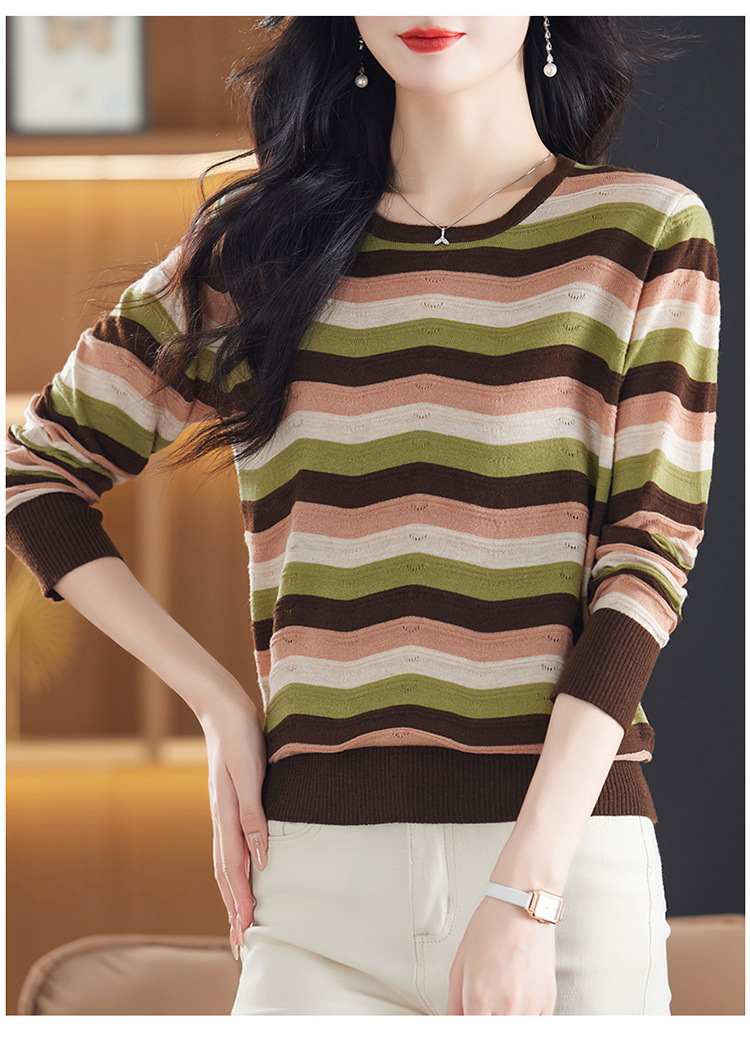 条纹长袖上衣,宽松针织打底小衫薄款CC-13-6301