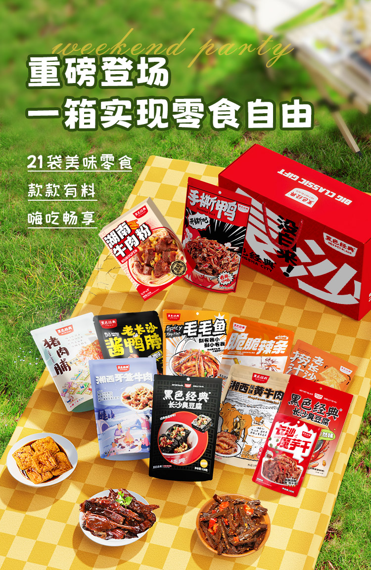 【旅游伴手礼】黑色经典限定款分享套餐 整整21份美食精心搭配 出游露营零食