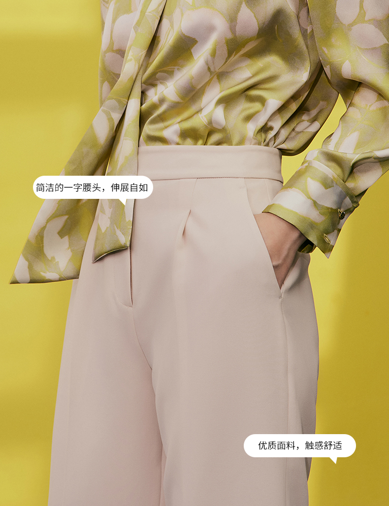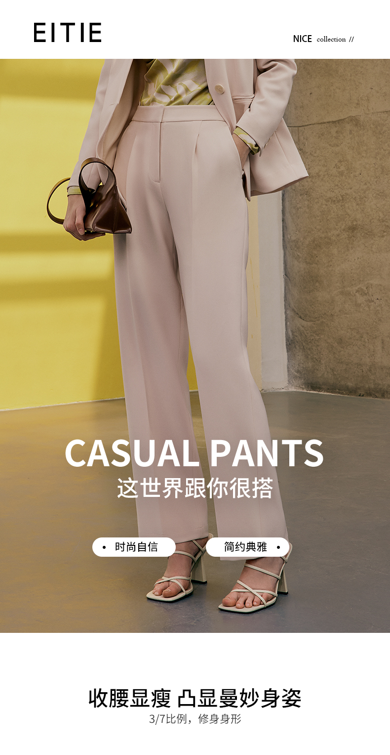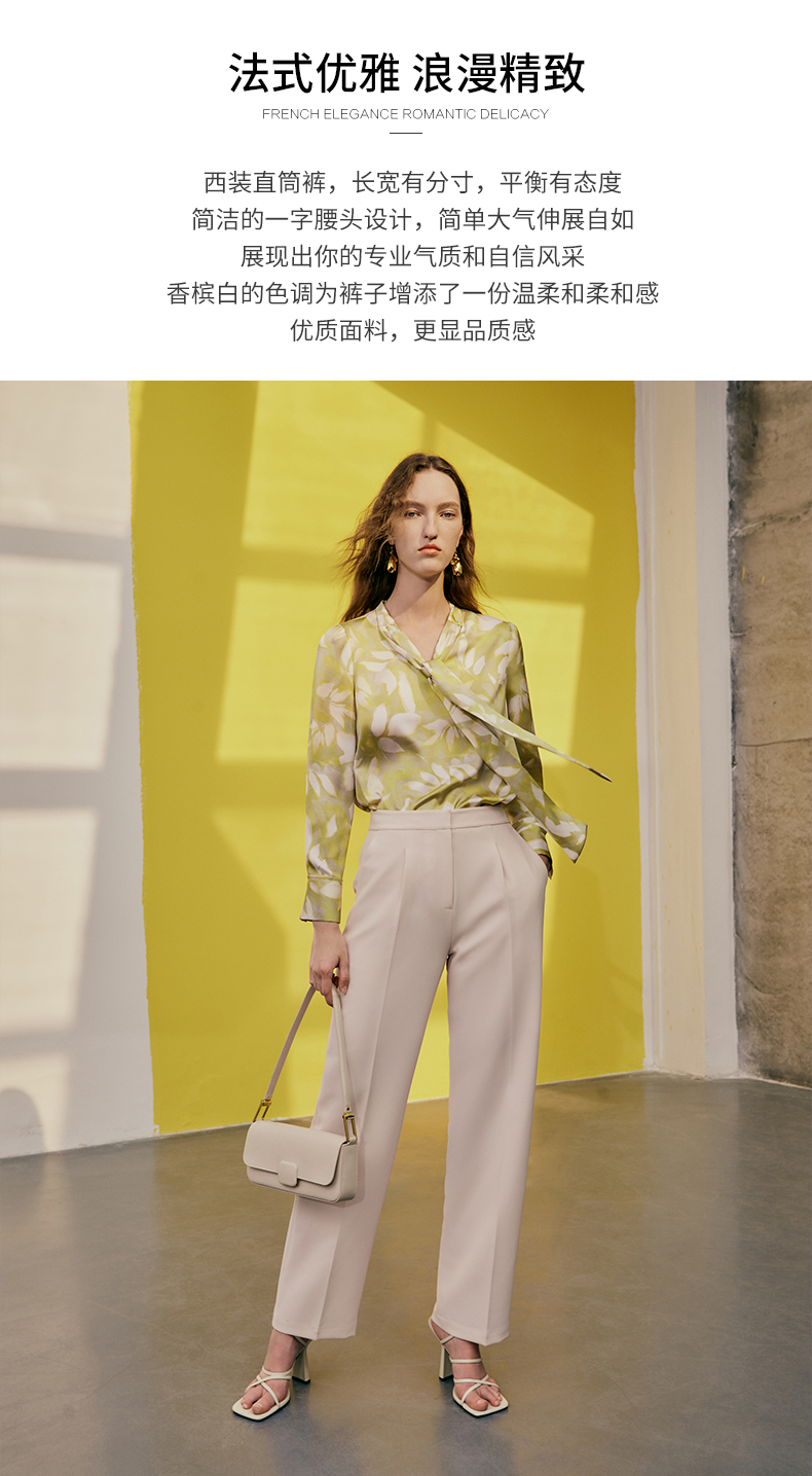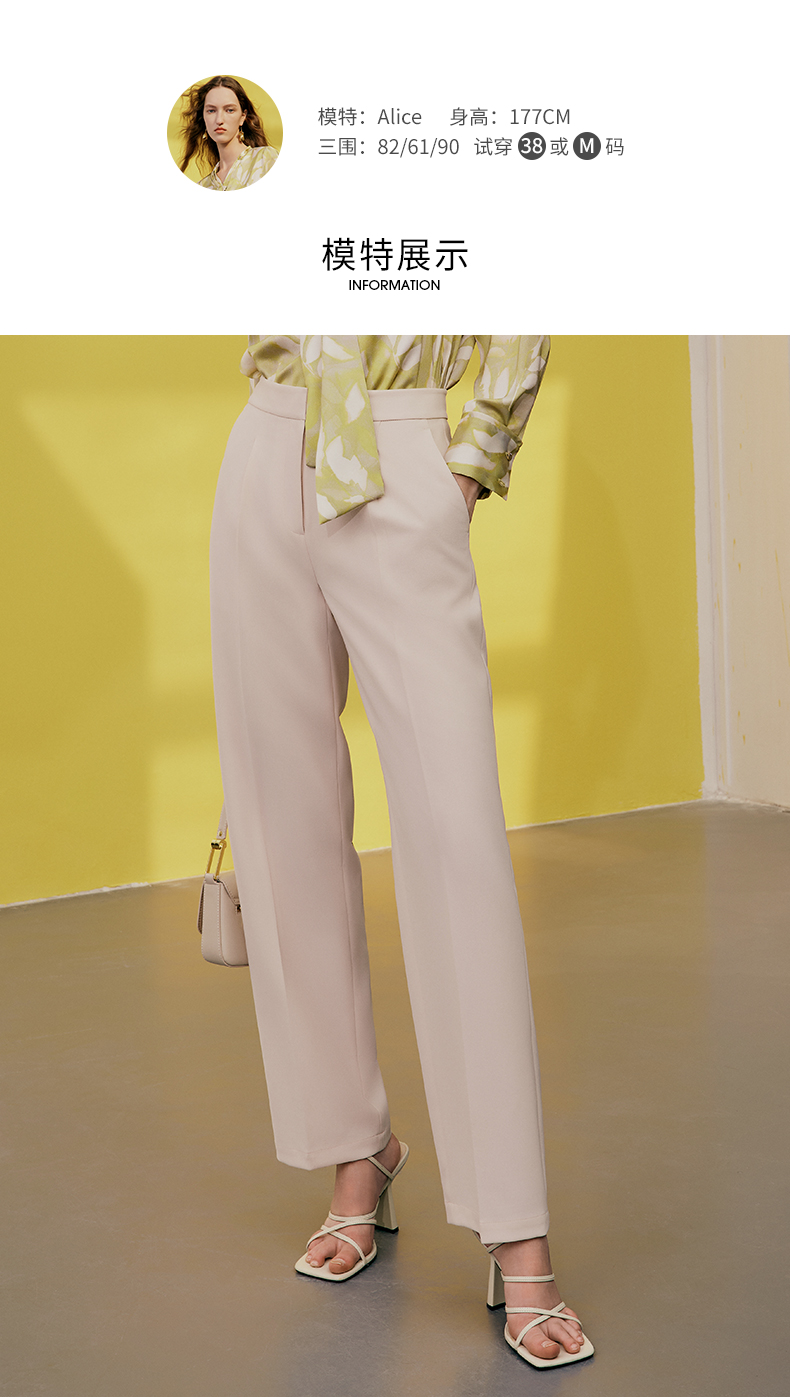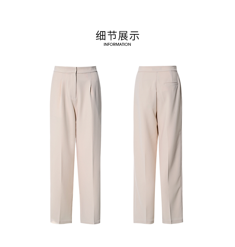 EITIE爱特爱春季新款高腰直筒西装裤舒适通勤纯色百搭裤子7305007