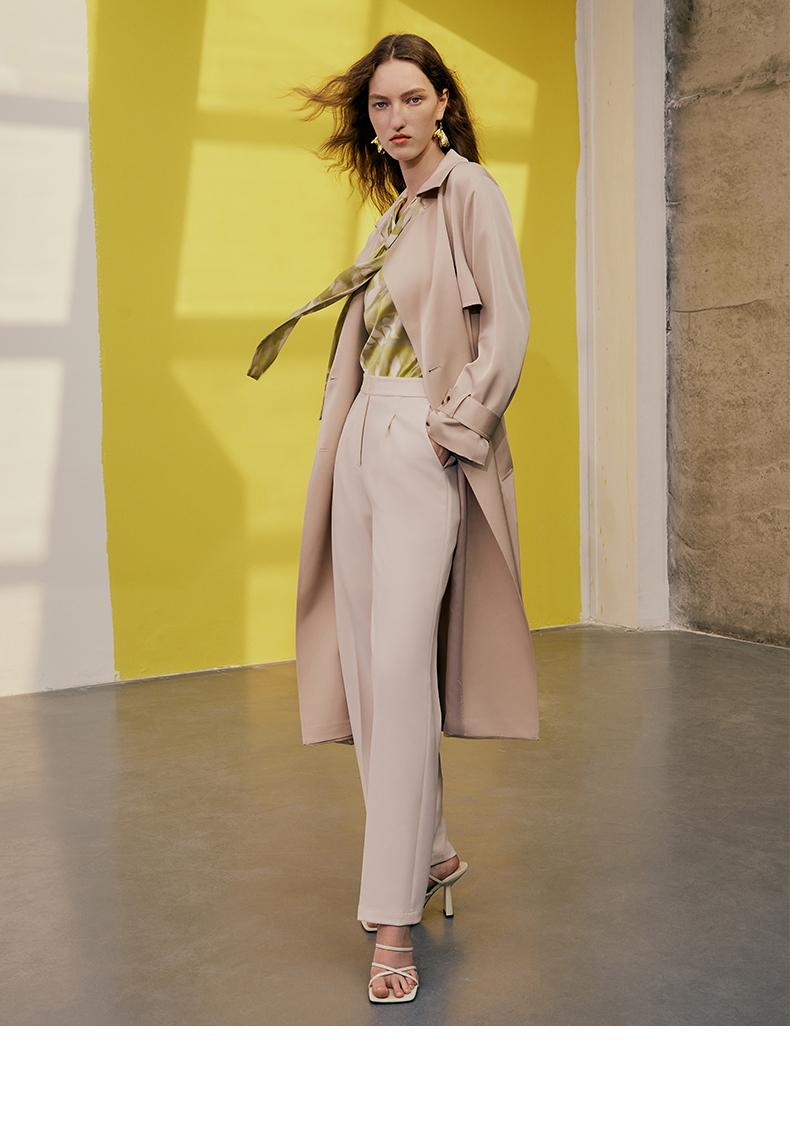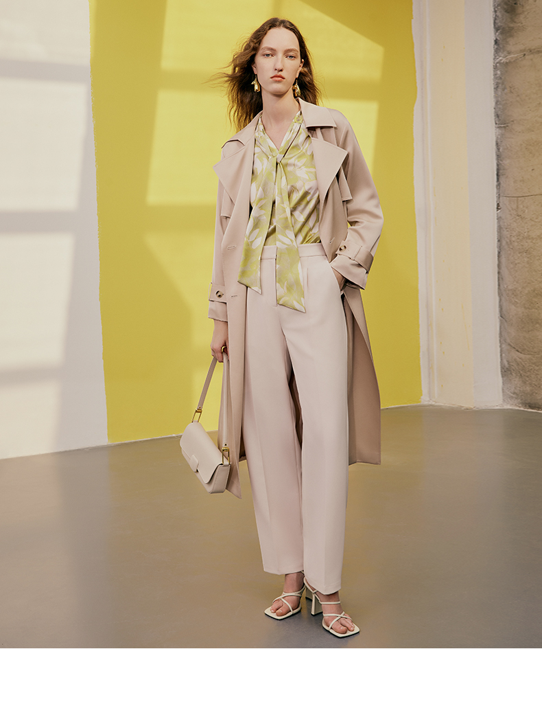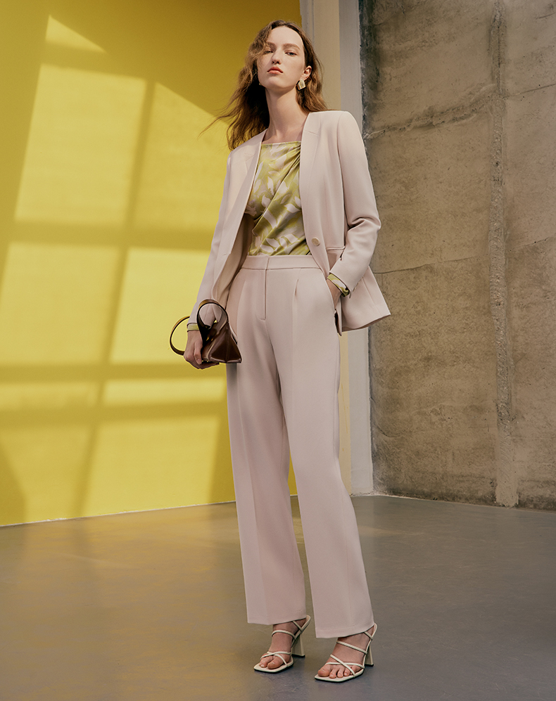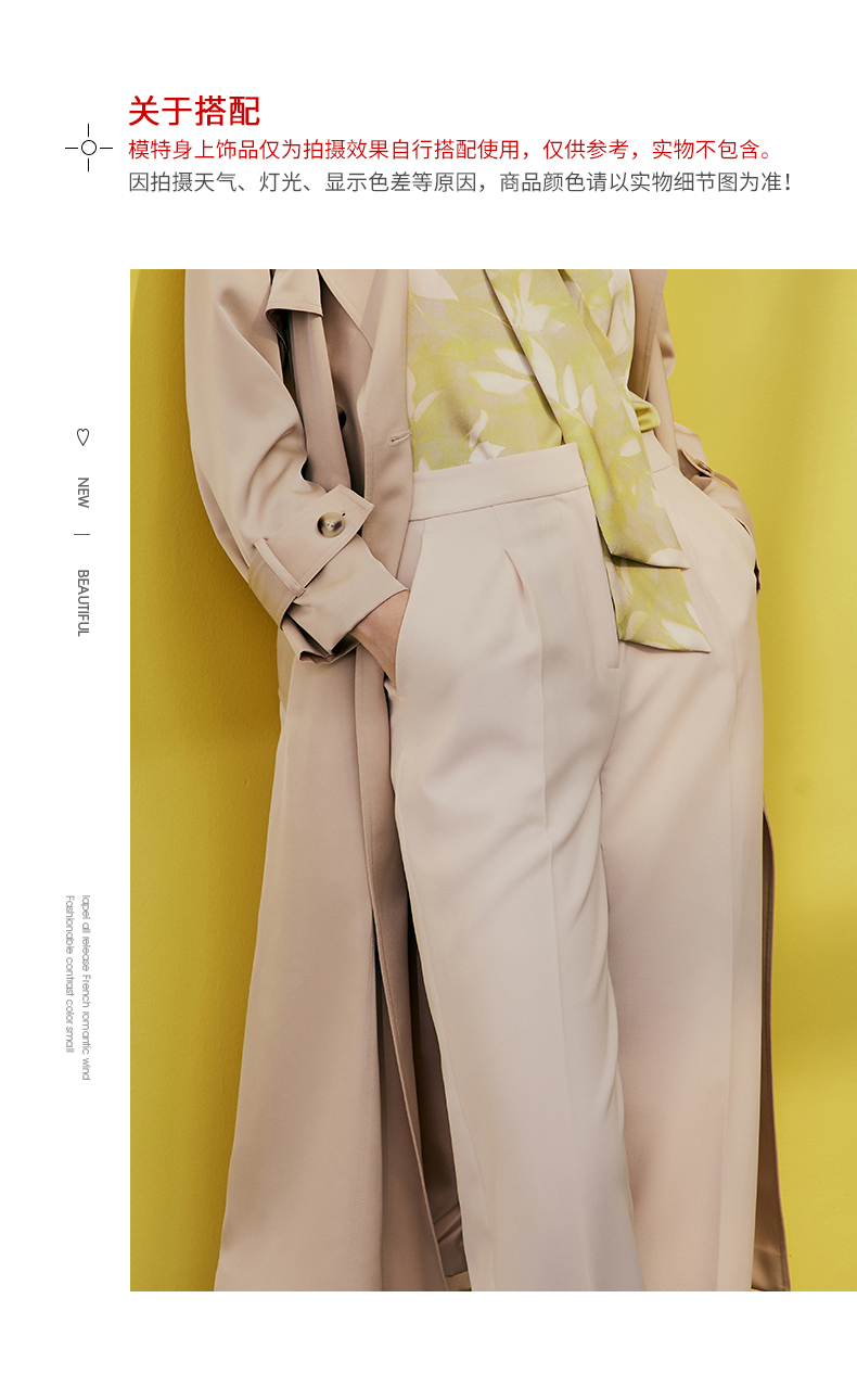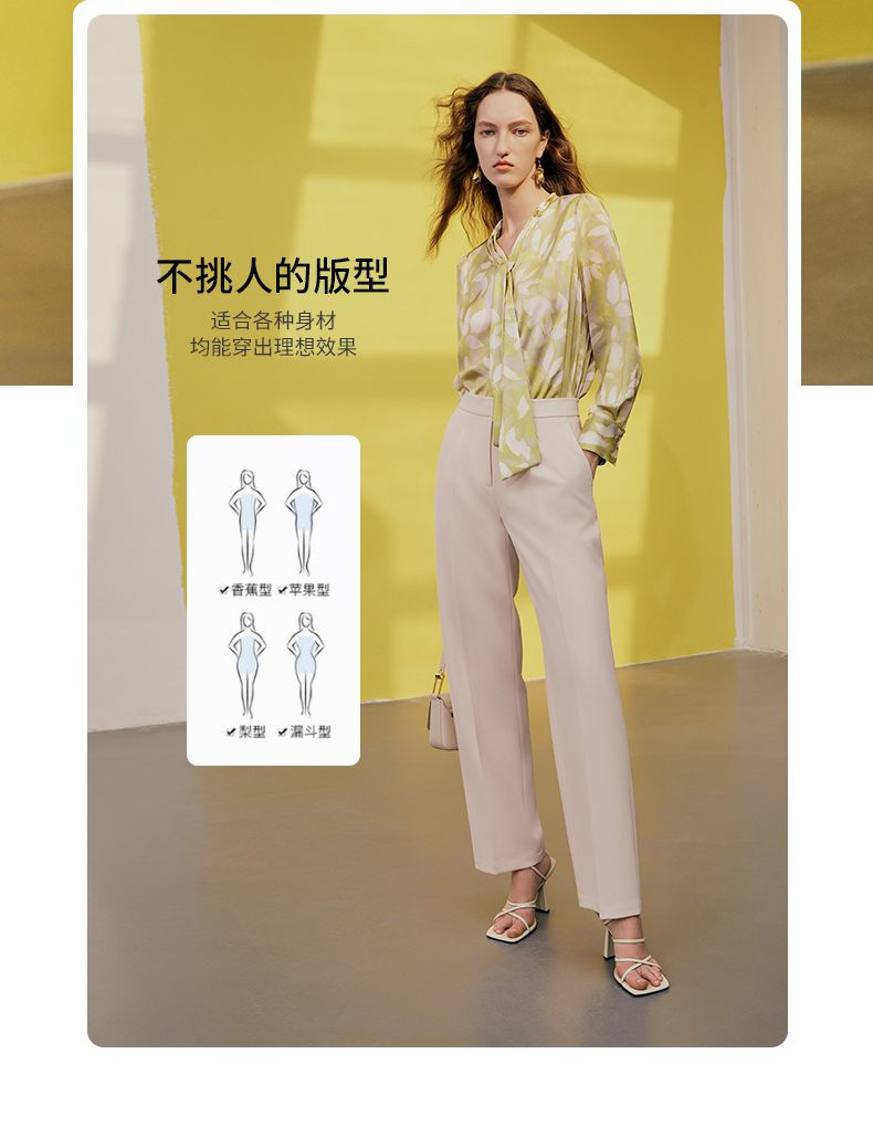 EITIE爱特爱春季新款高腰直筒西装裤舒适通勤纯色百搭裤子7305007