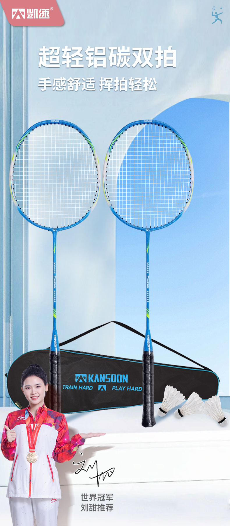 【凯速】铝碳双拍(赠送3只羽毛球+1个球拍包)