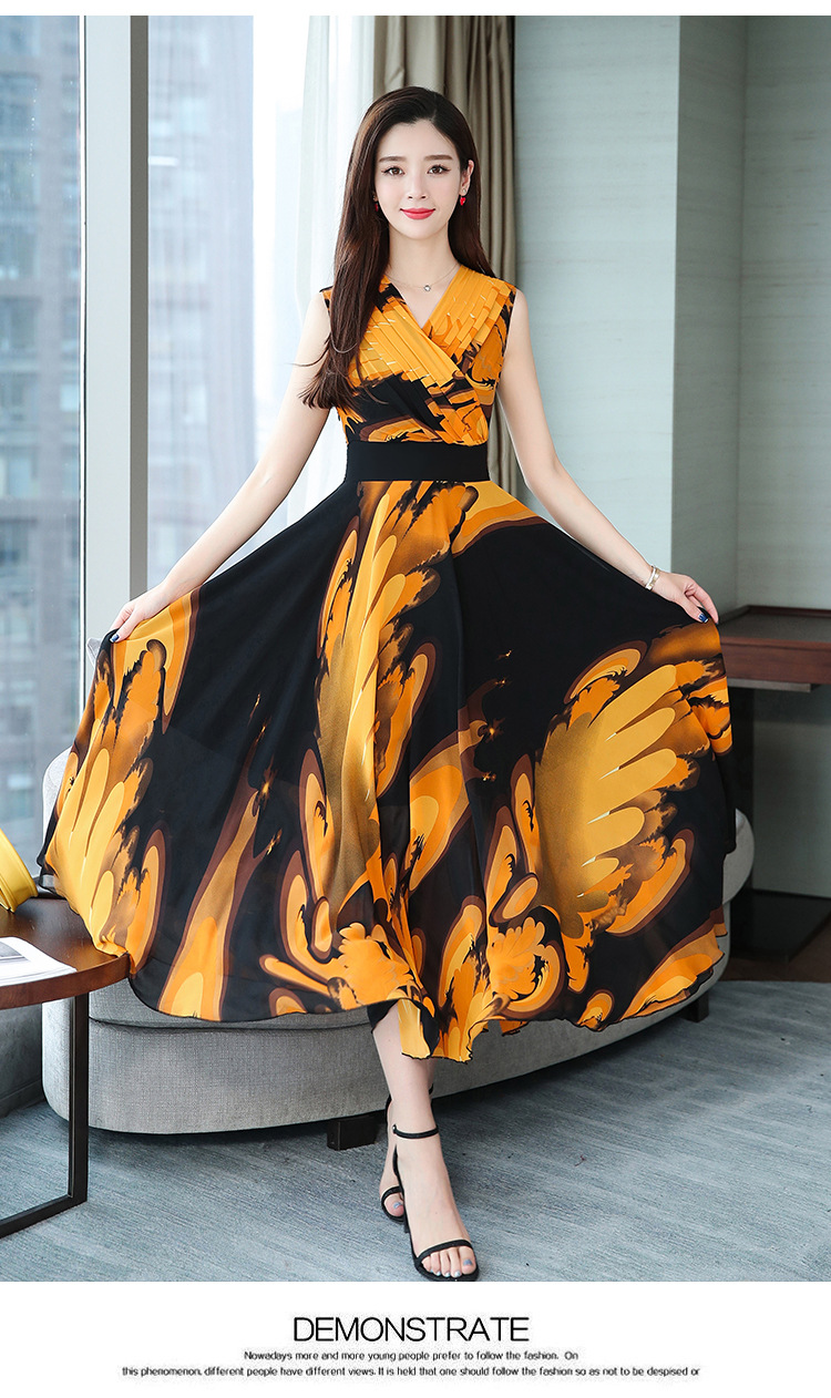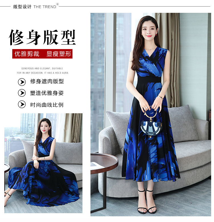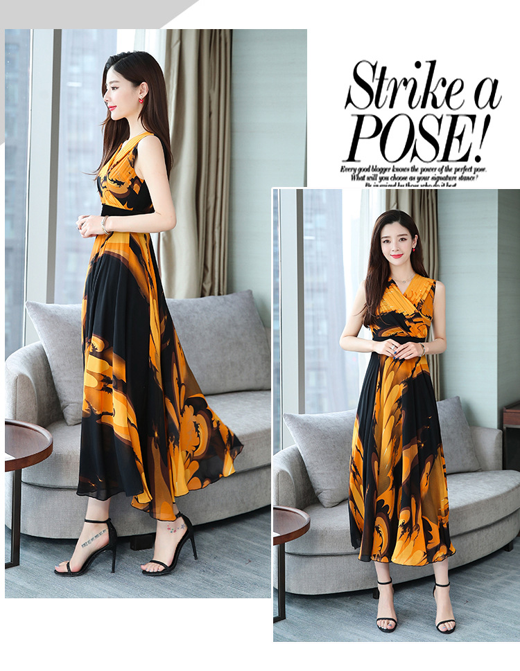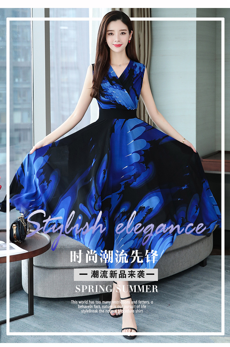 AHM-llgz202夏季长款无袖气质时尚超仙雪纺连衣裙