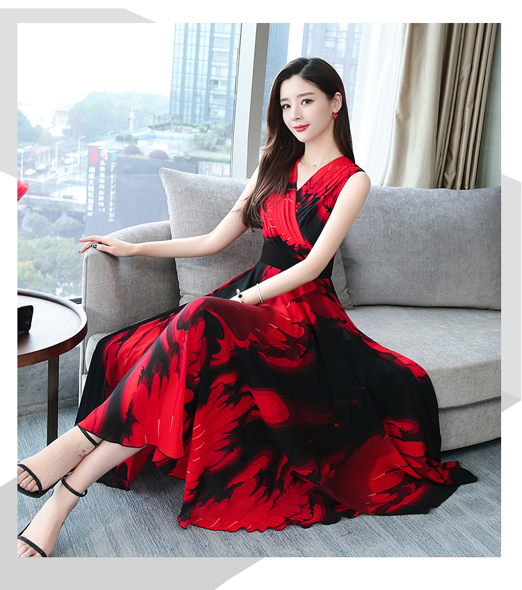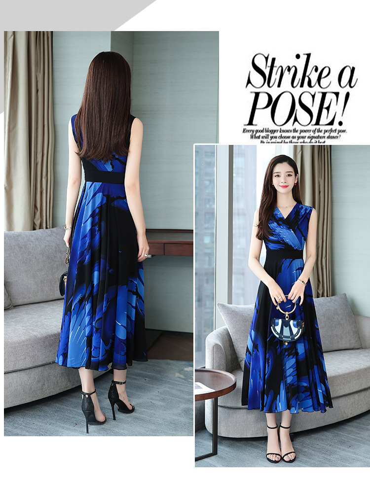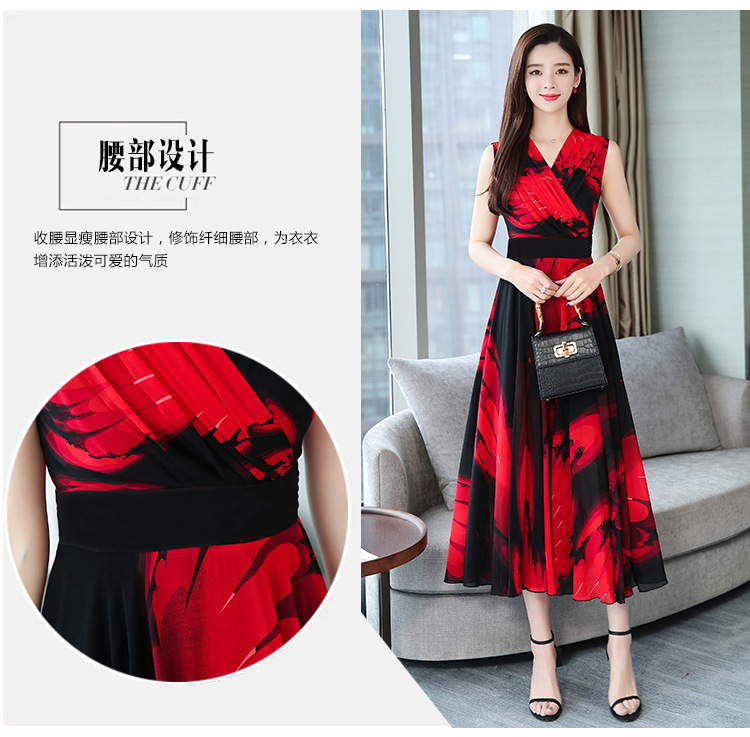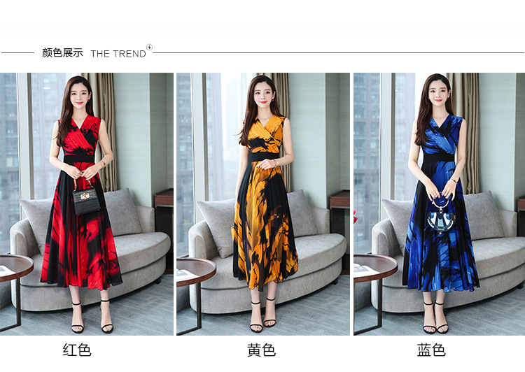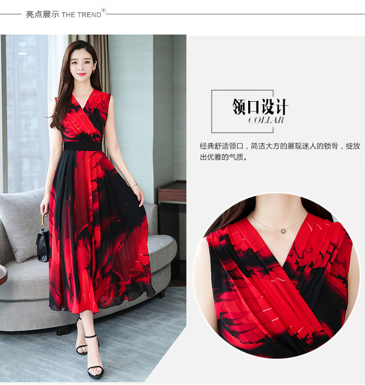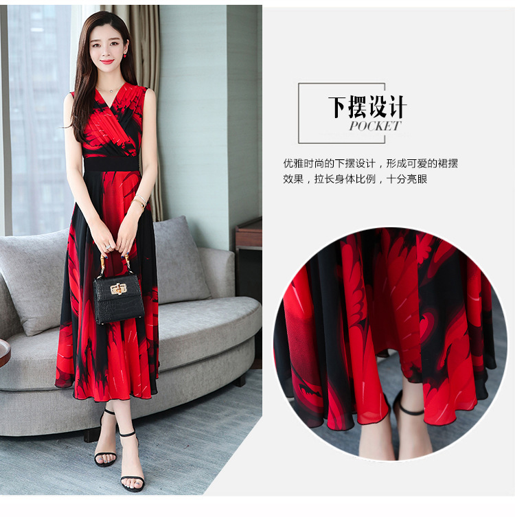 AHM-llgz202夏季长款无袖气质时尚超仙雪纺连衣裙