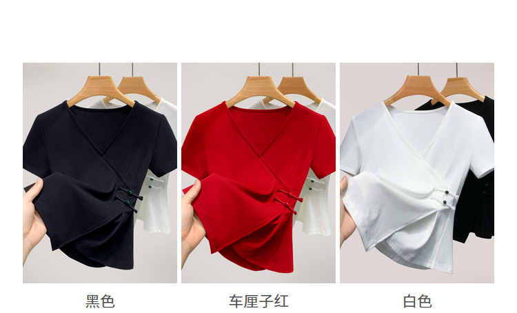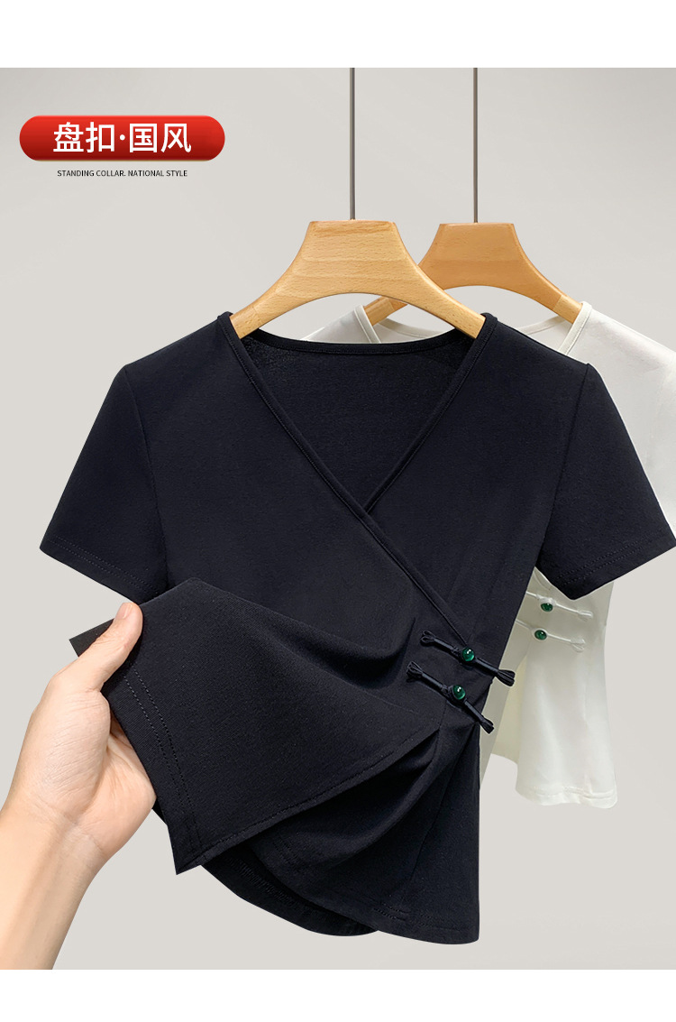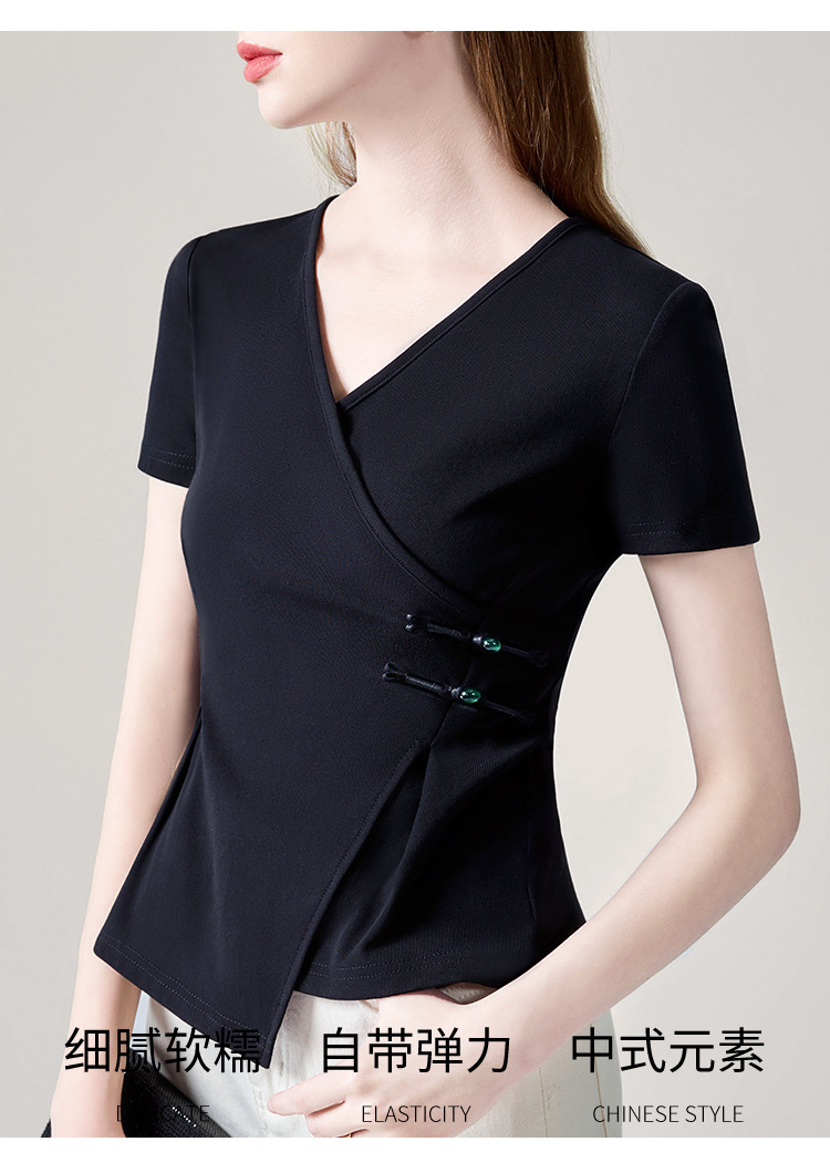 新中式盘扣V领体恤不规则收腰上衣 XY-T4X0638