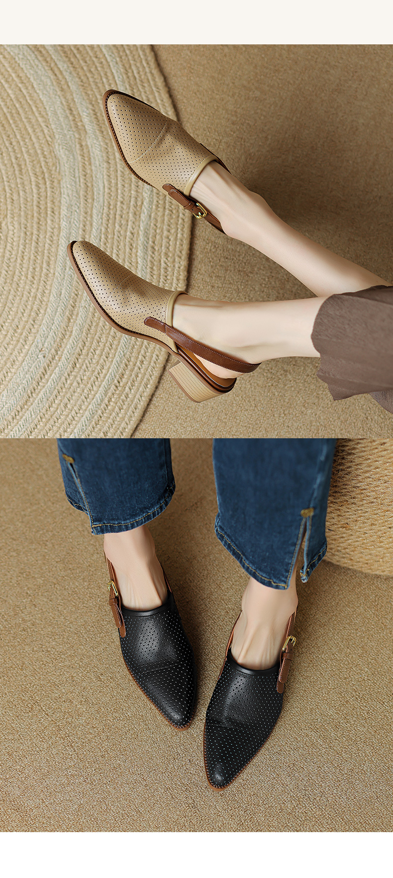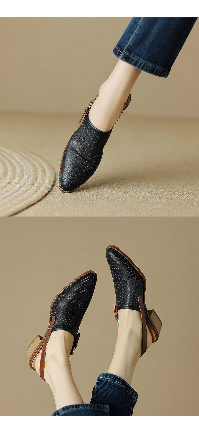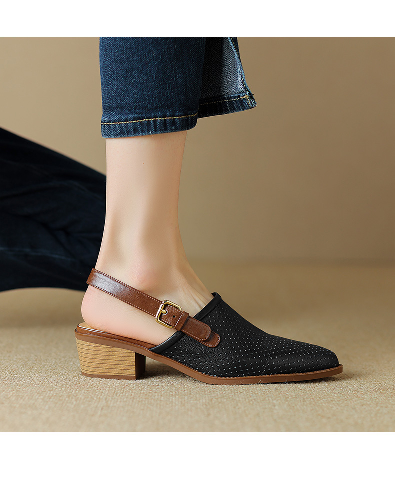 夏季新款,粗跟复古包头凉鞋LD-6344