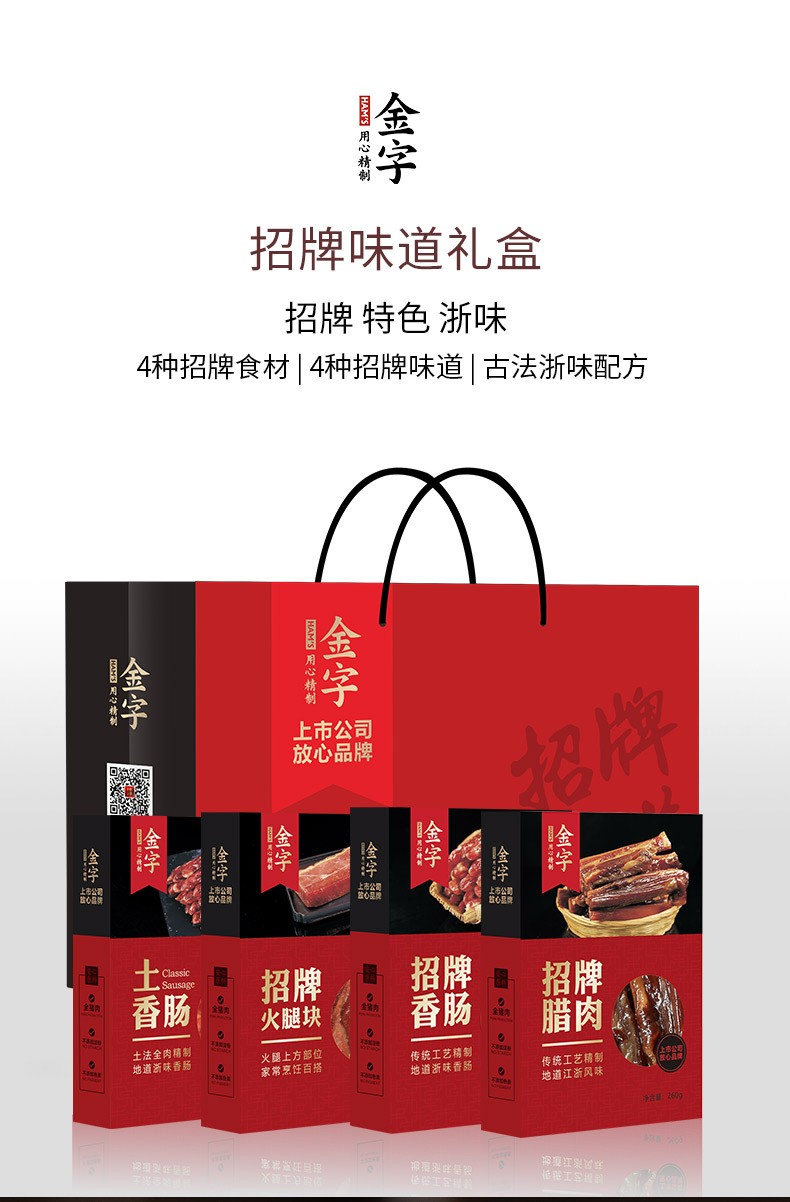 金字 金华特产火腿招牌味道礼品浙江土特产腊味礼盒组合礼包农家美食配礼袋中秋礼盒中秋送礼