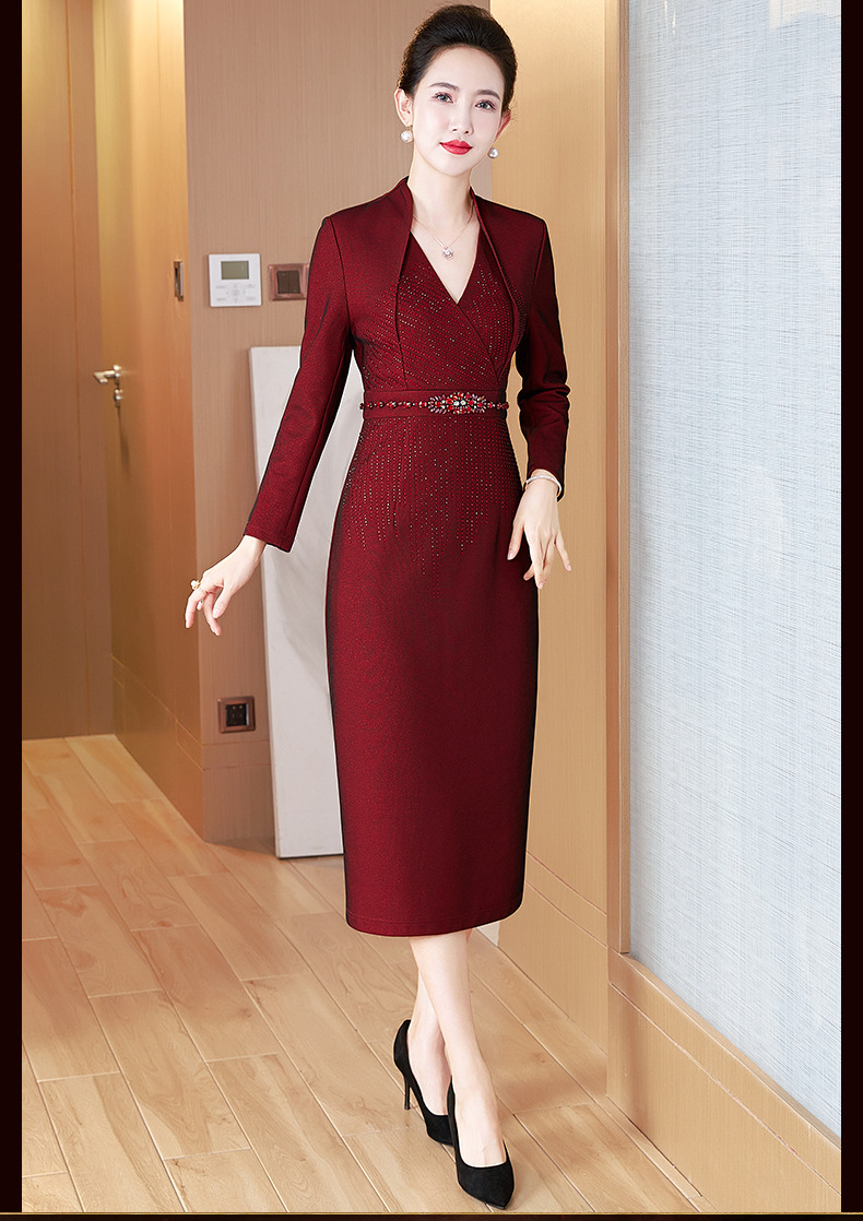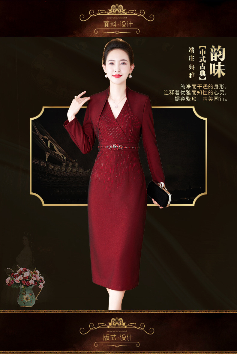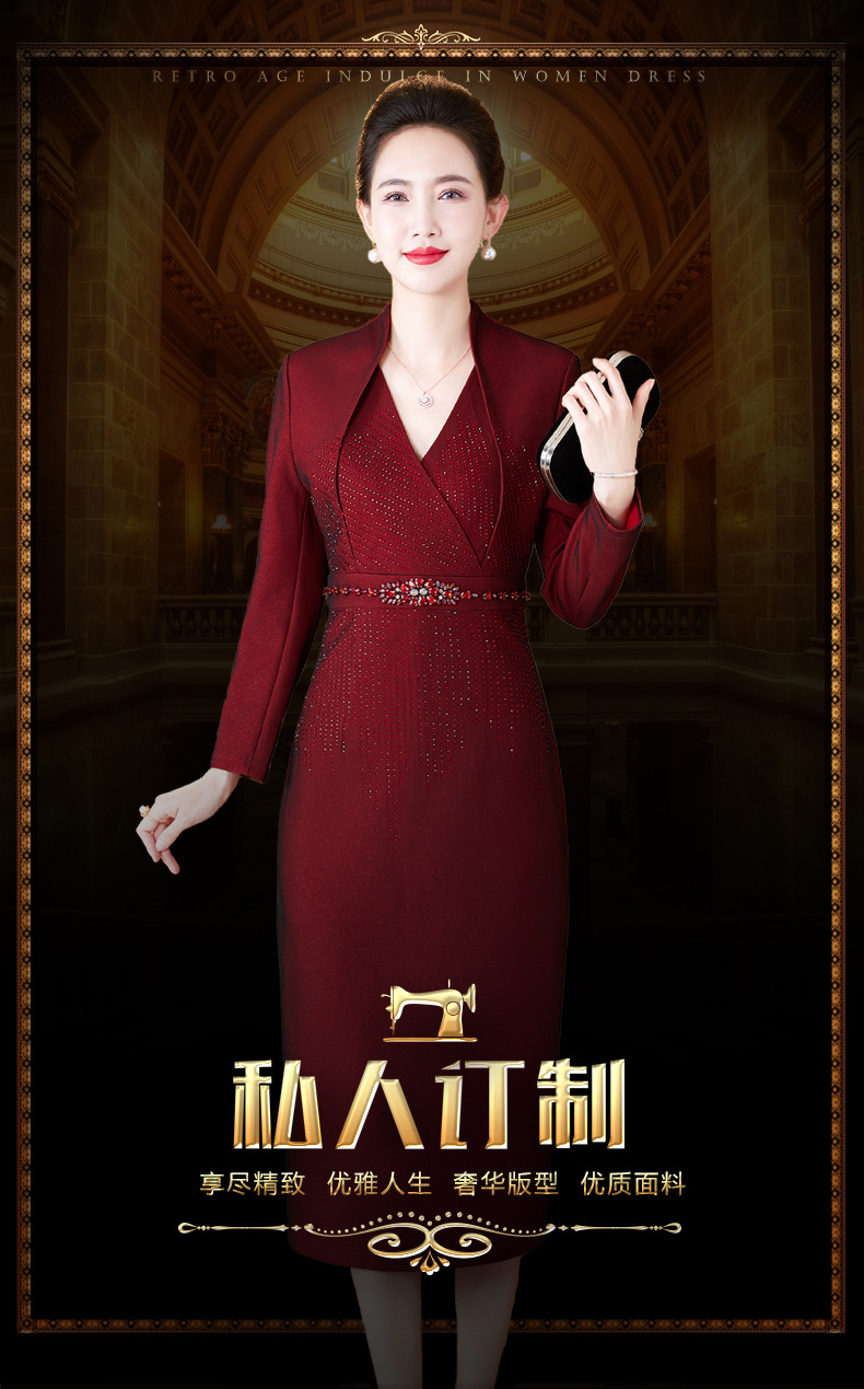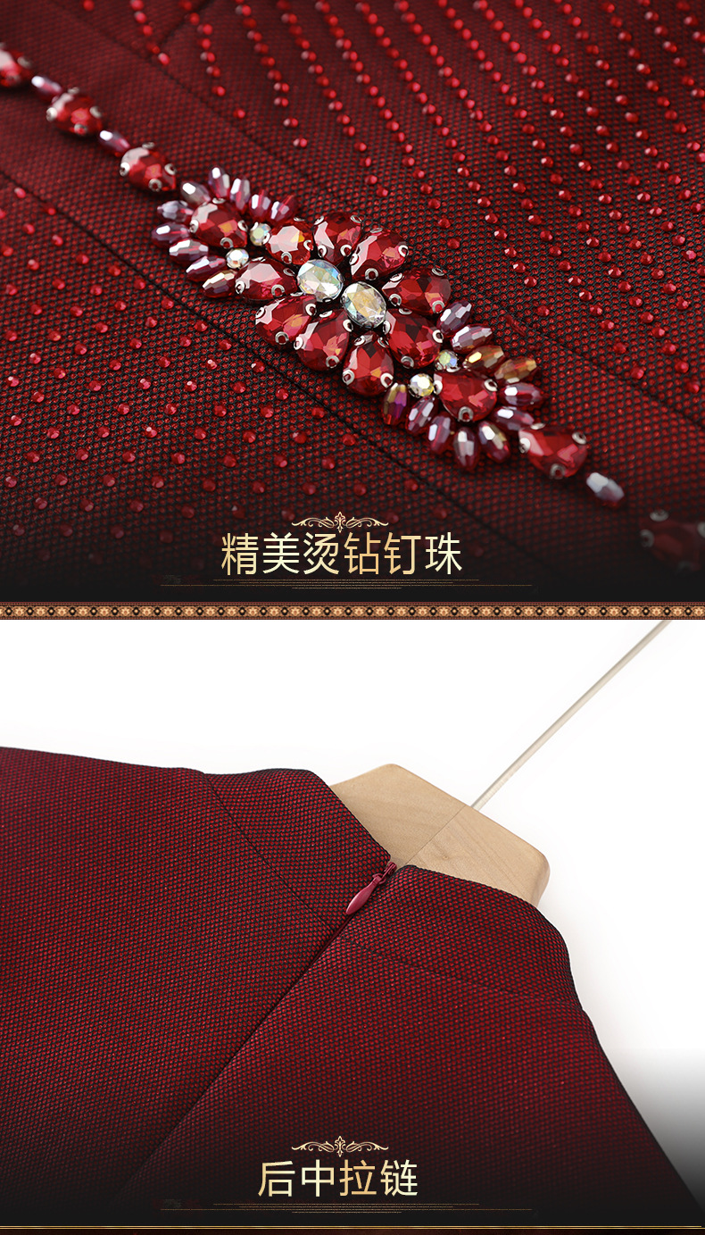 LC-LC2415新款修身显瘦中长款宴会晚礼服裙高档气质儿子结婚礼服旗袍