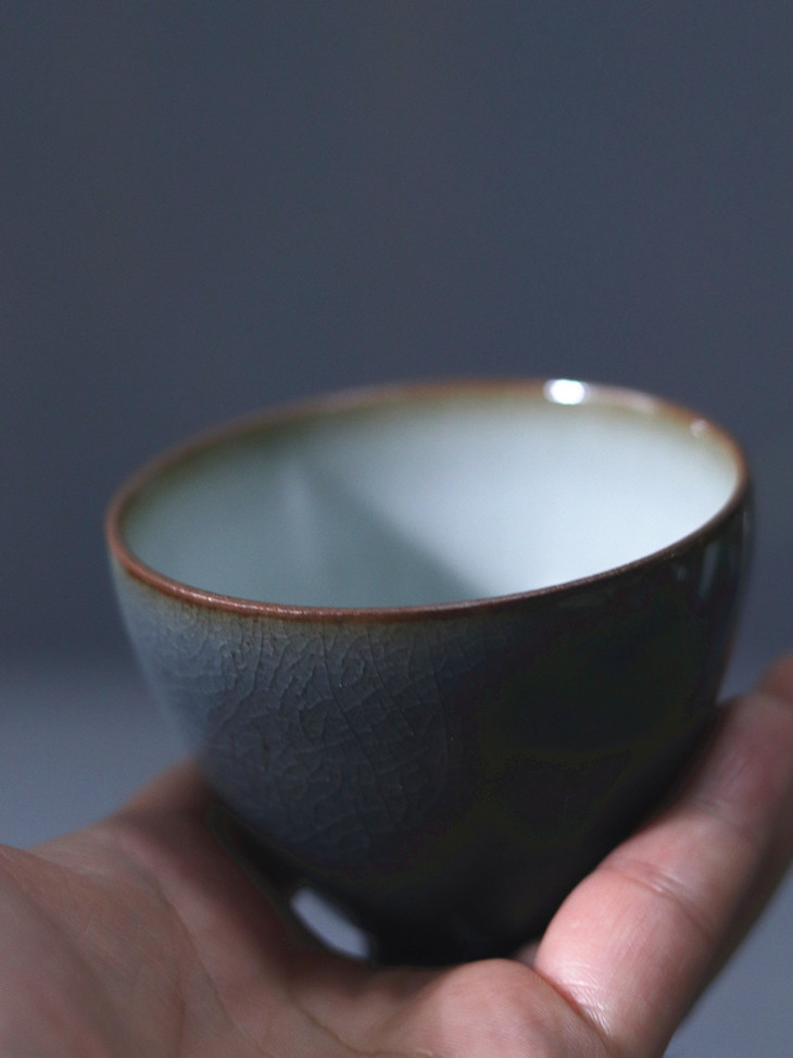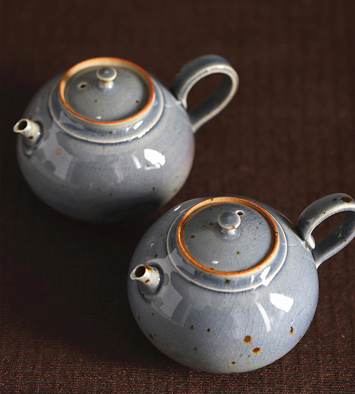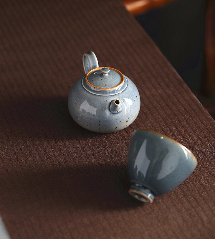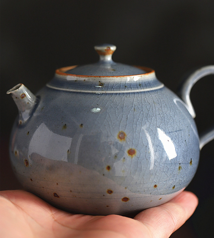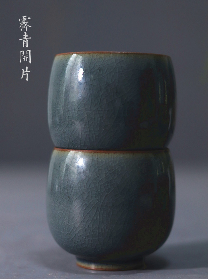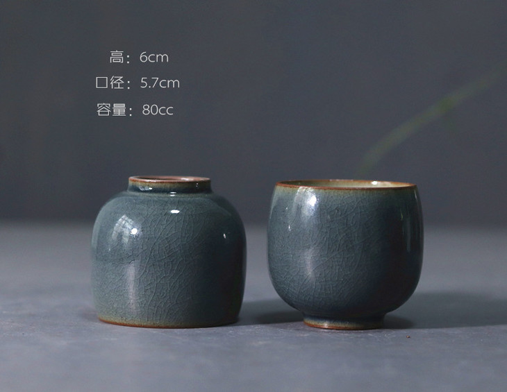 「景德镇纯手工霁青柴烧粗陶茶壶 茶杯」球孔主人壶 个人把玩壶 日式茶壶 霁青开片品茗杯 主人杯