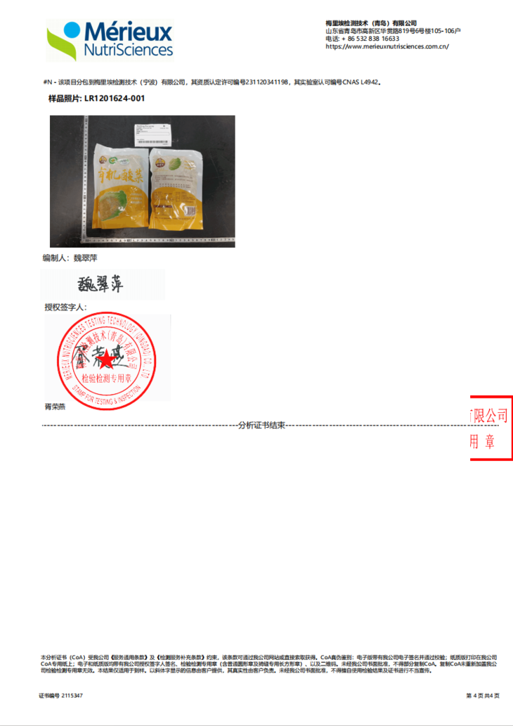 酸菜从2022年开始做有机认证,到今年已经是第二个年头了。