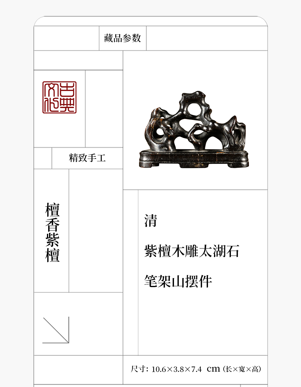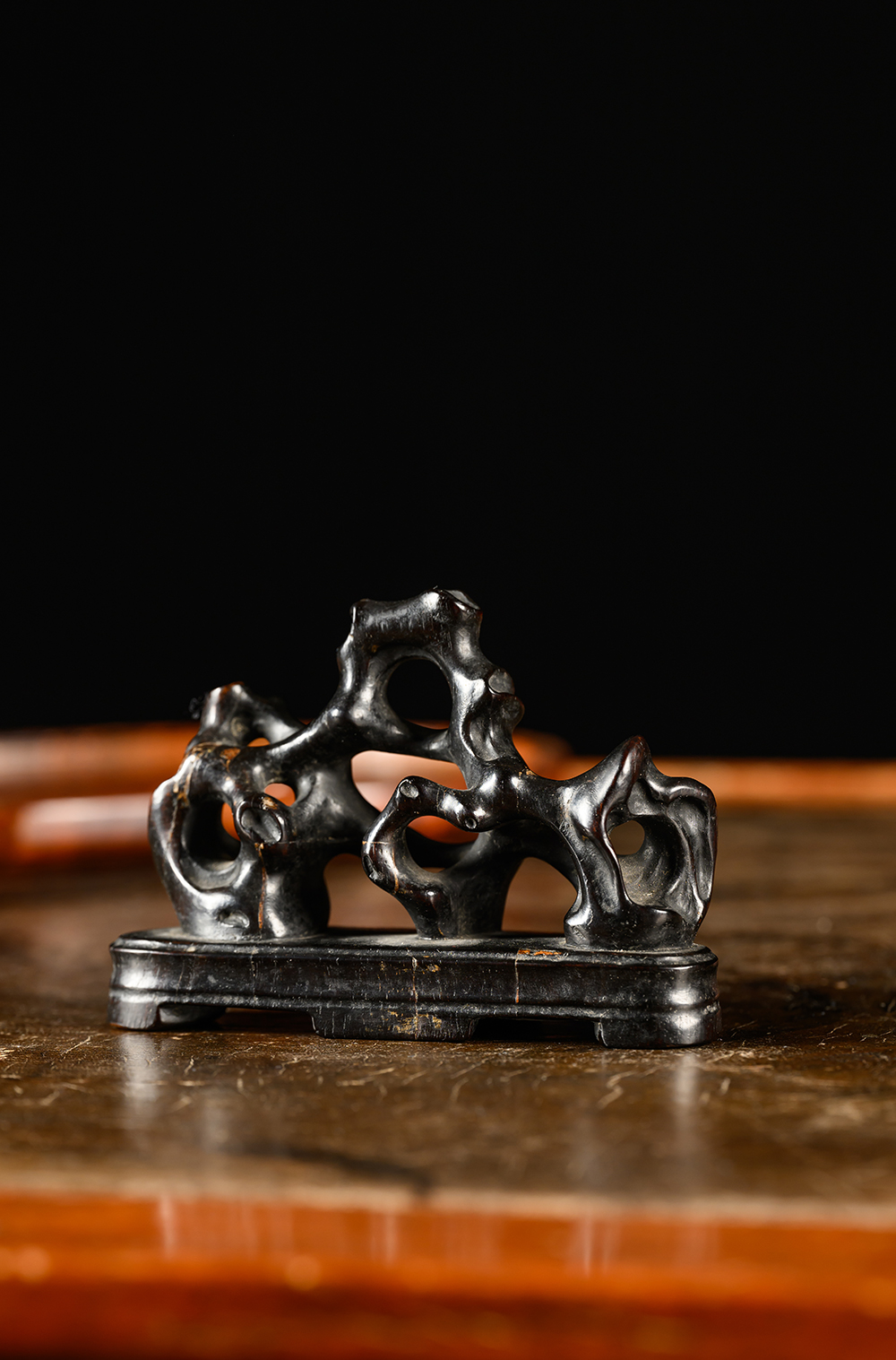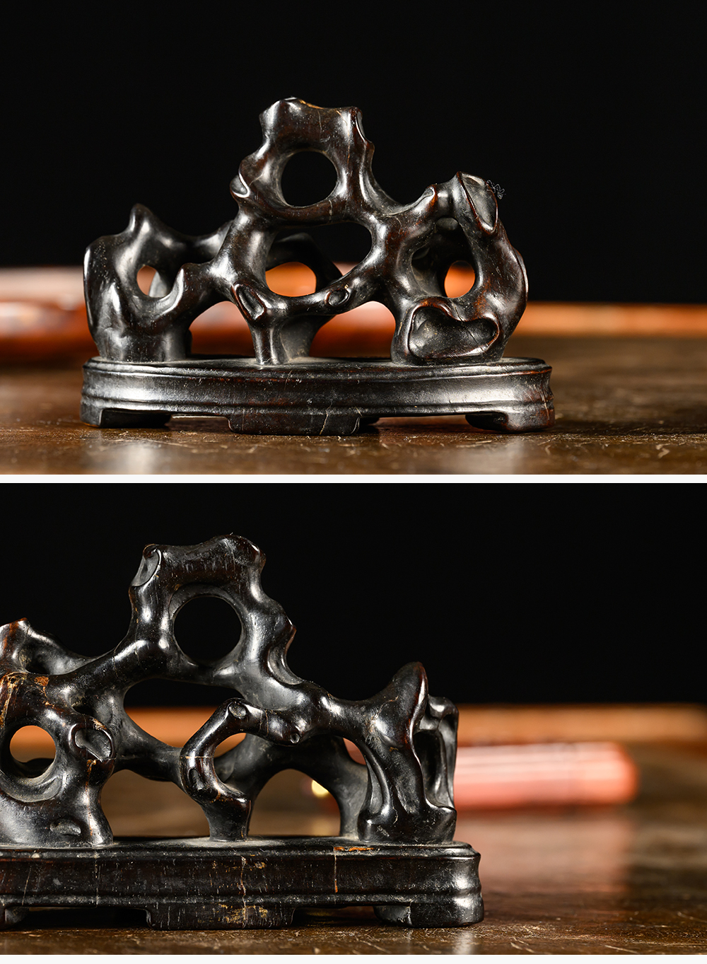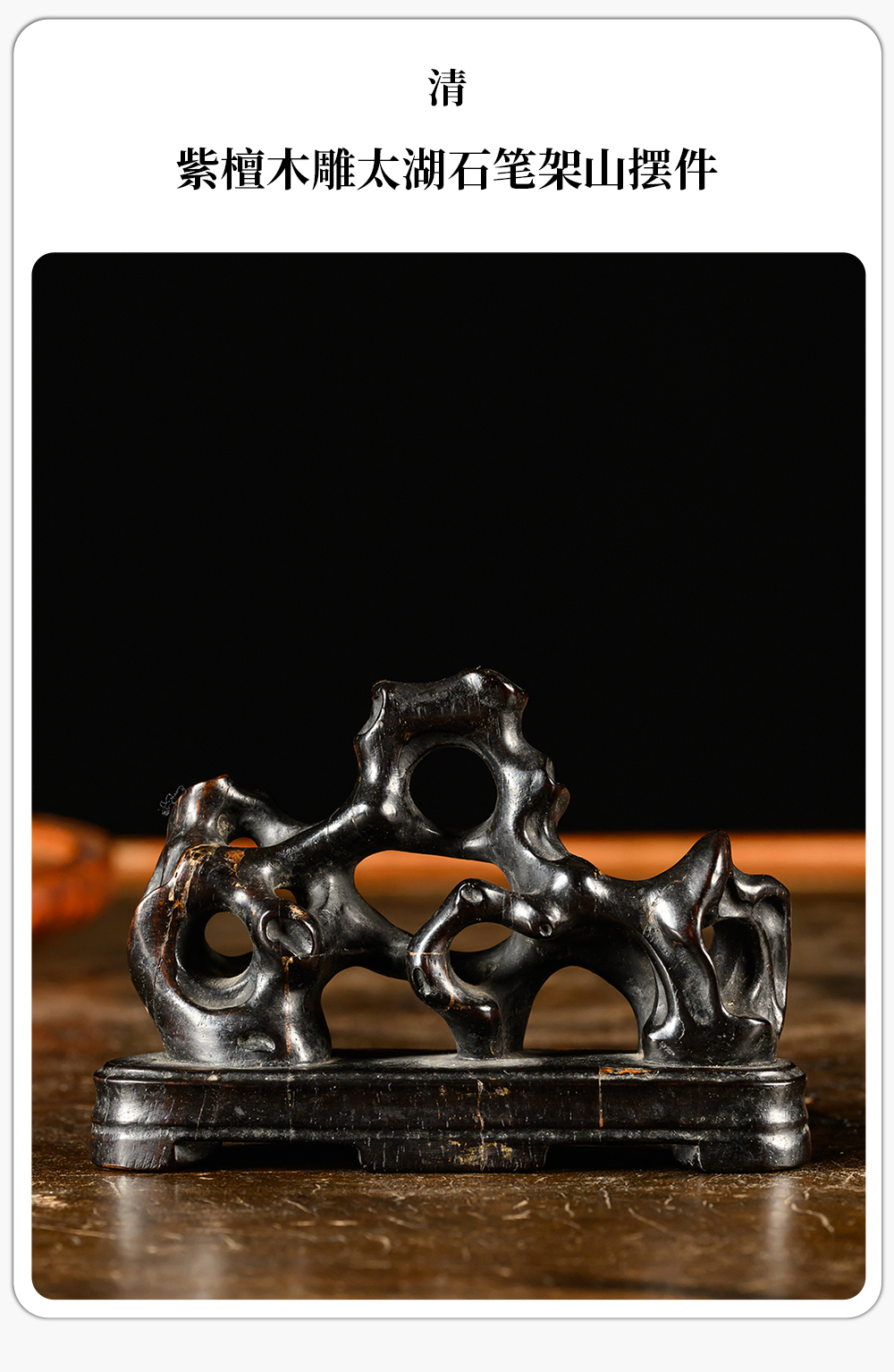 清 紫檀木雕太湖石笔架山摆件