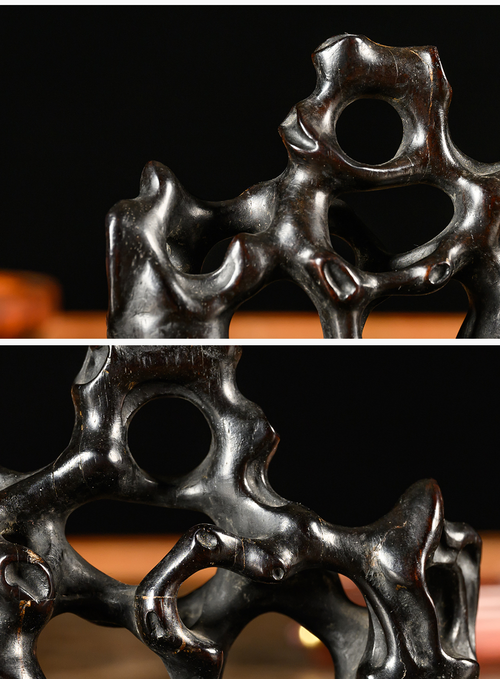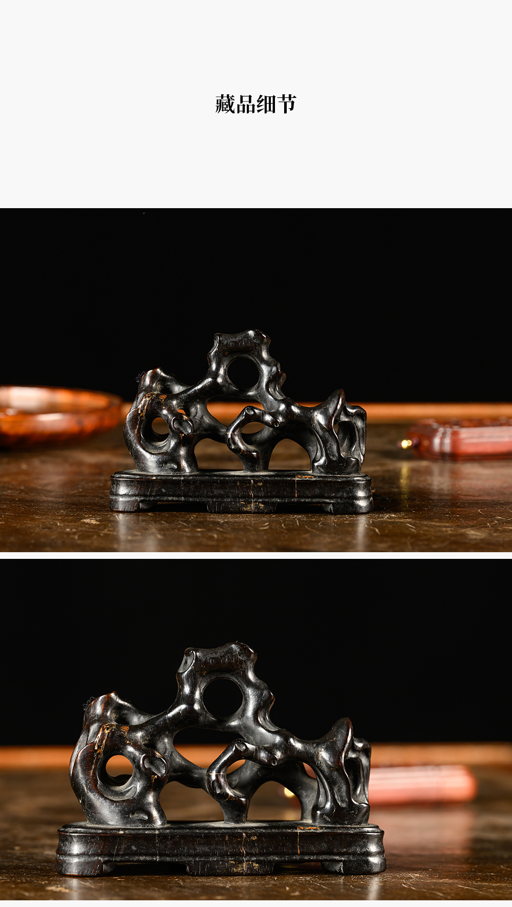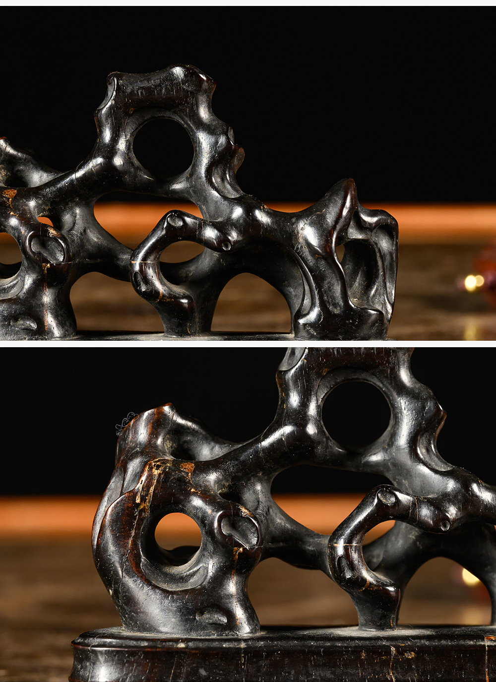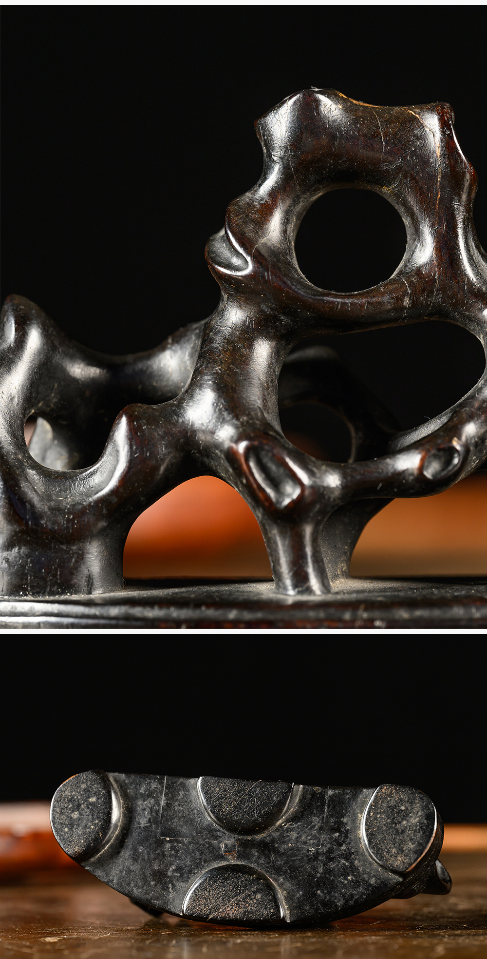 清 紫檀木雕太湖石笔架山摆件