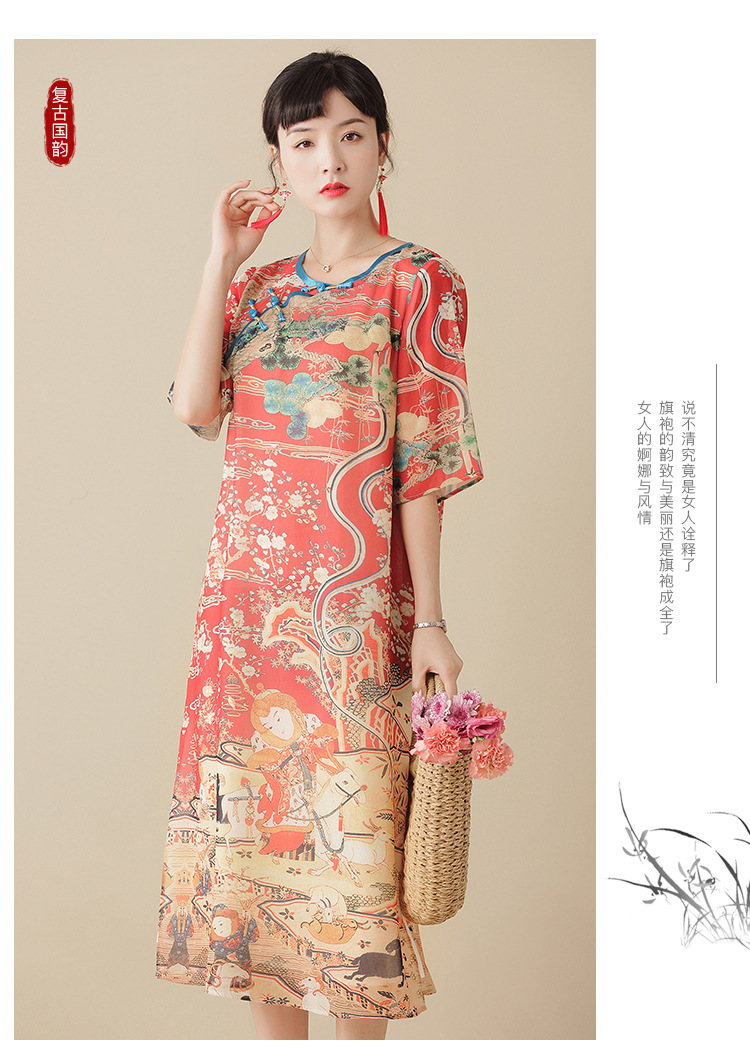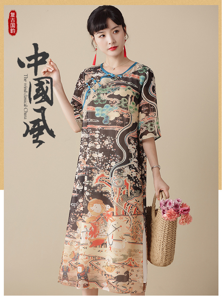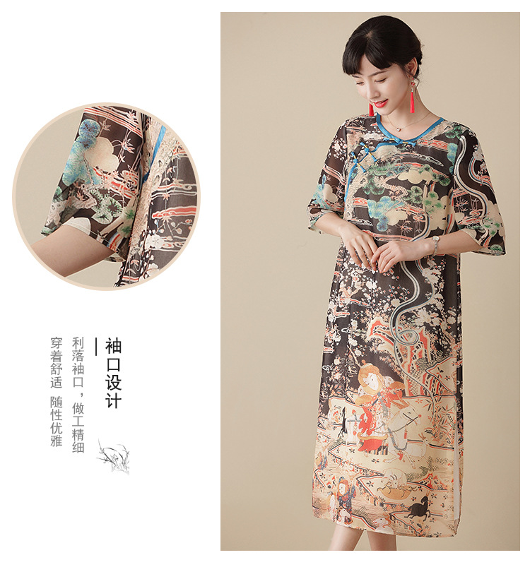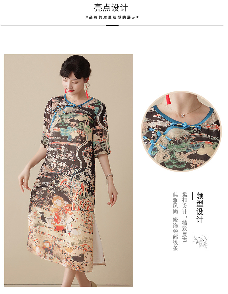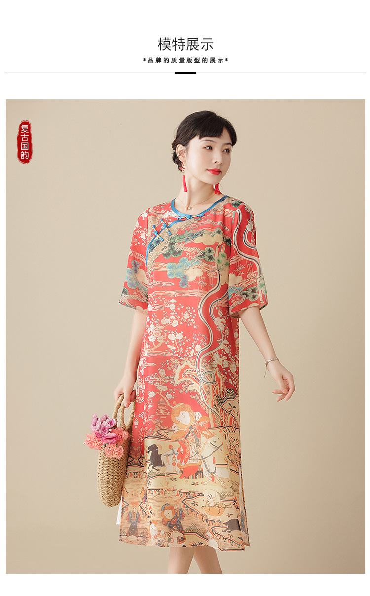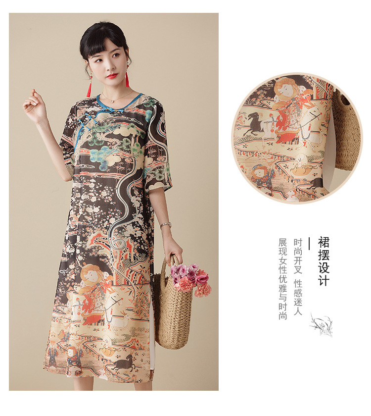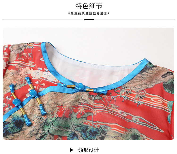 上海旗袍厂AYK-QF-210227印象田园印花时尚改良圆领旗袍裙2021夏季长款宽松复古连衣裙