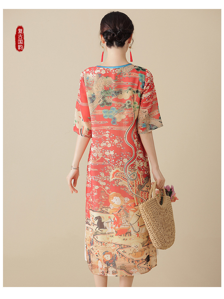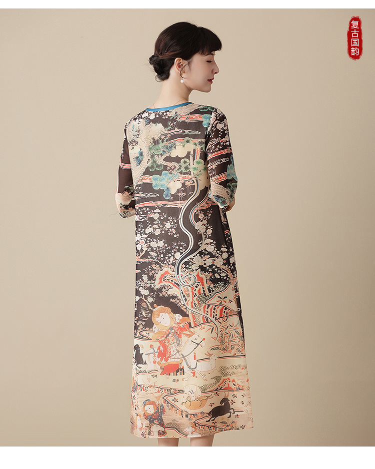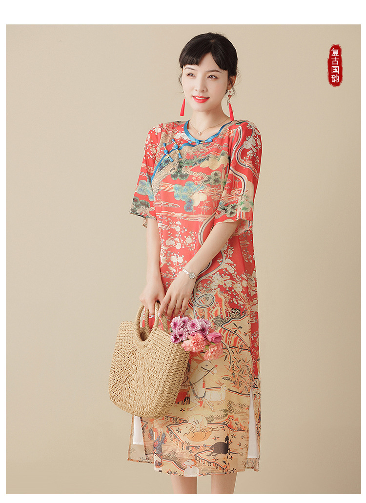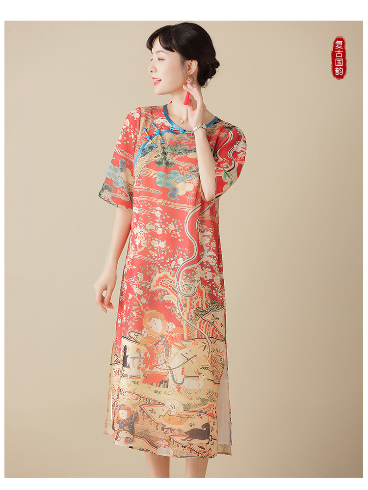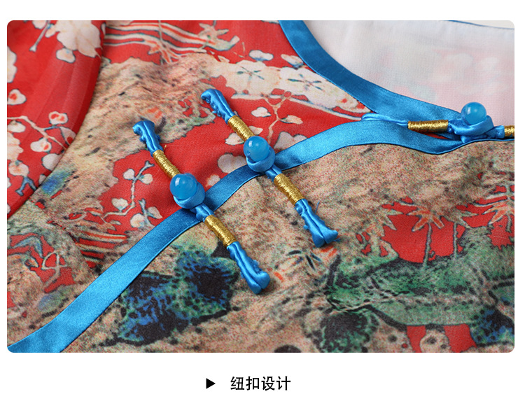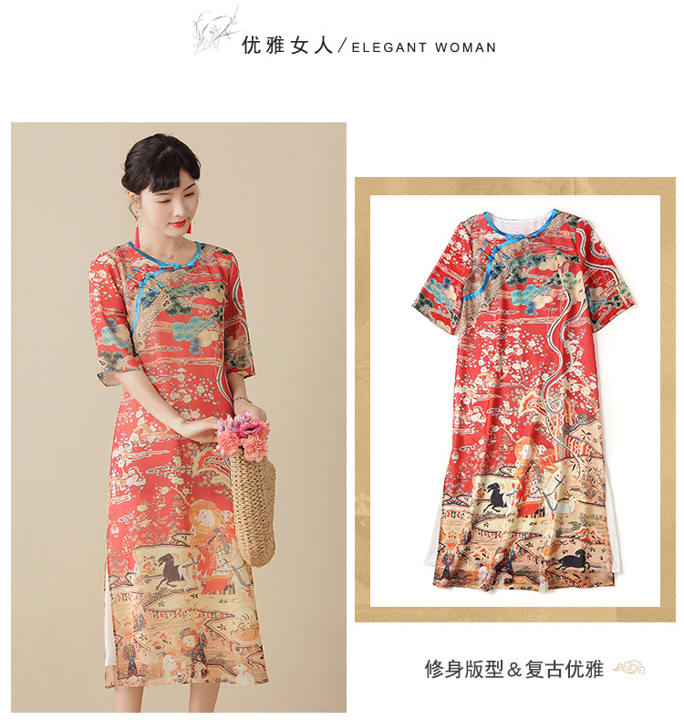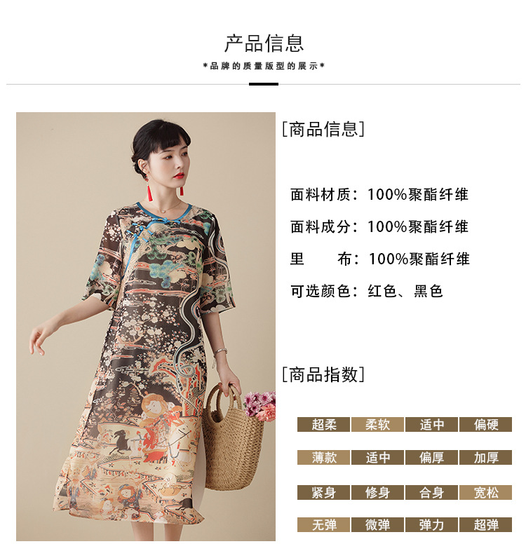上海旗袍厂AYK-QF-210227印象田园印花时尚改良圆领旗袍裙2021夏季长款宽松复古连衣裙