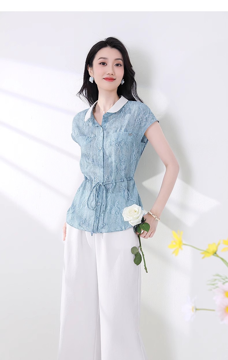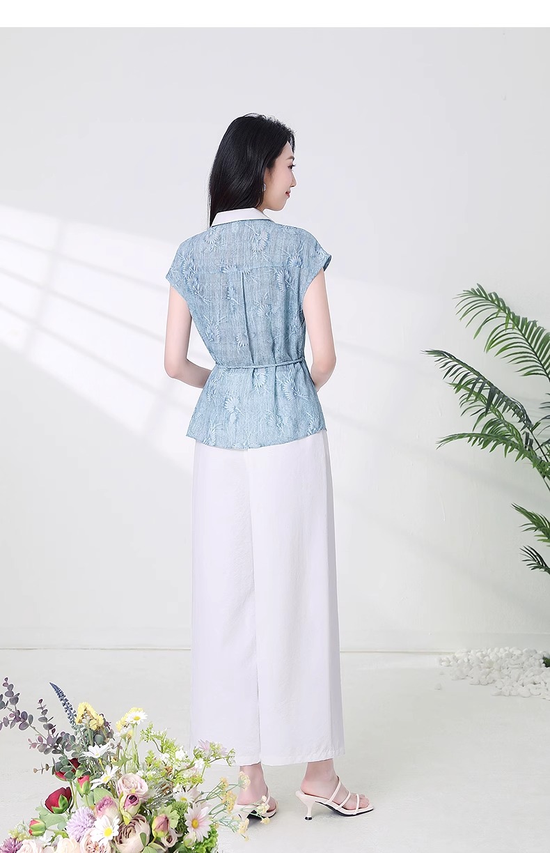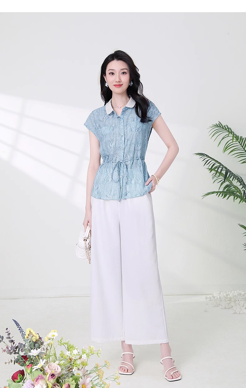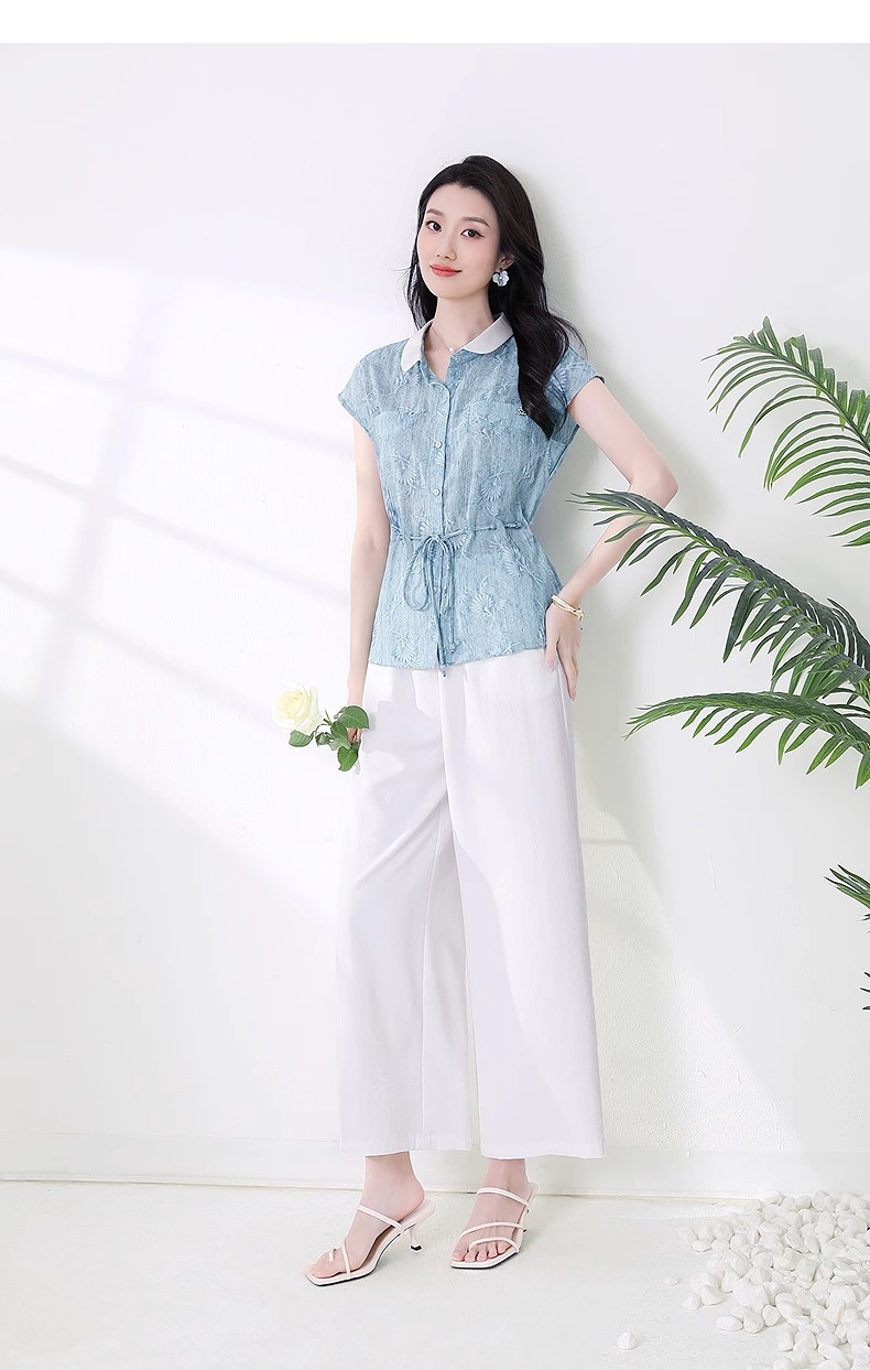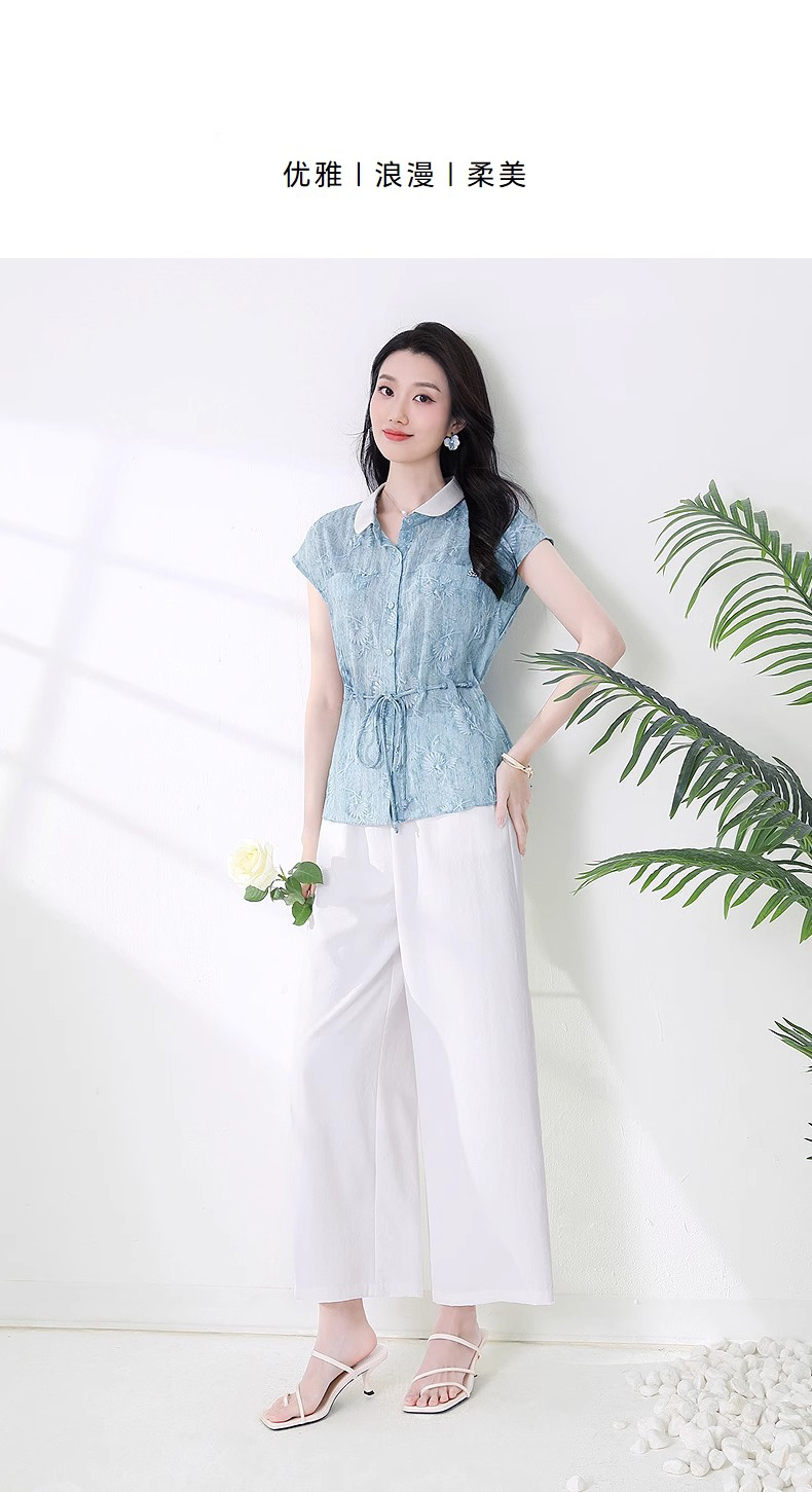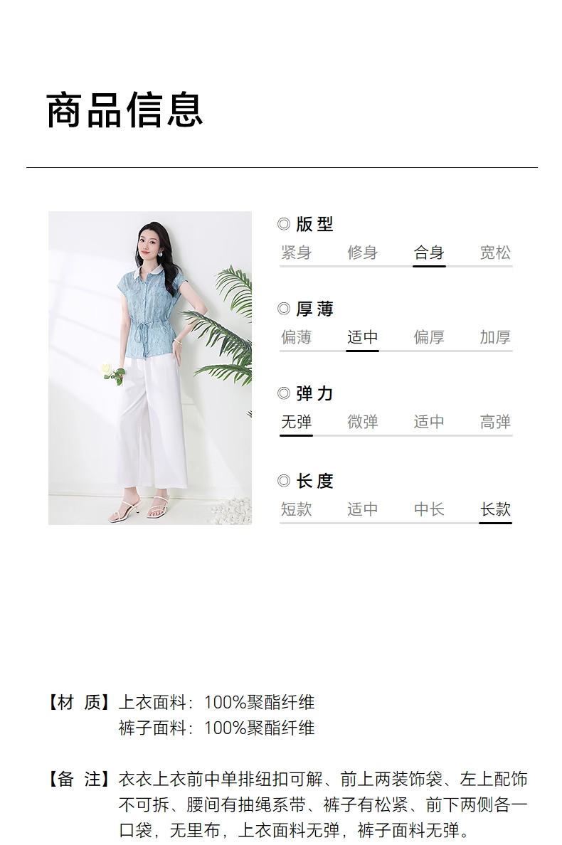 全新升级【铂金会员257/天猫339/差价82】(99203)时尚减龄套装女2025新款夏季收腰提花衬衫阔腿裤两件套女