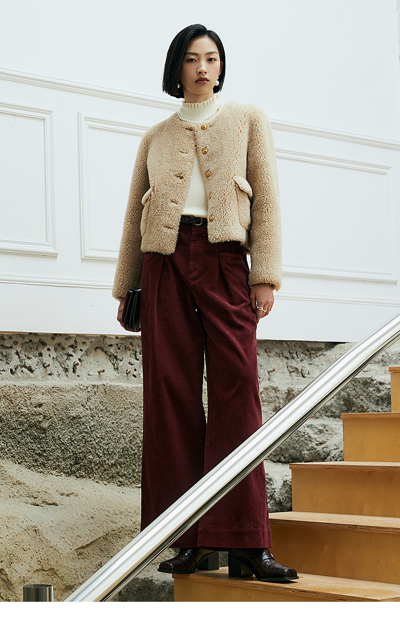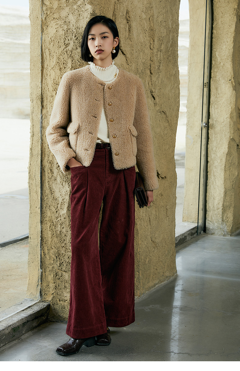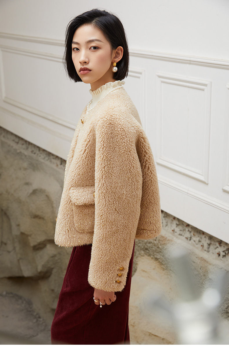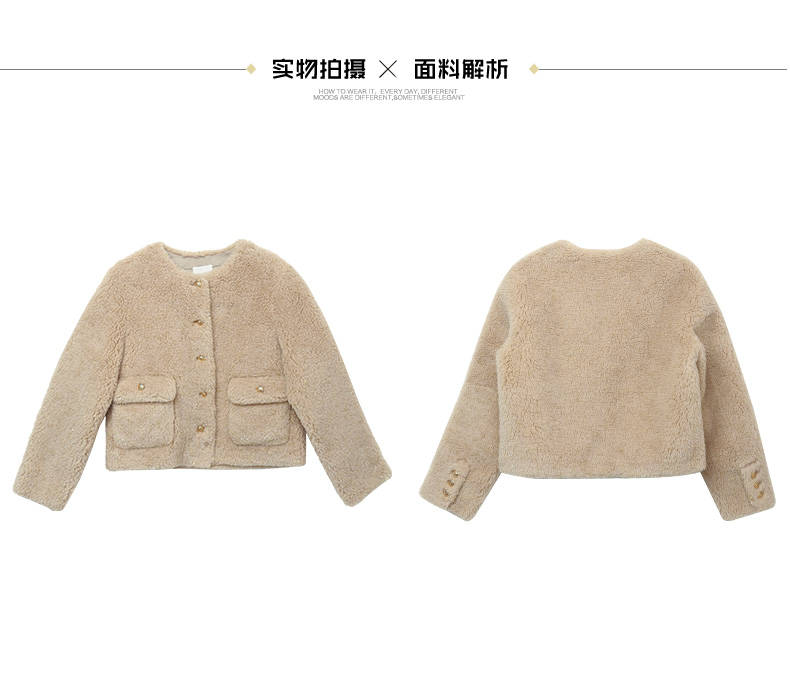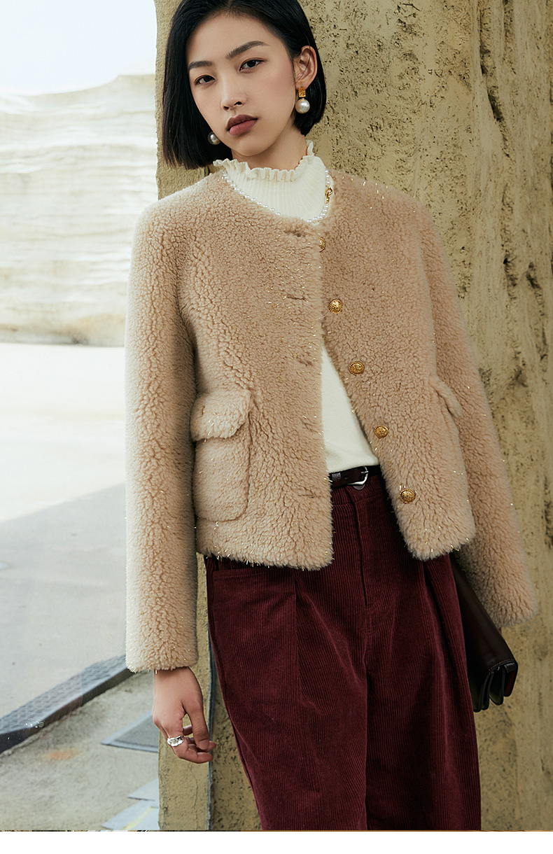 奶杏色小香风颗粒绒短外套,金属扣设计 + 双口袋 + 软糯毛绒质感,解锁冬日出街与约会的甜飒气质与保暖刚需