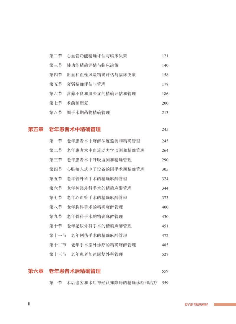 本书为“精准医学出版工程·精确麻醉系列”图书之一。本书系统阐述了老年患者精确麻醉相关基础理论知识及最新研究进展,从老年人解剖和生理改变、老年人麻醉药理学特点等展开,通过经临床实践验证的量表精确评估老年患者的生理状态,指导制订精确临床决策,本书结合临床典型病例,详细叙述老年患者围手术期管理要点,优化老年患者术中精确管理,通过术后各系统功能的精准诊断与治疗,加速老年患者术后康复。本书希望能为广大临床麻醉医务人员提供参考,有助于减少老年患者围手术期并发症,加速老年患者的术后康复。