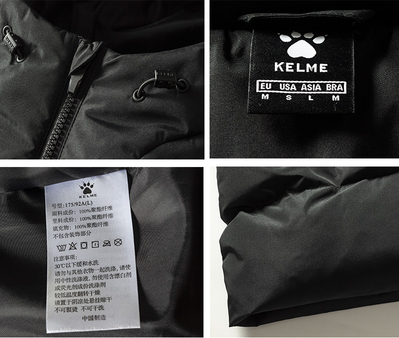 卡尔美运动棉服中长男女冬季训练外套加厚保暖棉服足球棉衣