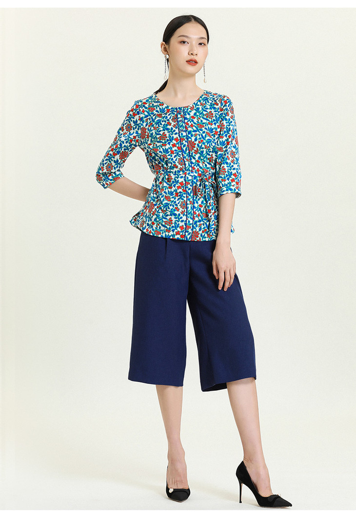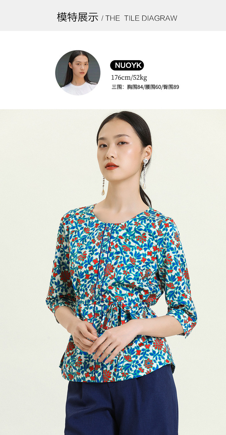 乔万尼夏季真丝衬衫设计感小众七分袖印花上衣女ES2C112