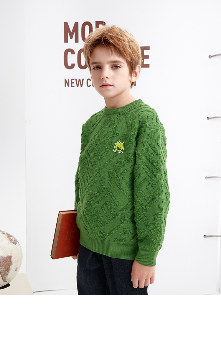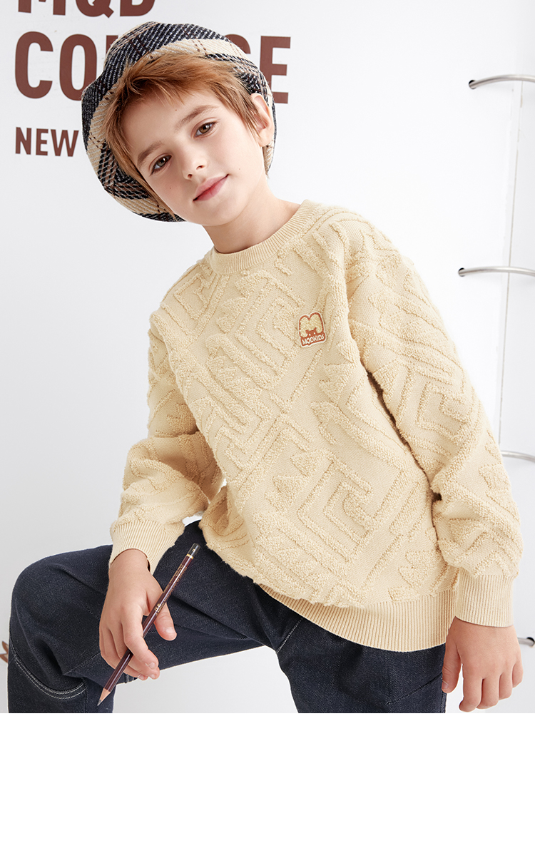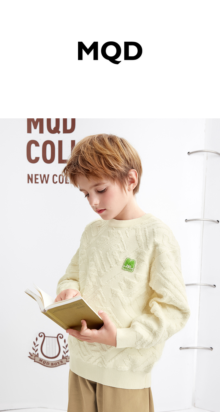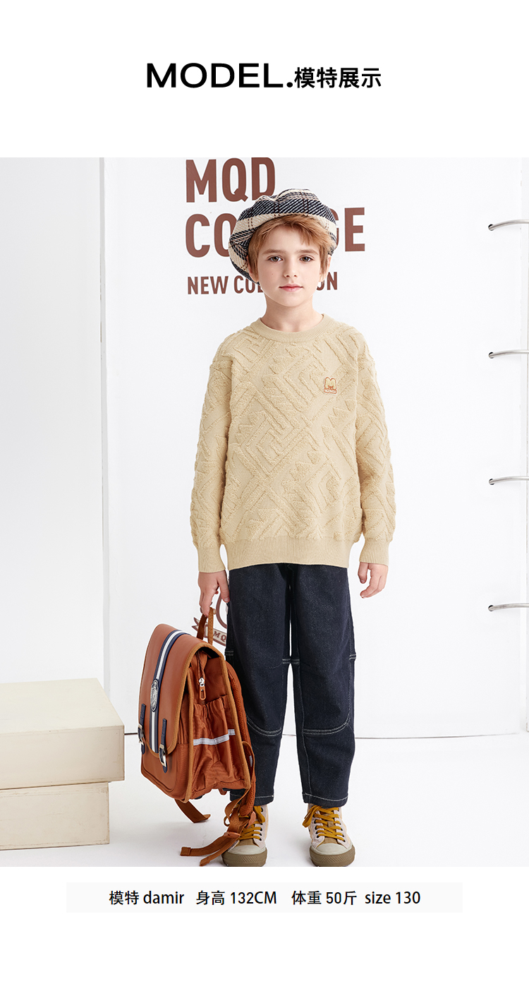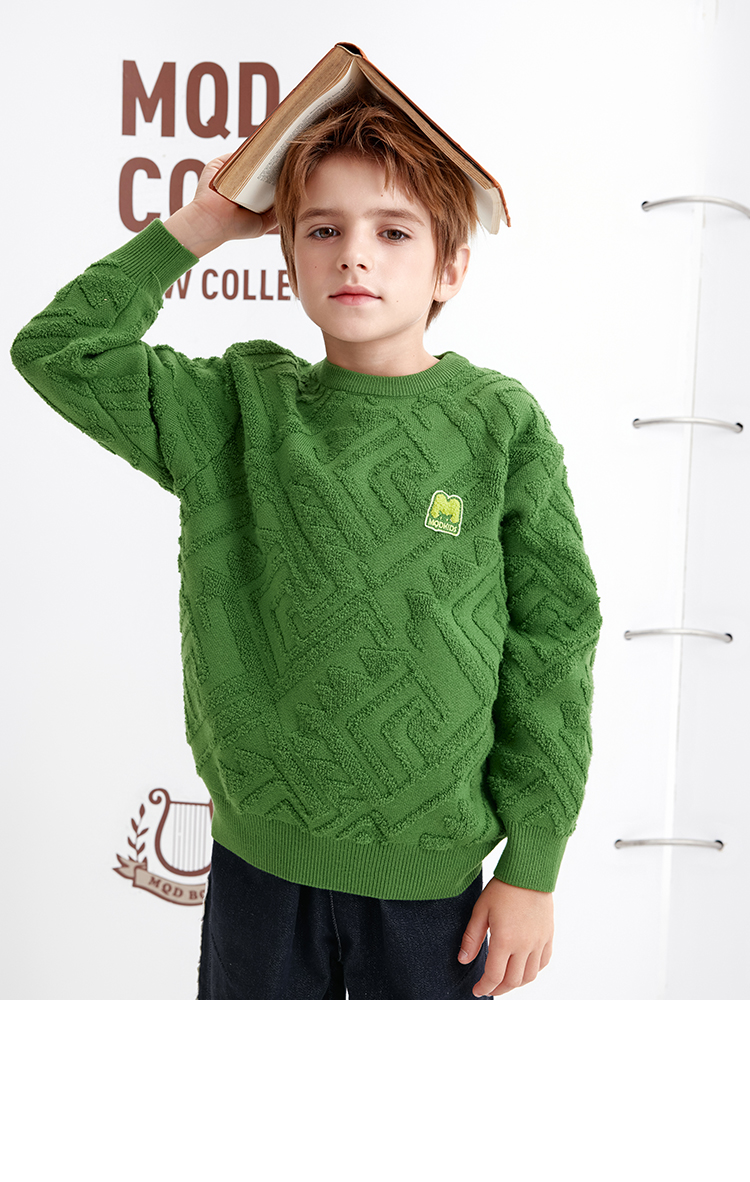 【MQD】童装儿童春秋宽松休闲毛衣宝宝满版提花圆领针织衫9633W0716