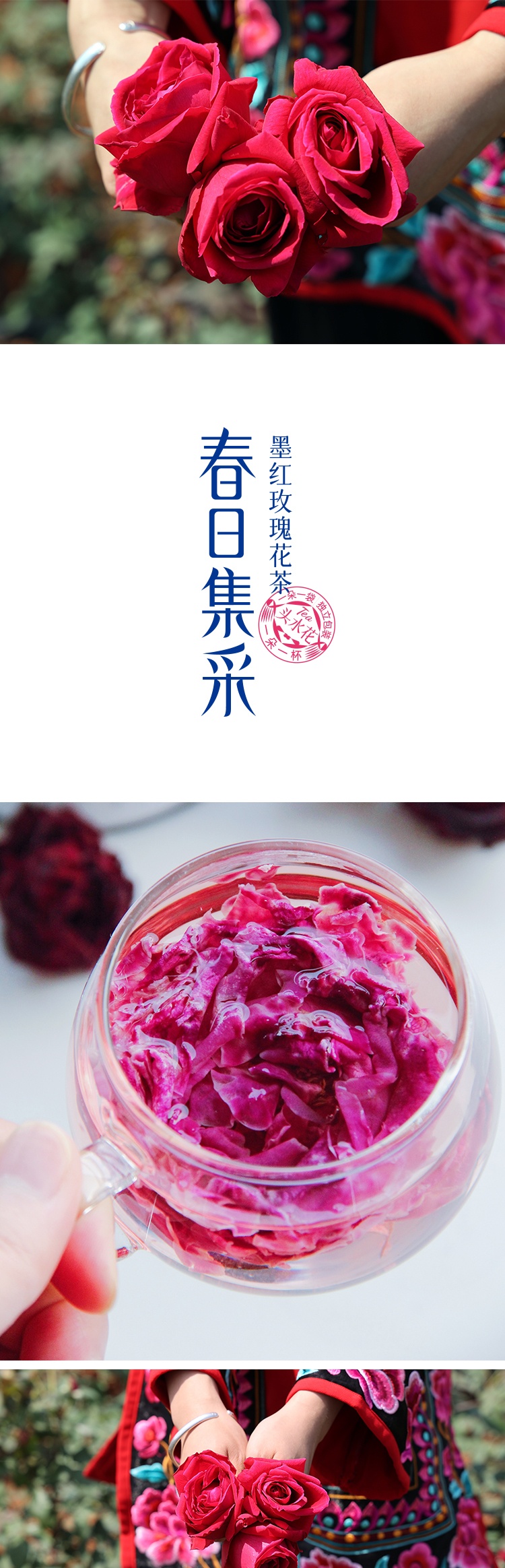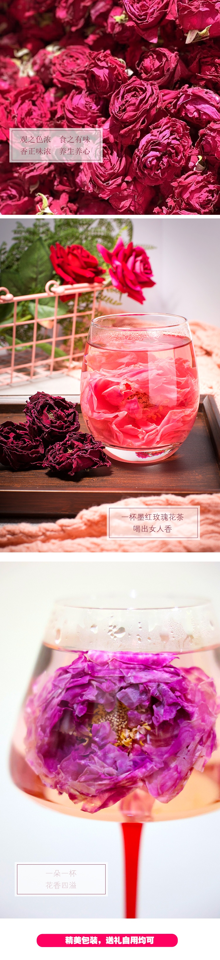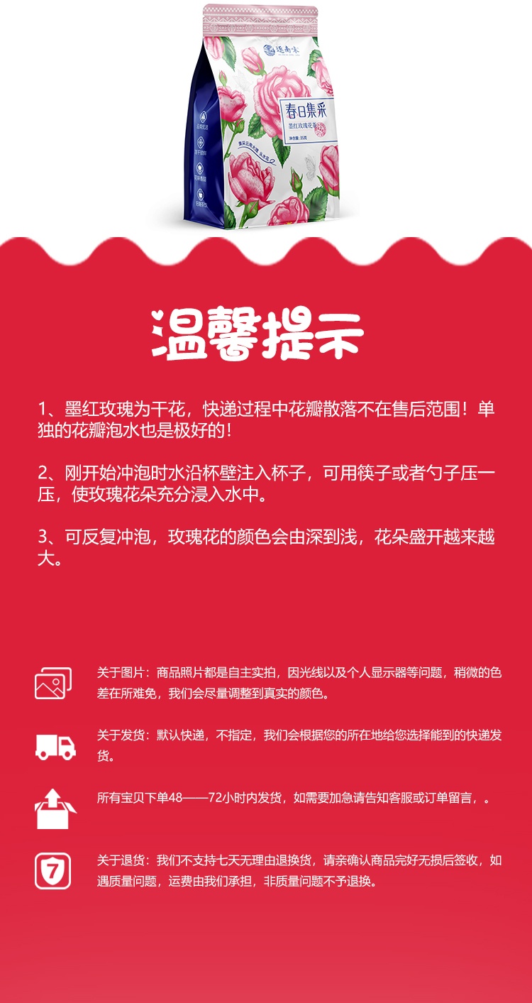 墨红玫瑰为干花,快递过程中花瓣散落不在售后范围!单独的花瓣泡水也是极好的!