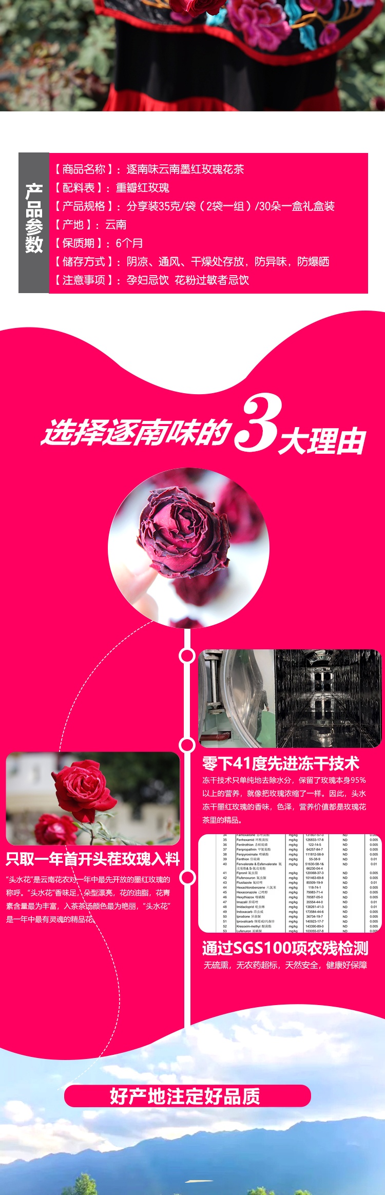 【品名】冻干墨红玫瑰花茶