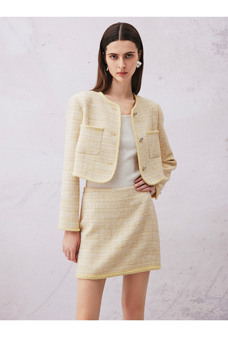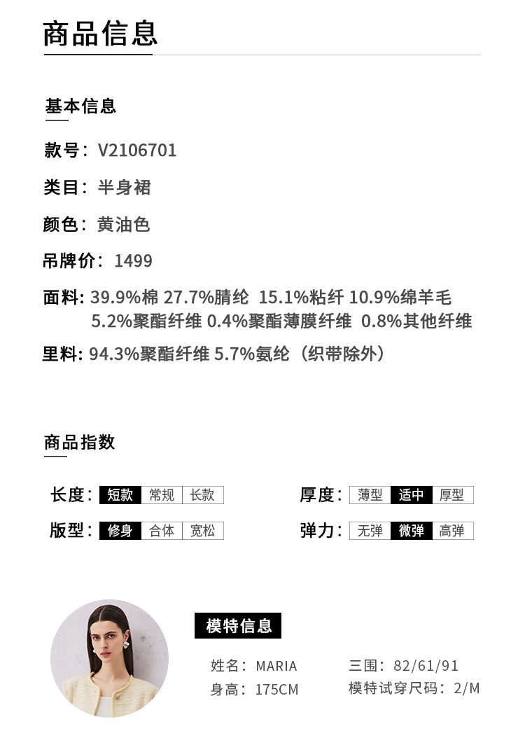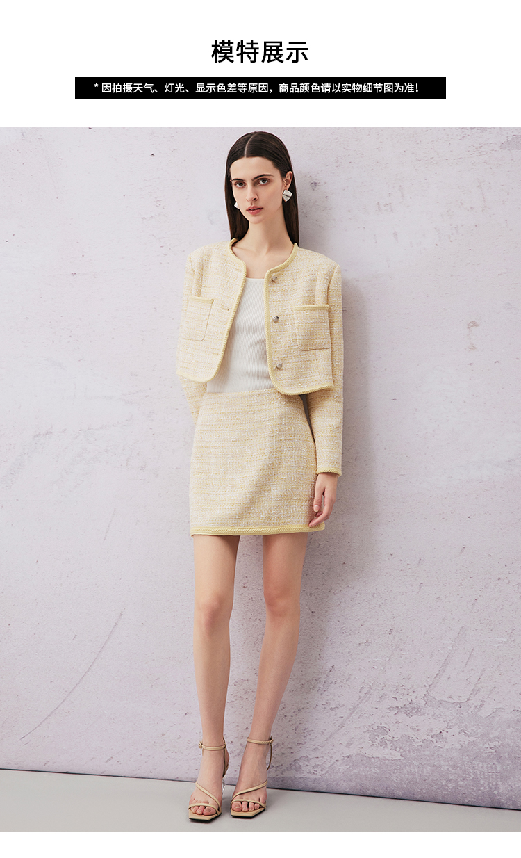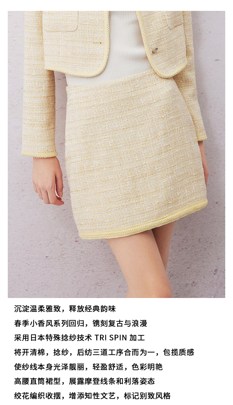 VIMAGE纬漫纪春季气质高级感小香风高腰显瘦半身裙V2106701