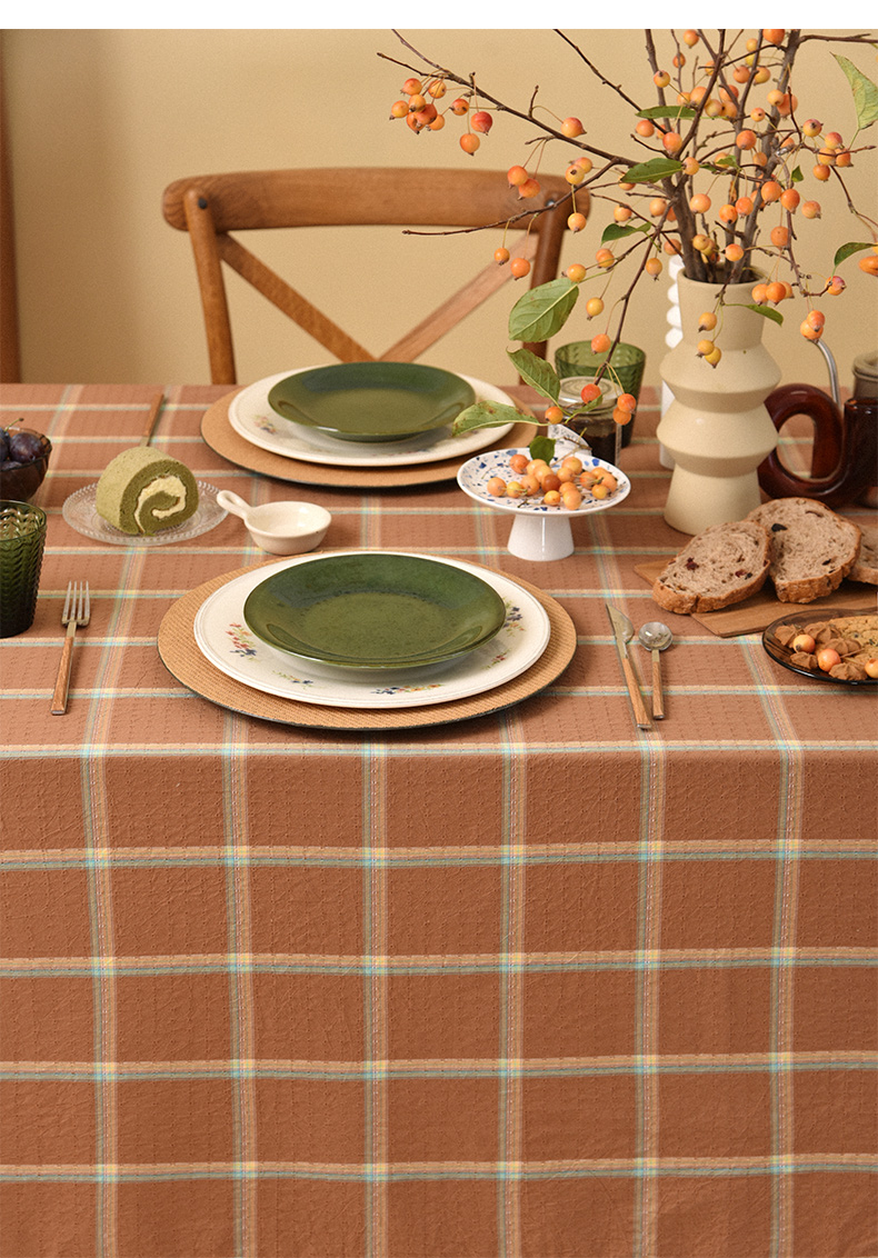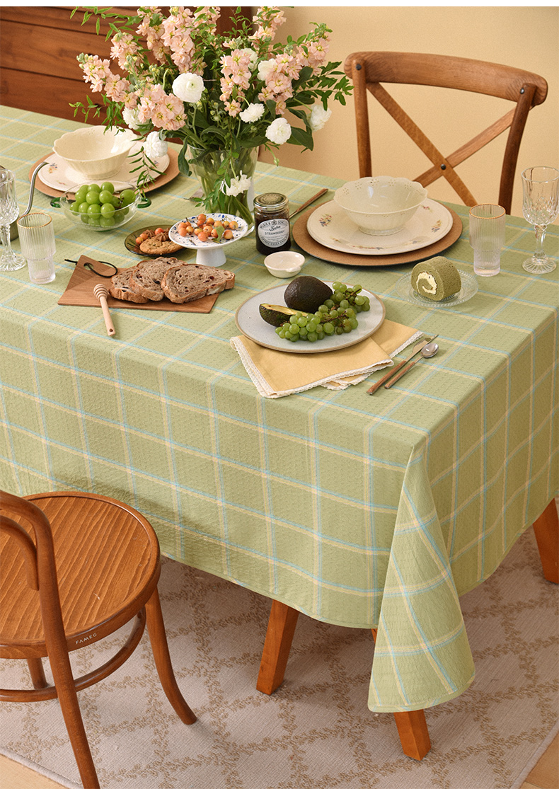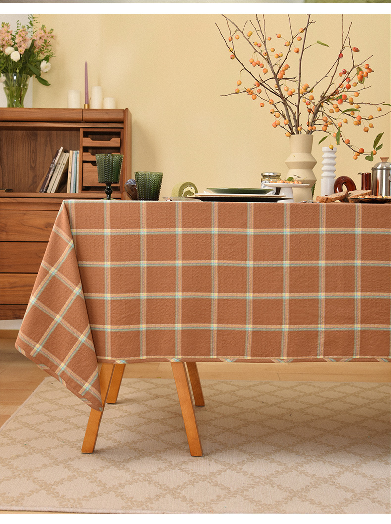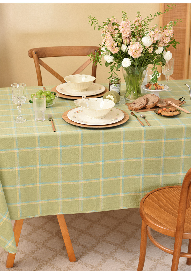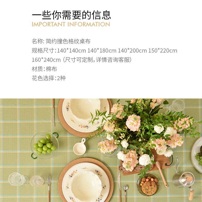 简约撞色格纹棉质桌布客厅电视柜布艺餐桌布
