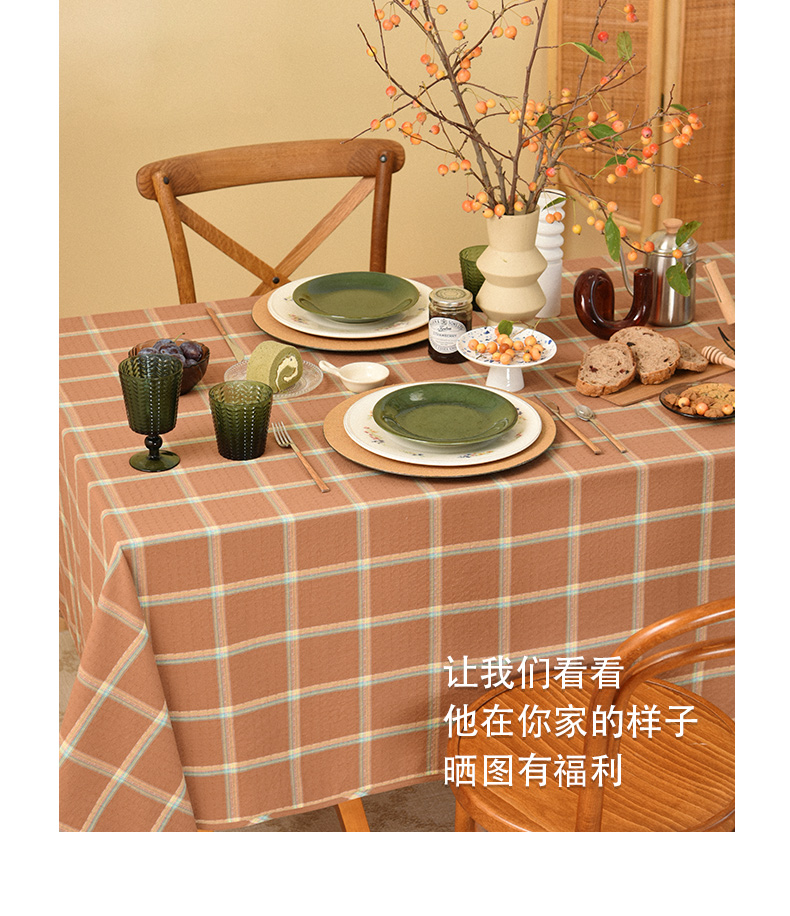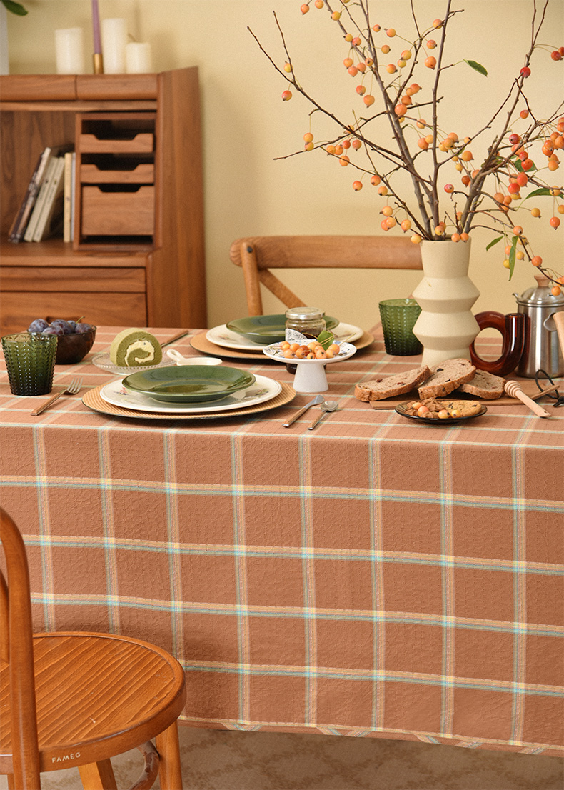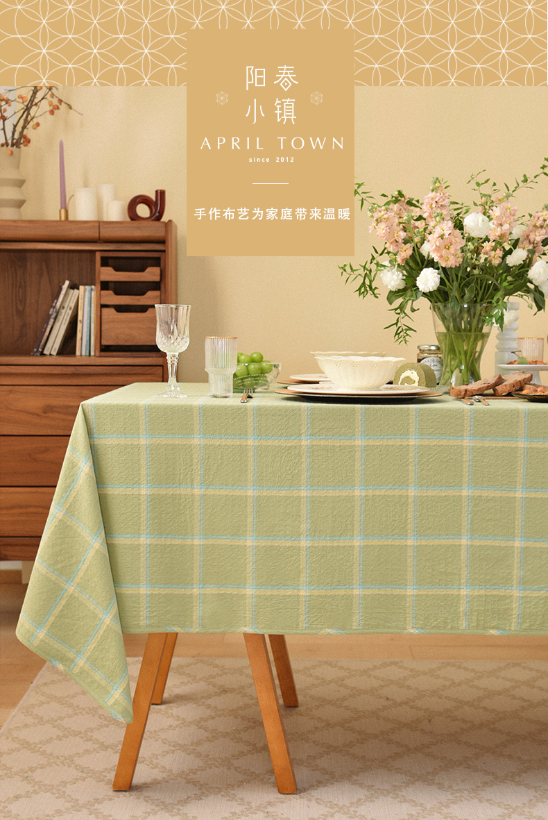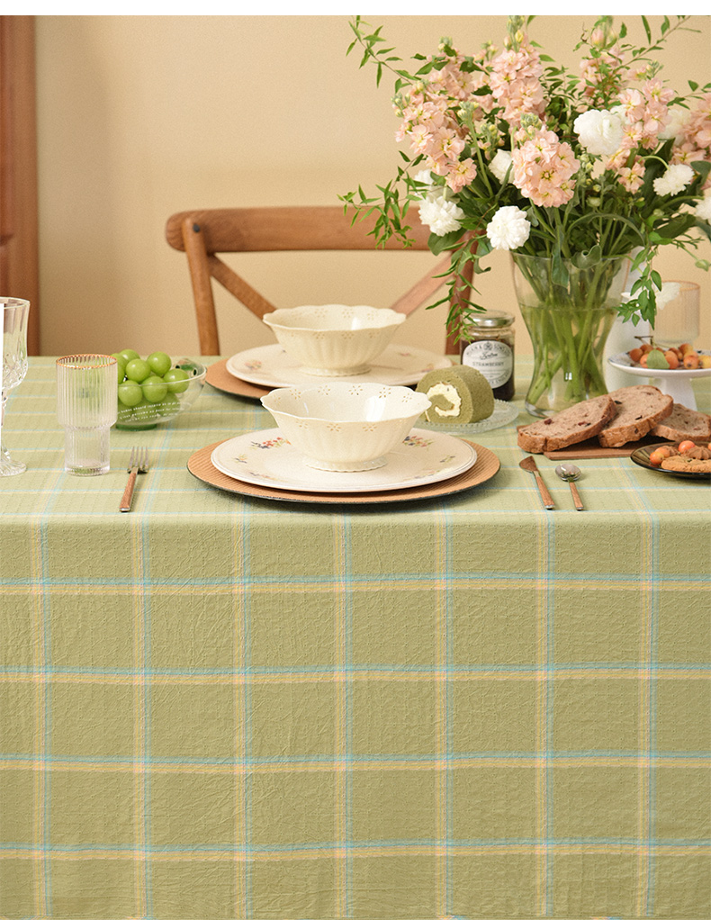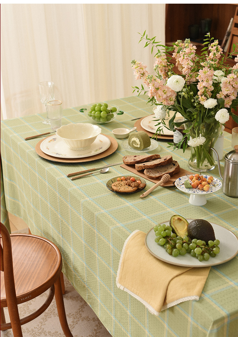 简约撞色格纹棉质桌布客厅电视柜布艺餐桌布